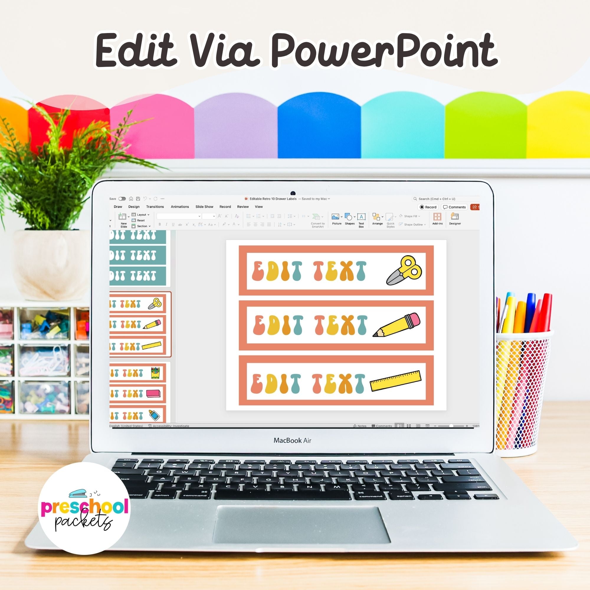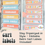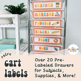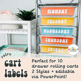 10 Drawer Cart Labels Editable Retro Theme Classroom Decor