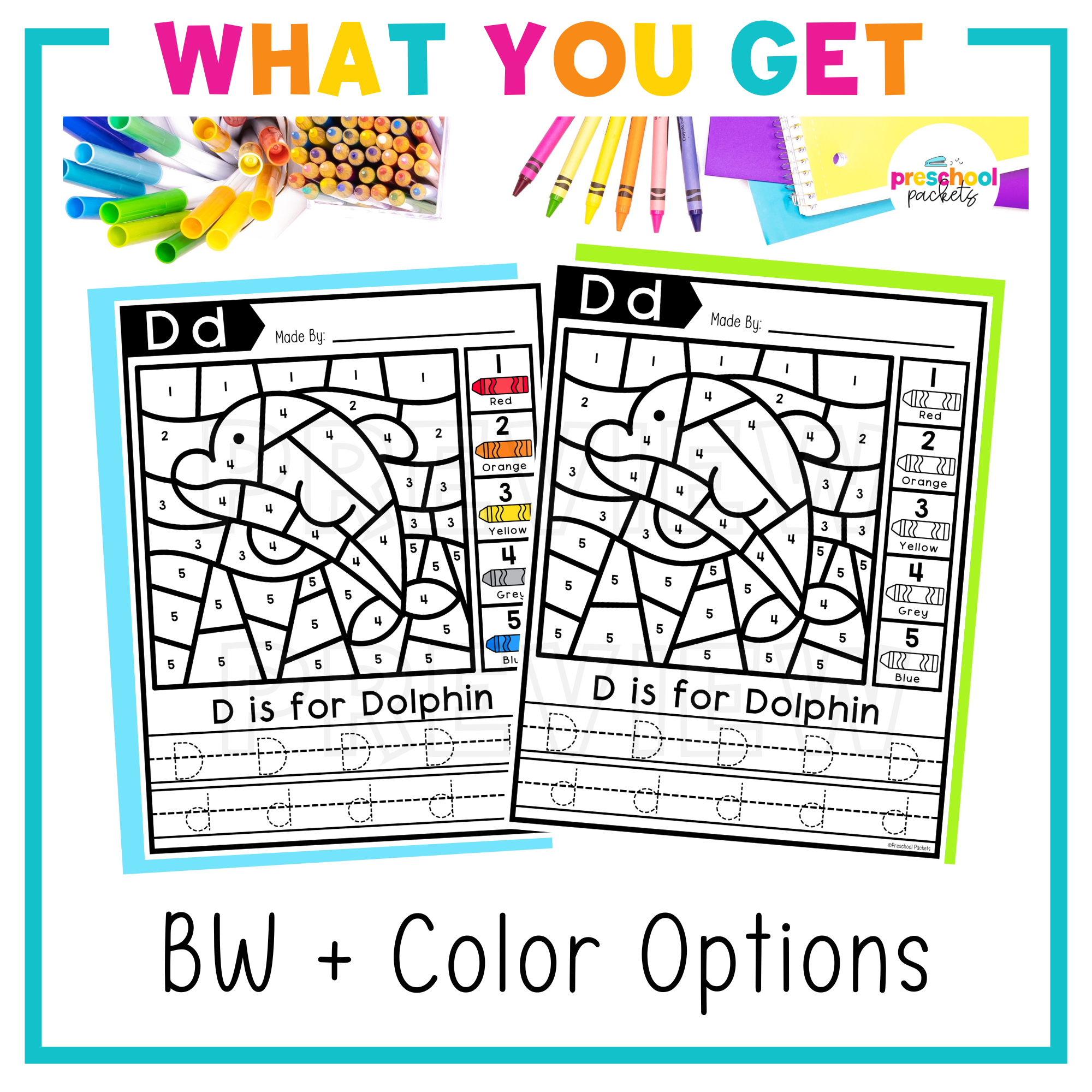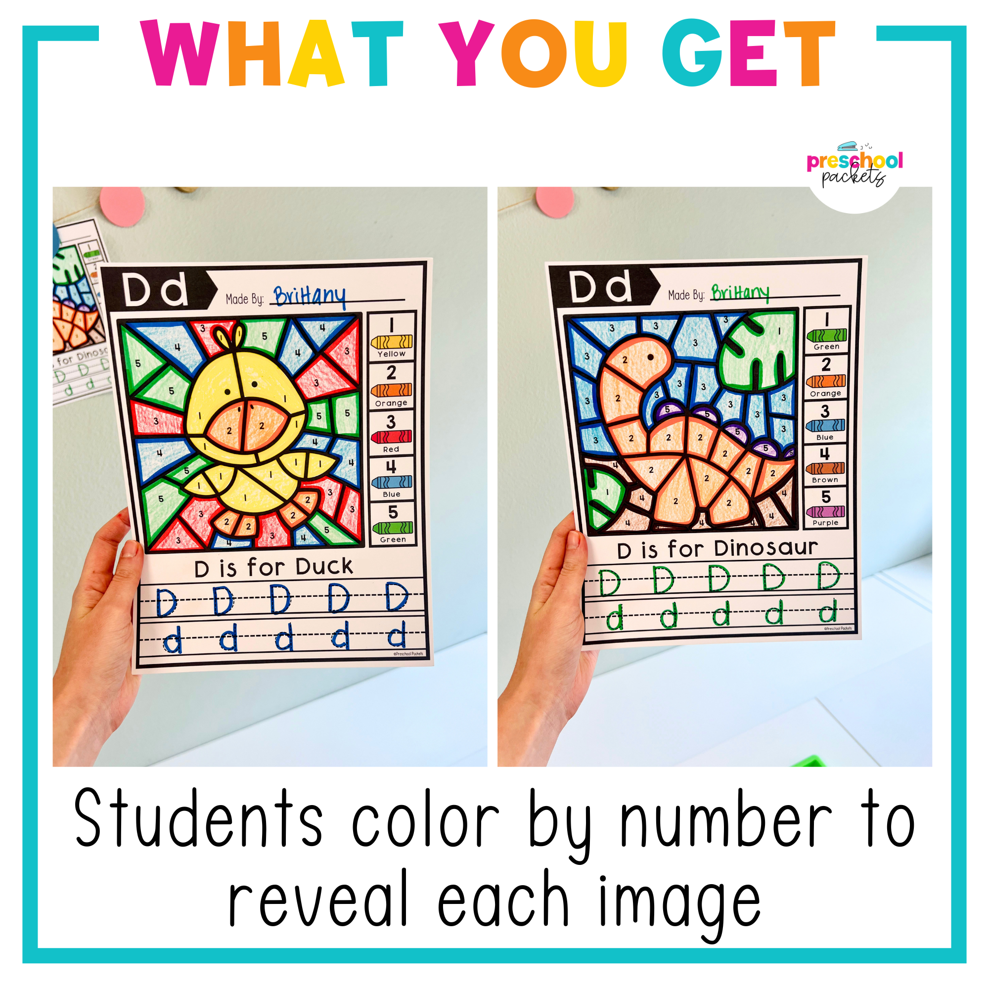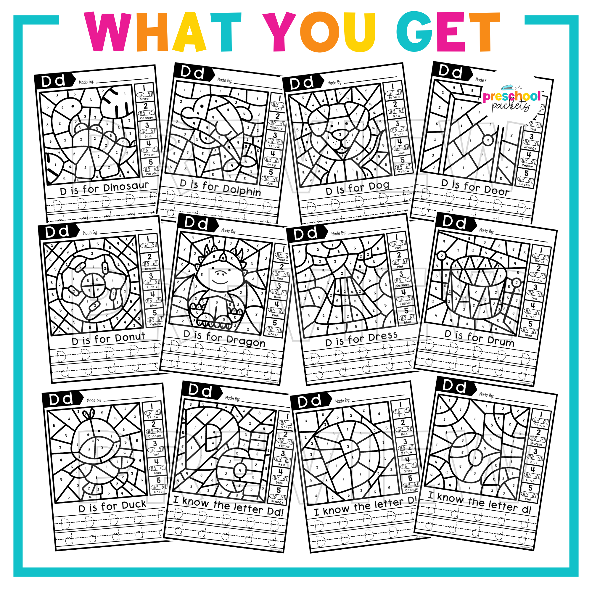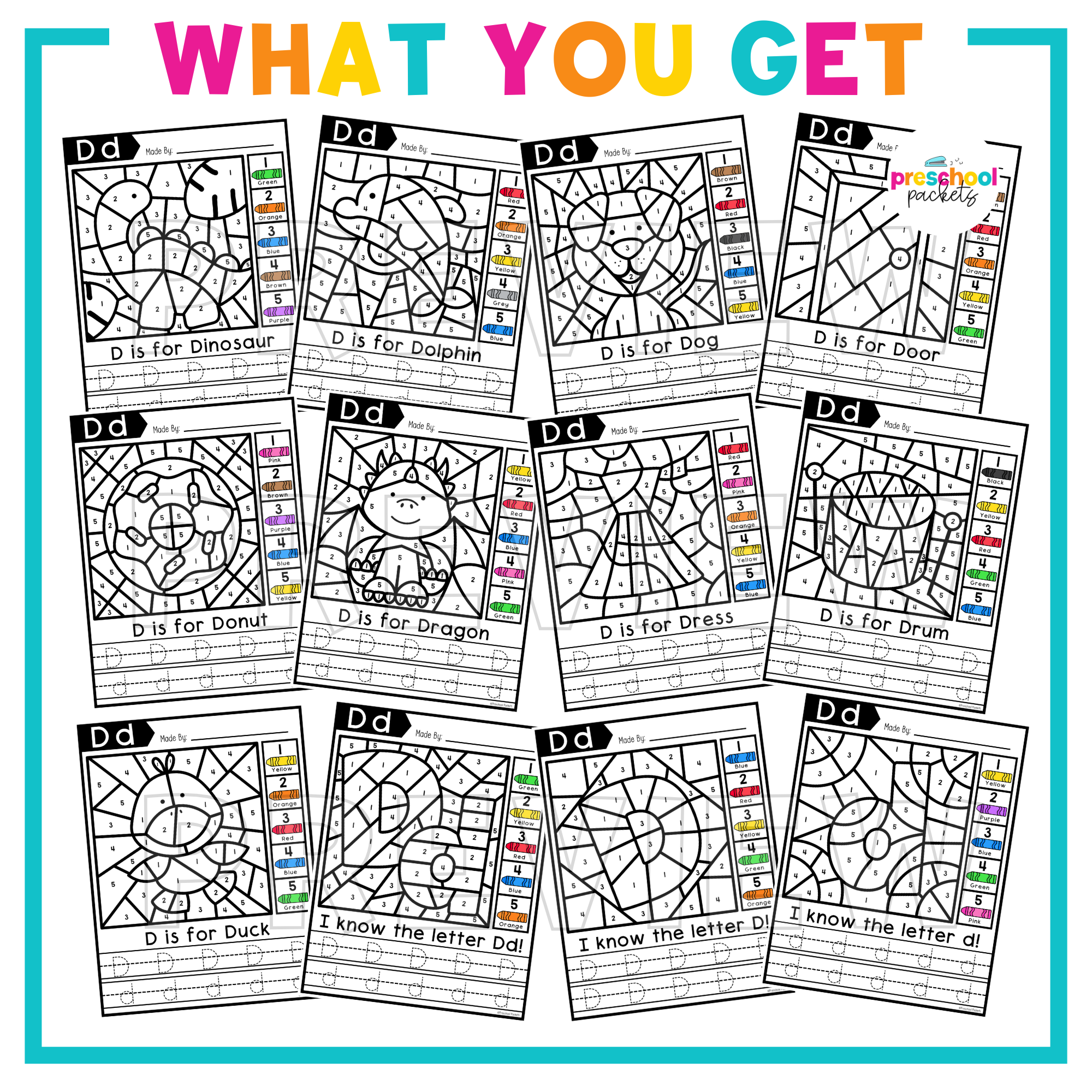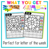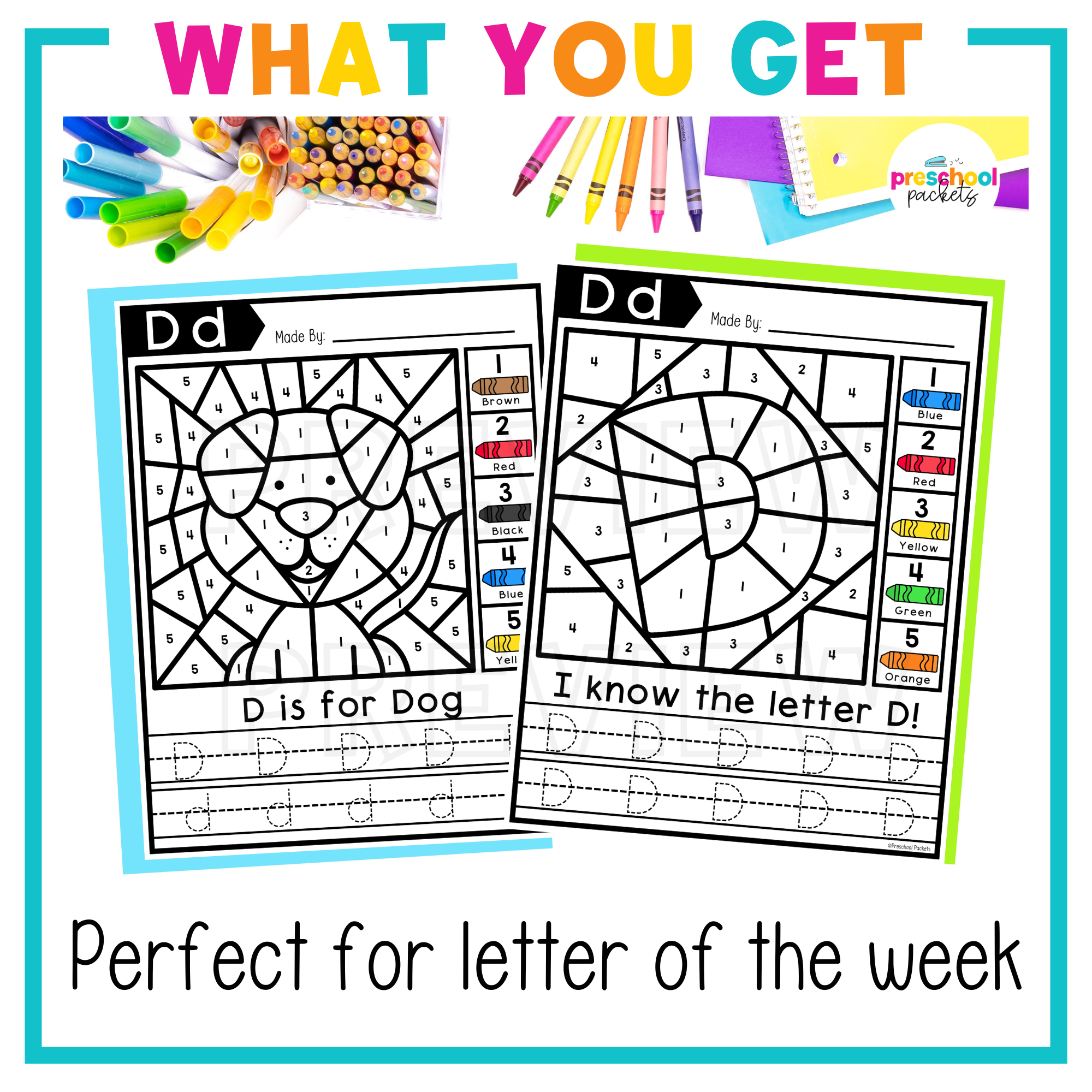 Letter D Color By Code - a no prep way to teach the alphabet to your students! These alphabet sheets are perfect for letter of the week activities and learning beginning sounds in your preschool, preK and Kindergarten classrooms!