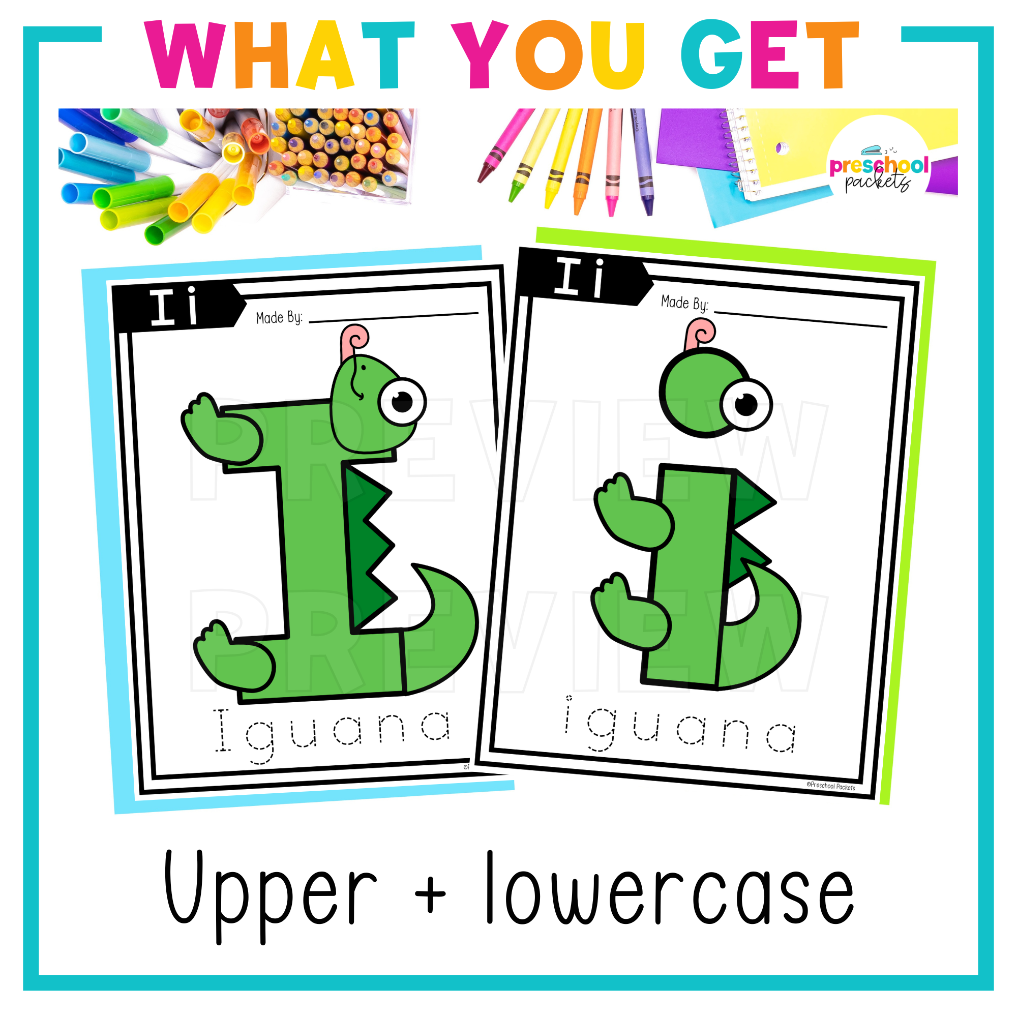 I is for Iguana - a fun way to teach the alphabet to your students! This easy craft is perfect for letter of the week activities in your preschool, preK and Kindergarten classrooms! Choose between uppercase and lowercase alphabet craft options to fit your classroom needs.