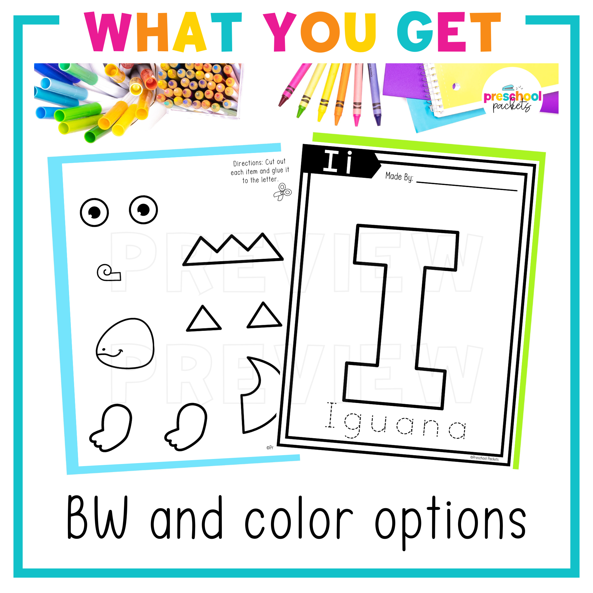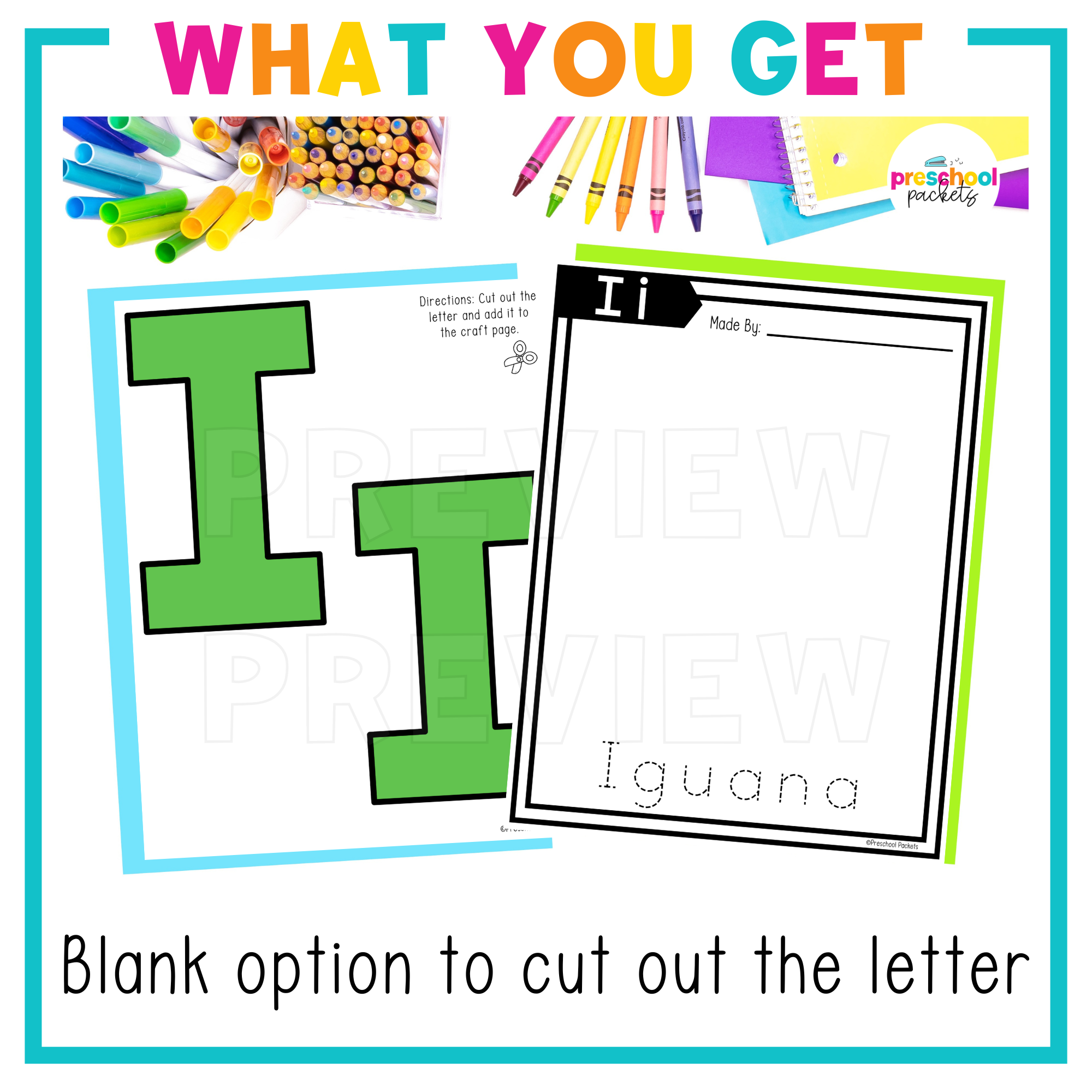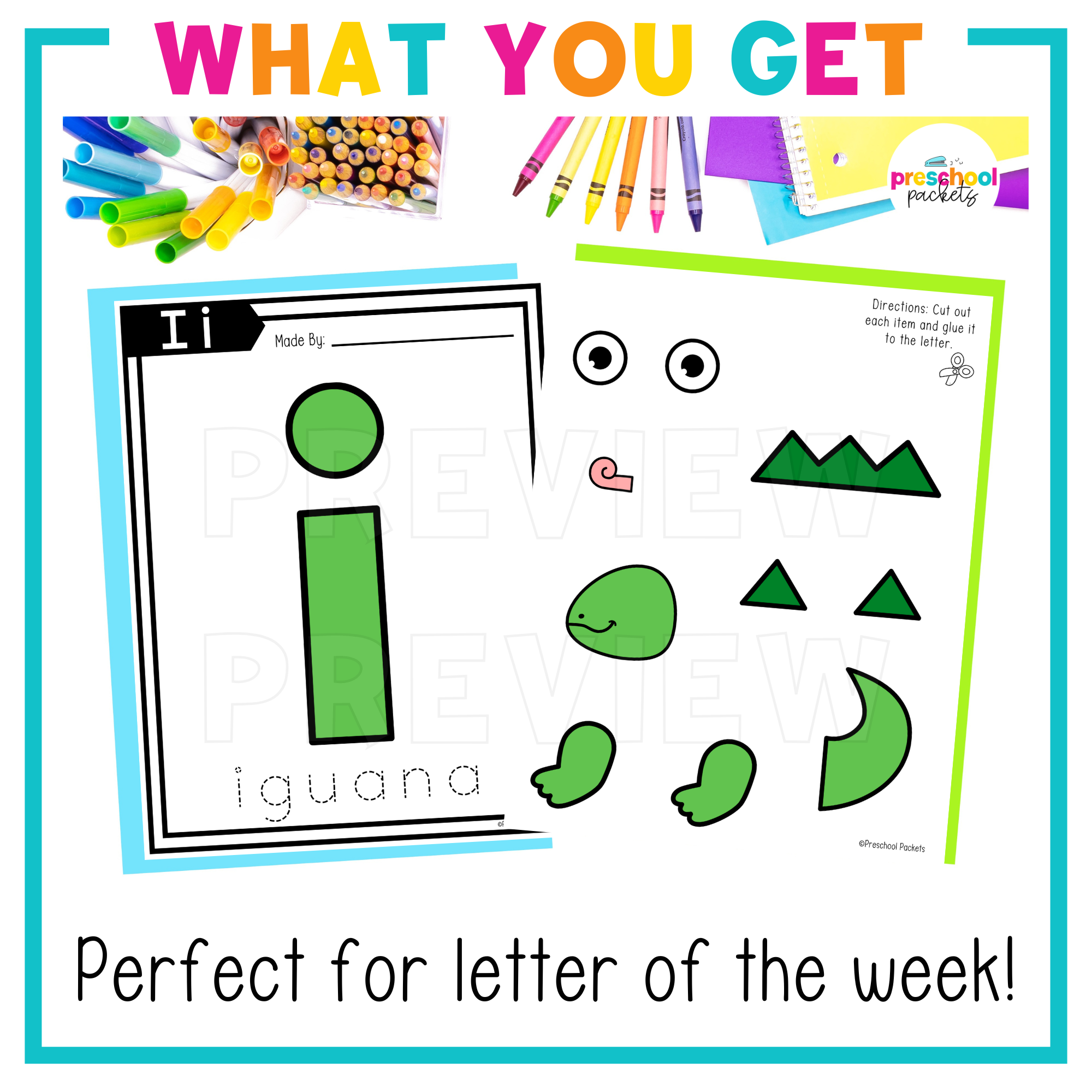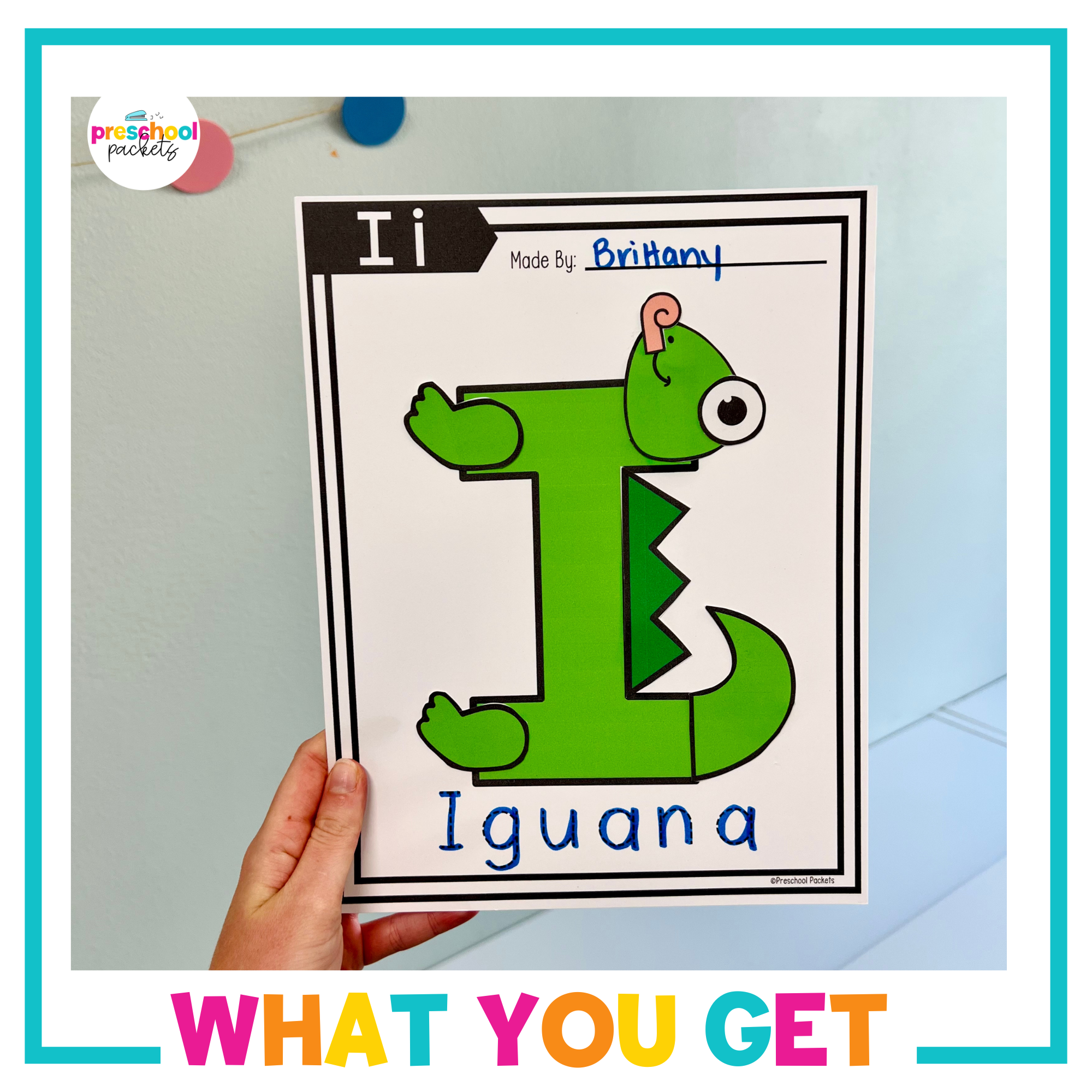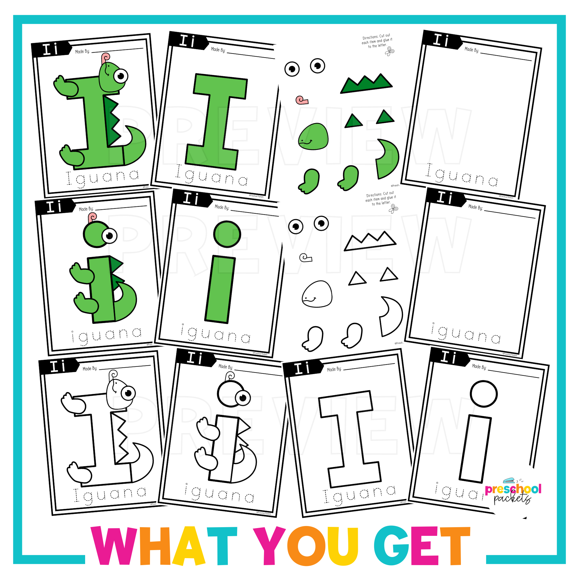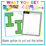 Students get to cut, color and paste each item to build an Iguana to learn the letter I!