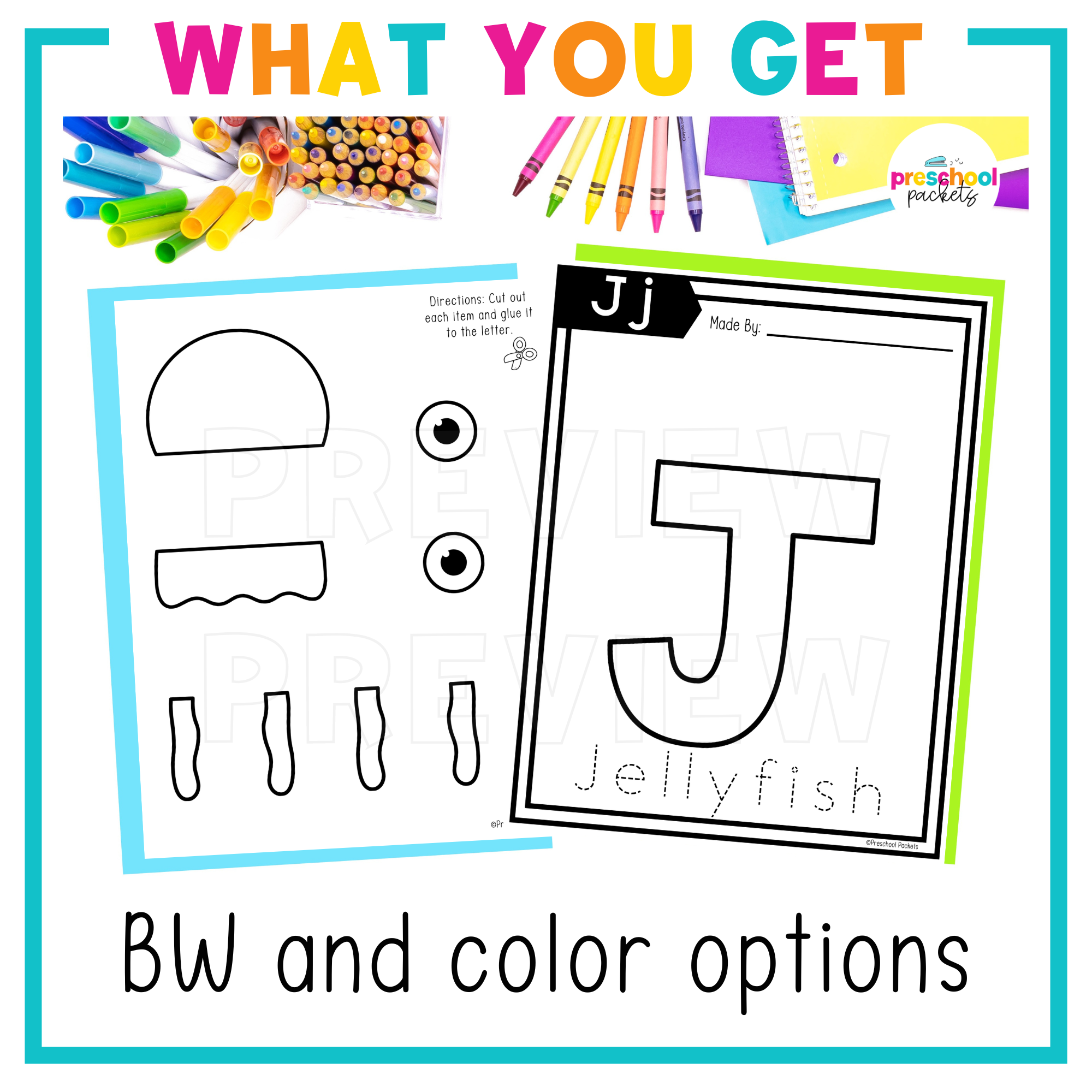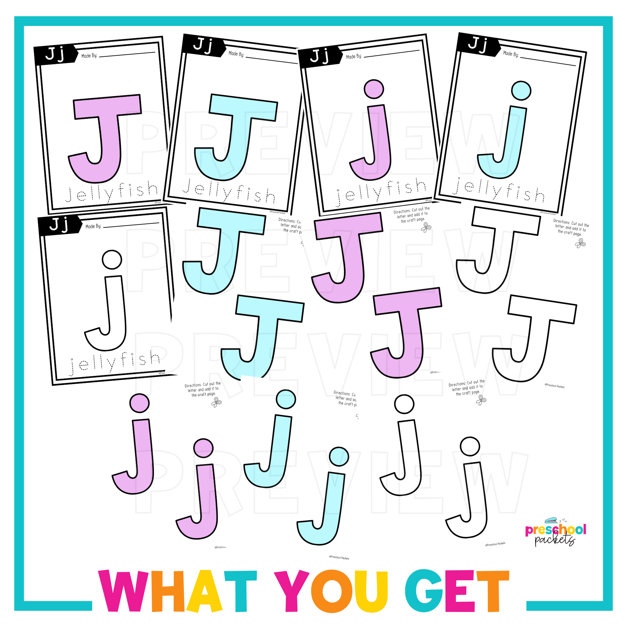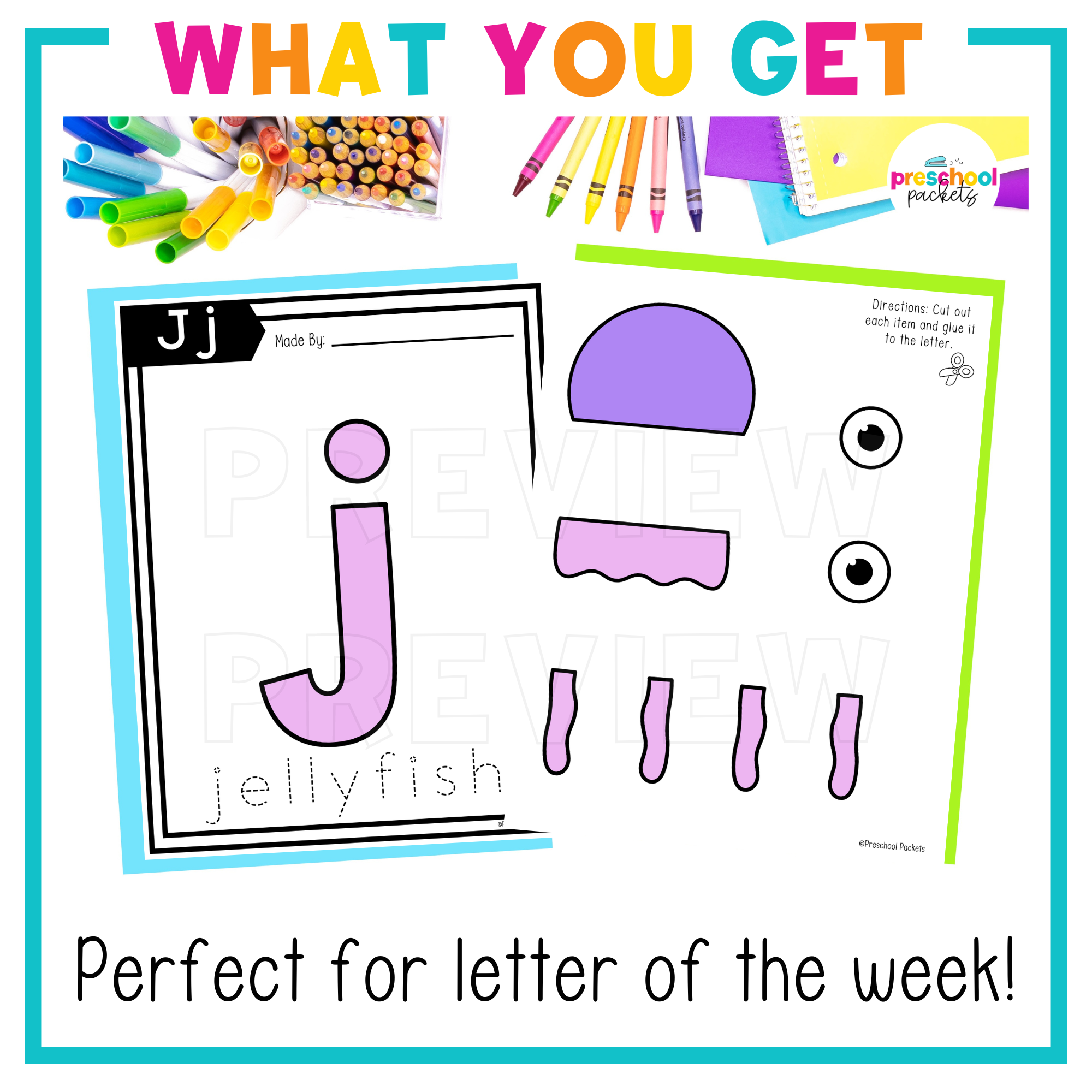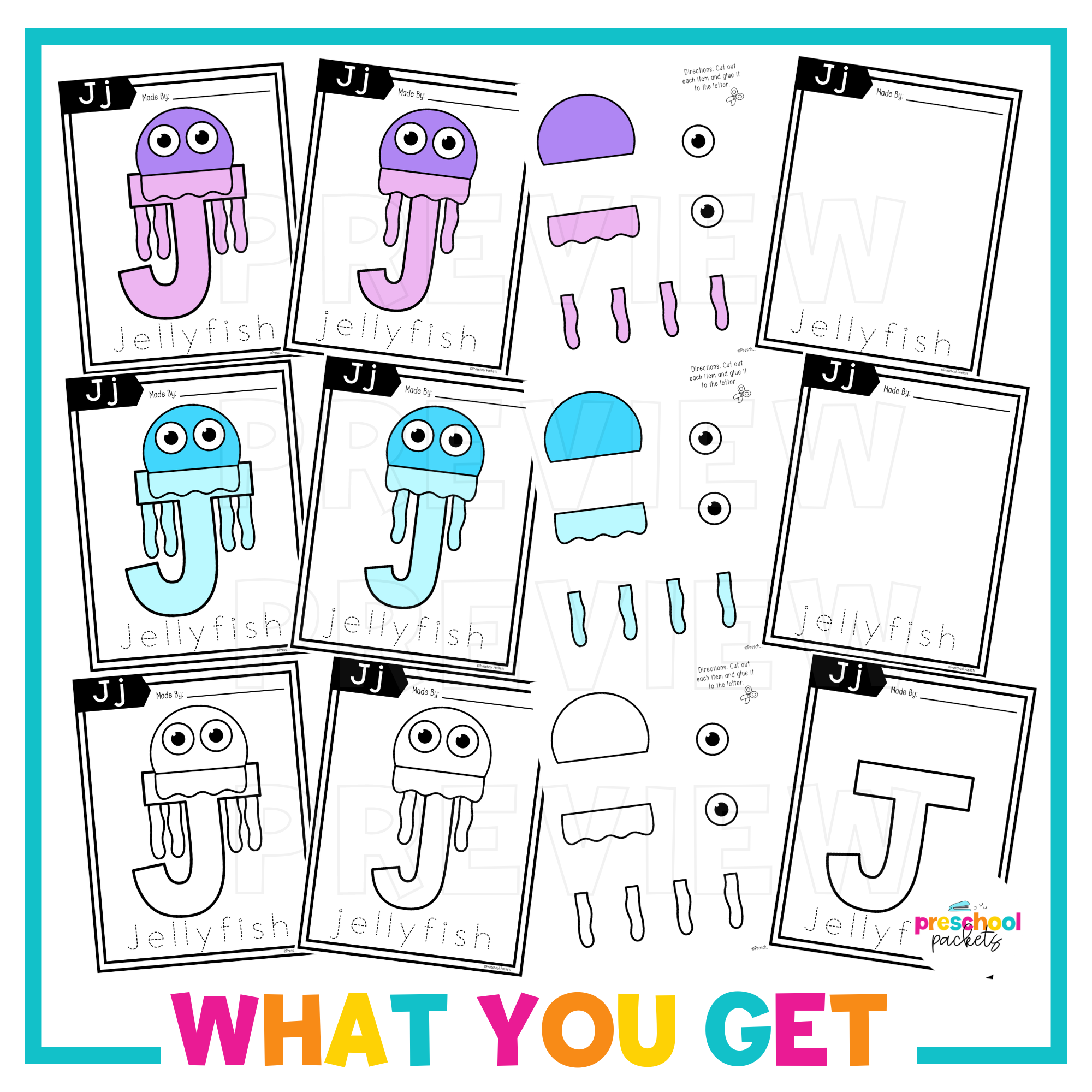 Students get to cut, color and paste each item to build a jellyfish to learn the letter J!