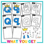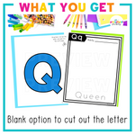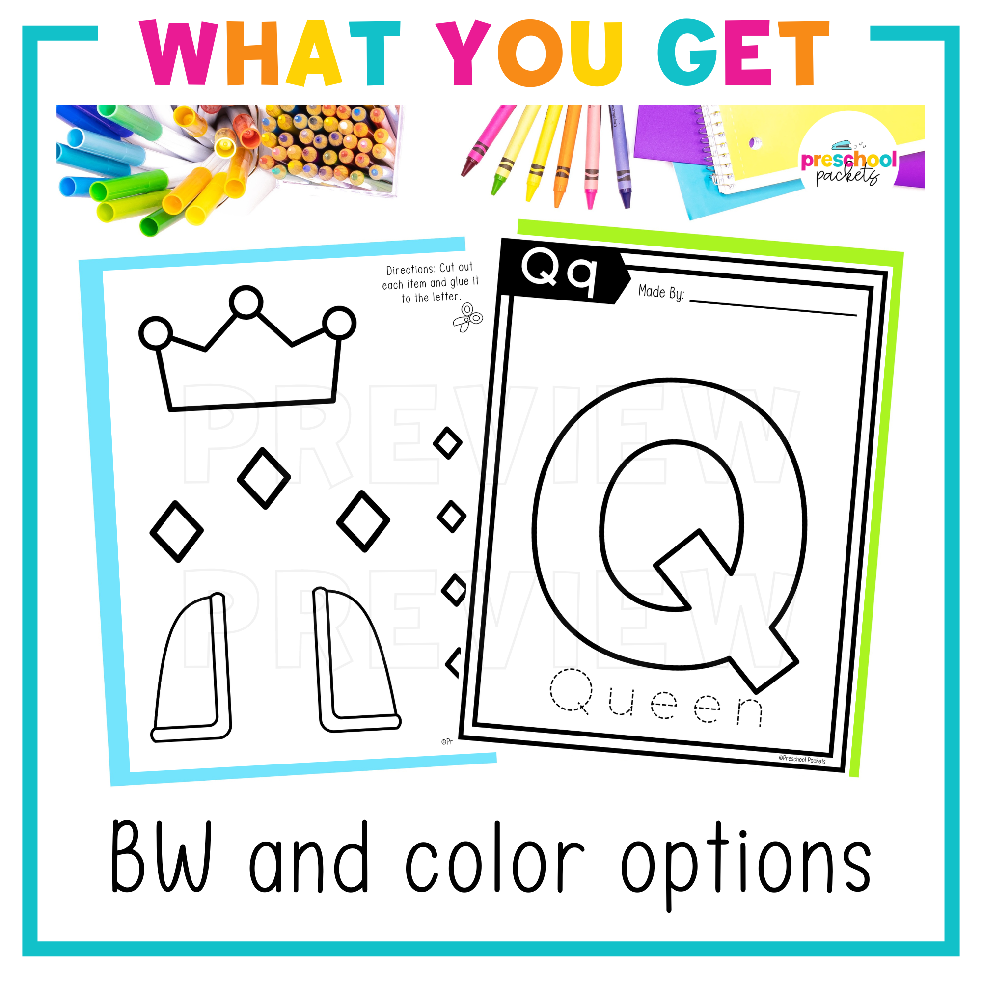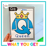 Students get to cut, color and paste each item to build a queen to learn the letter Q!