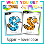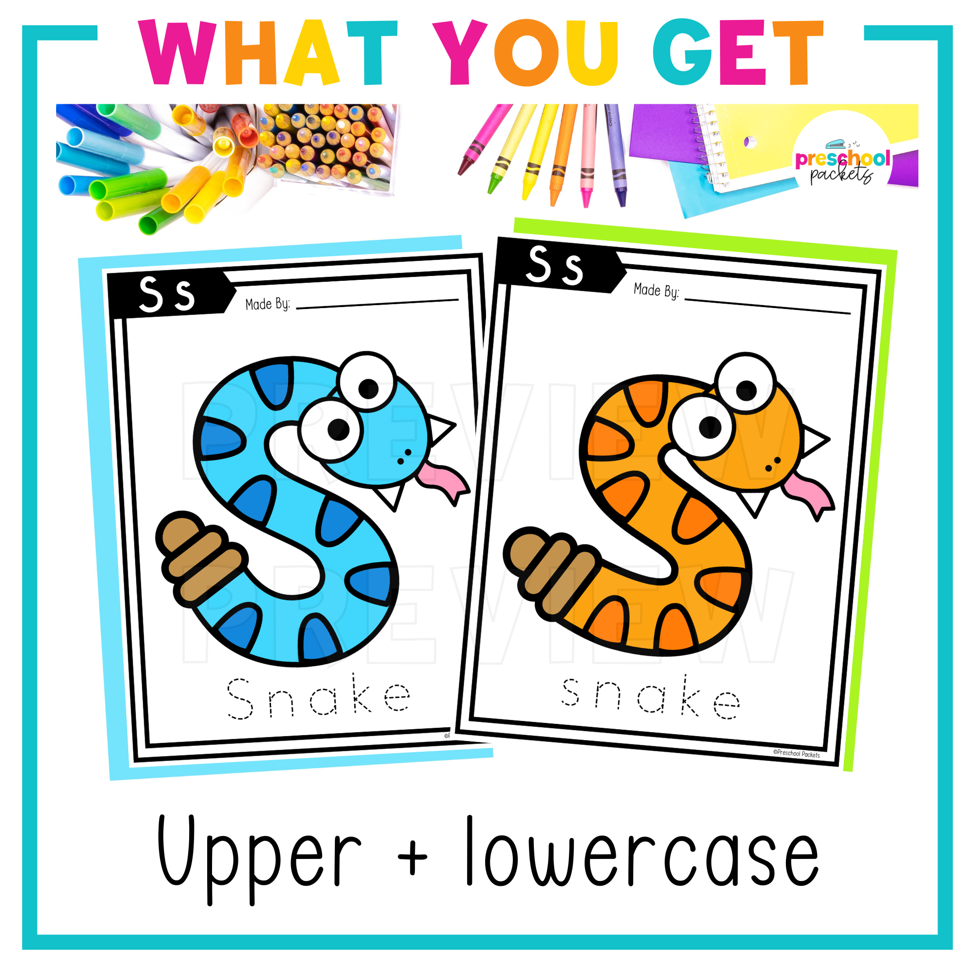 S is for Snake- a fun way to teach the alphabet to your students! This easy craft is perfect for letter of the week activities in your preschool, preK and Kindergarten classrooms! Choose between uppercase and lowercase alphabet craft options to fit your classroom needs.