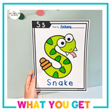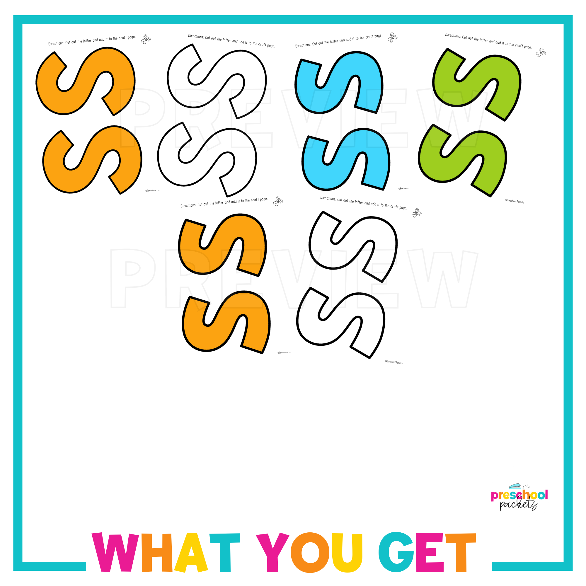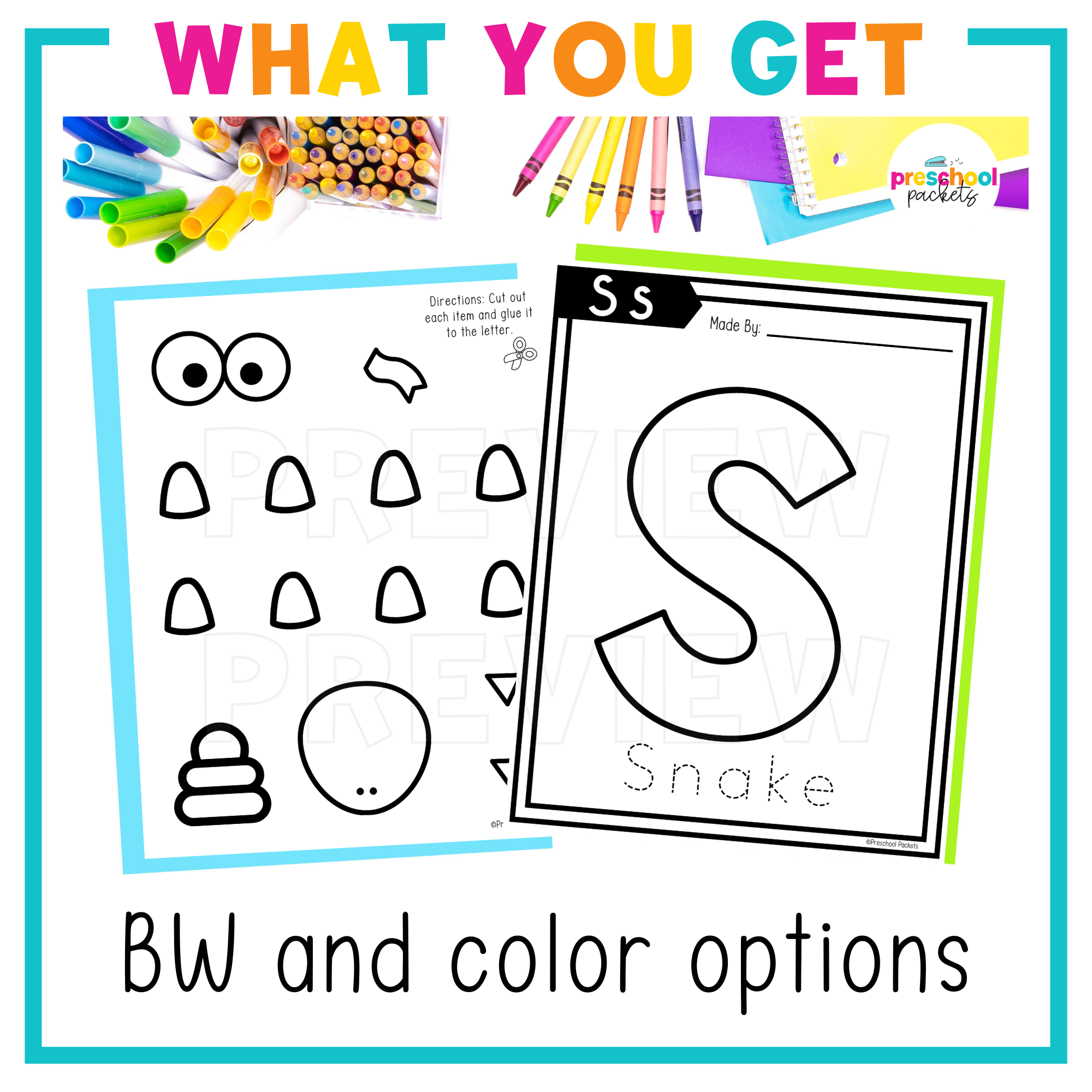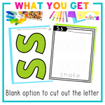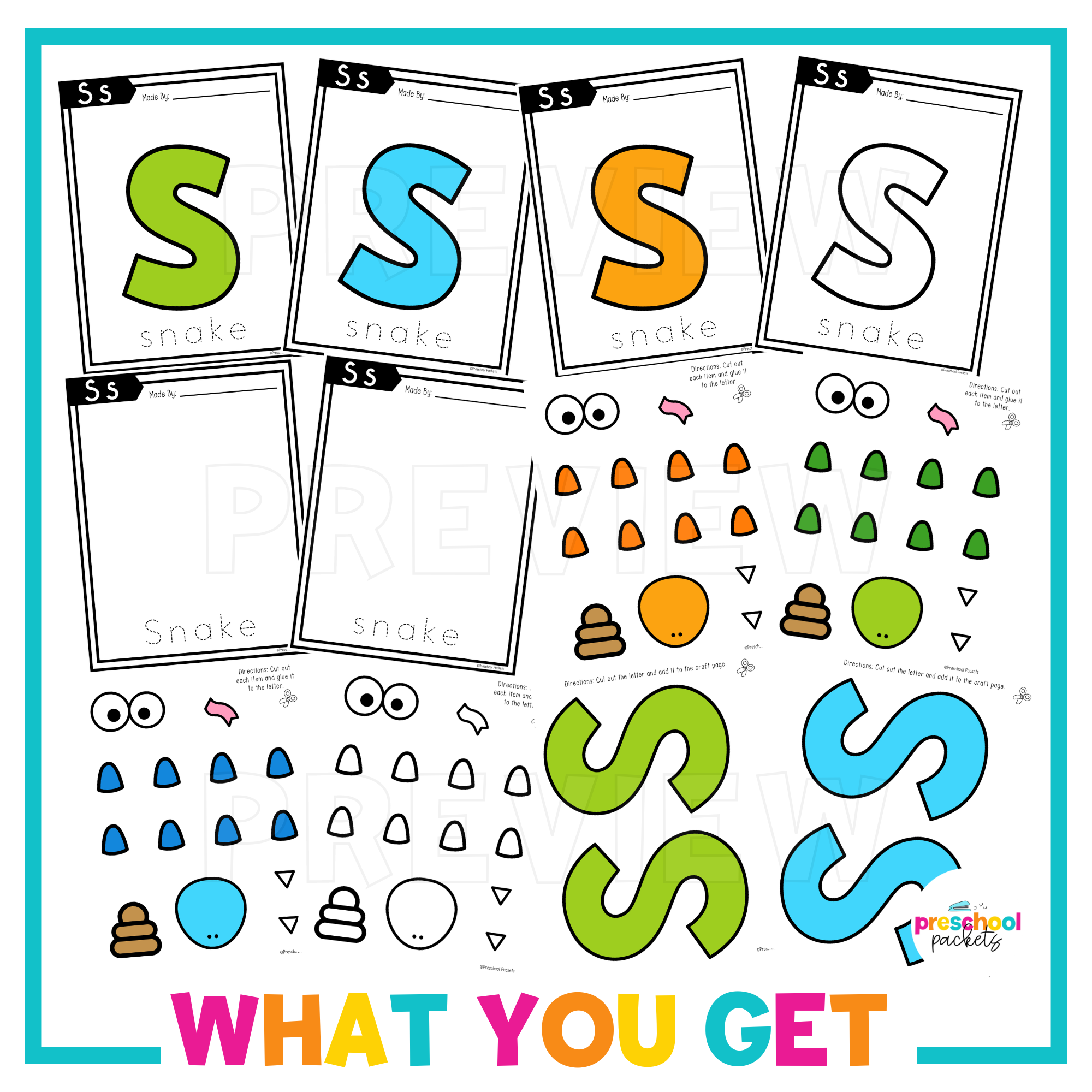 Students get to cut, color and paste each item to build a snake to learn the letter S!