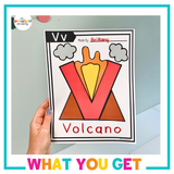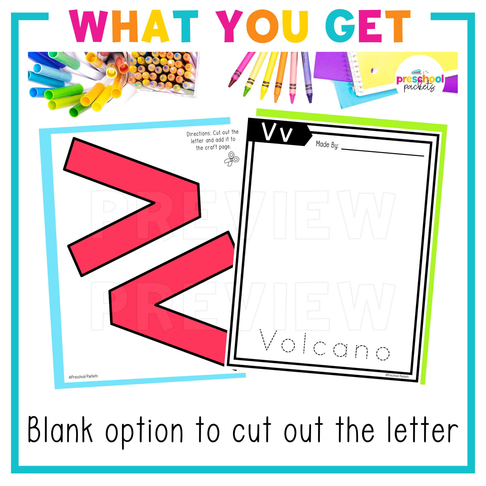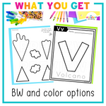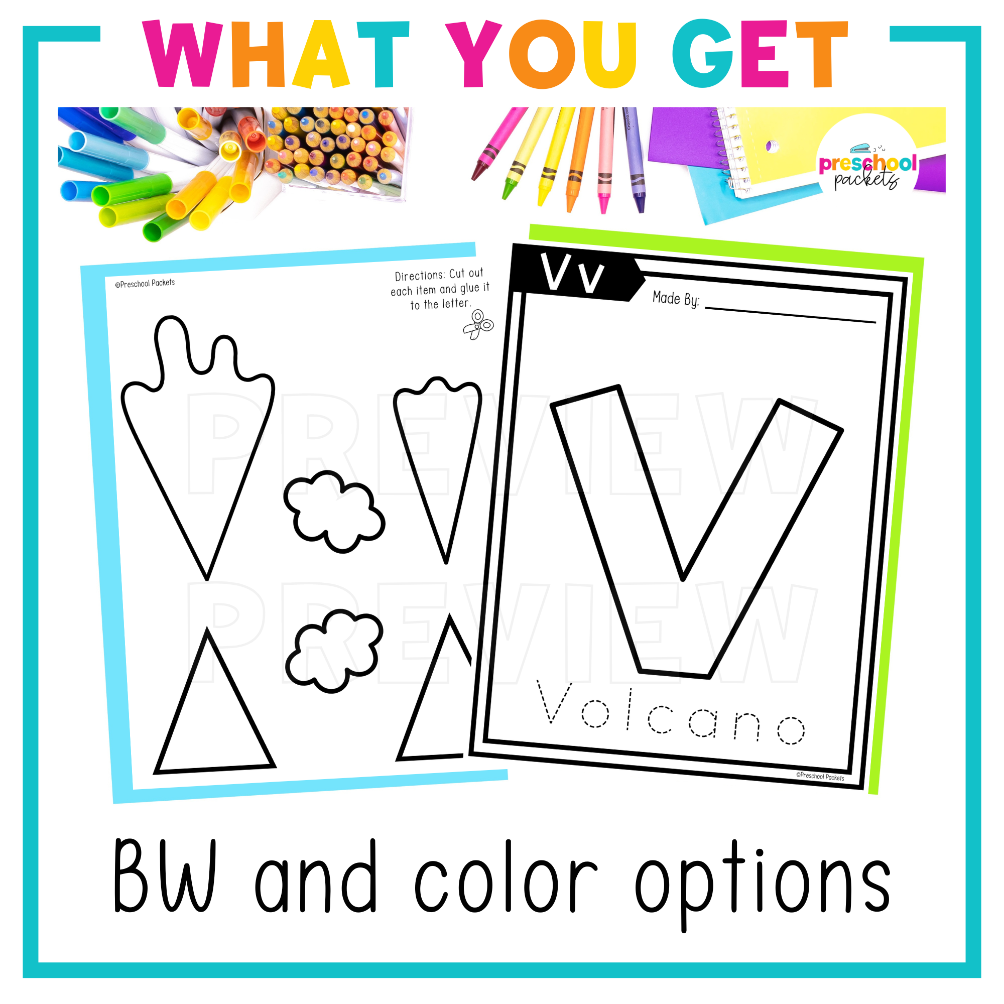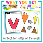 Students get to cut, color and paste each item to build a volcano to learn the letter V!