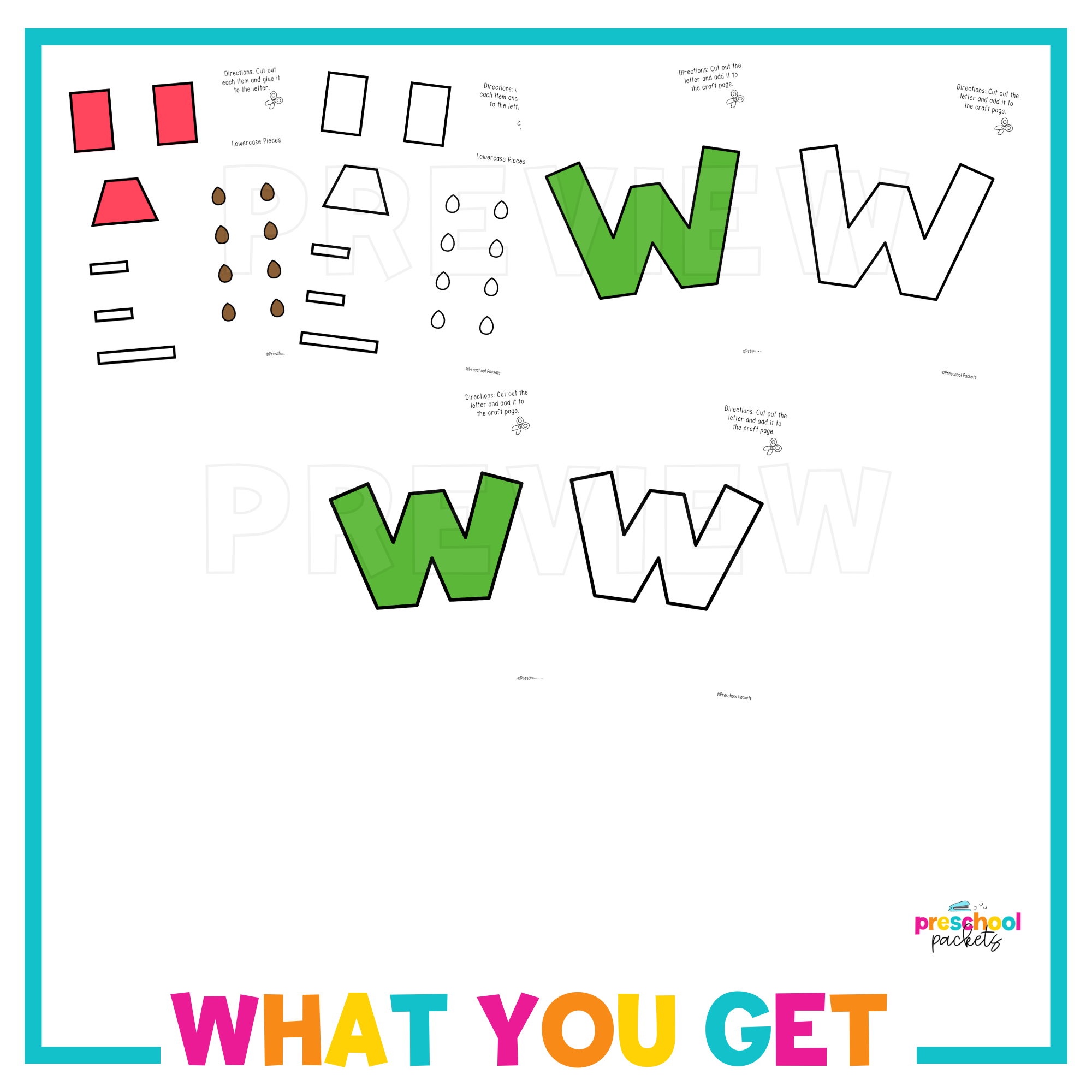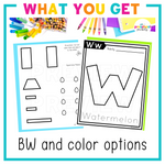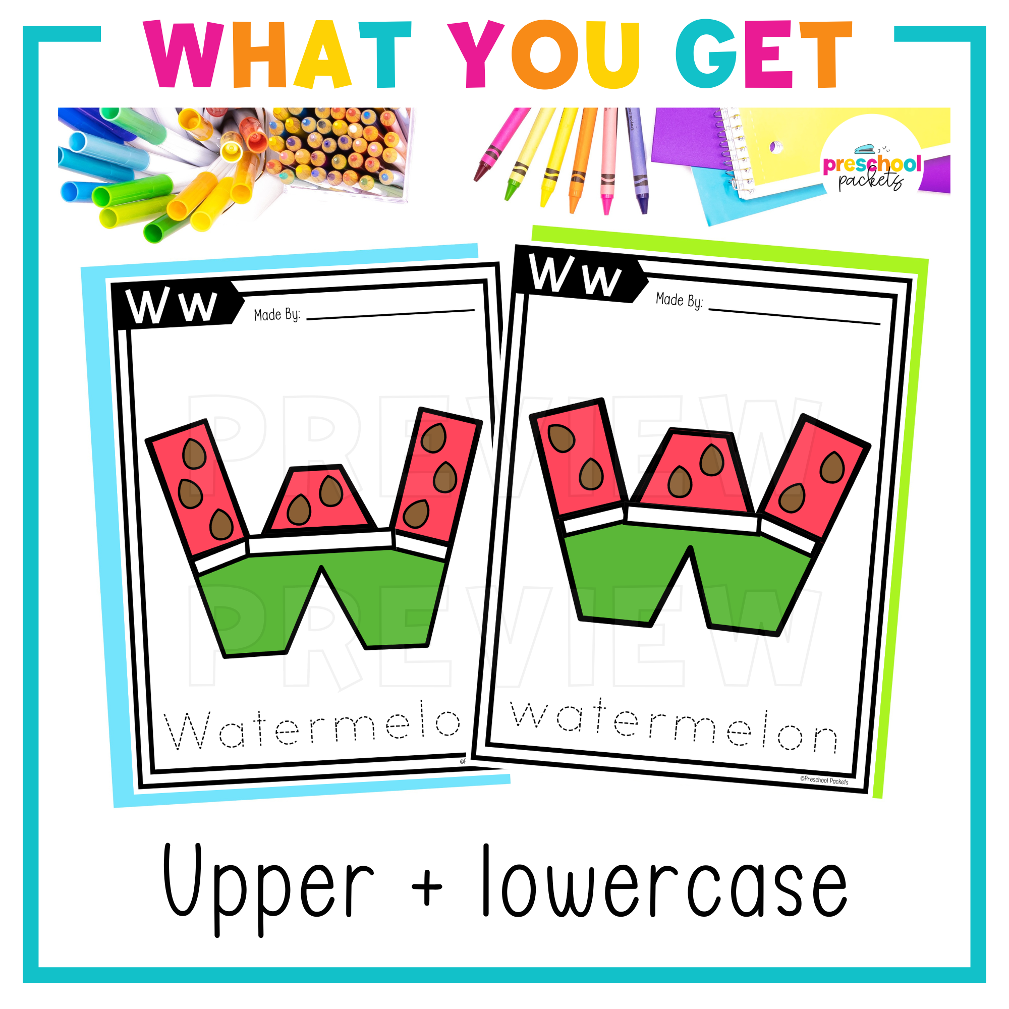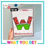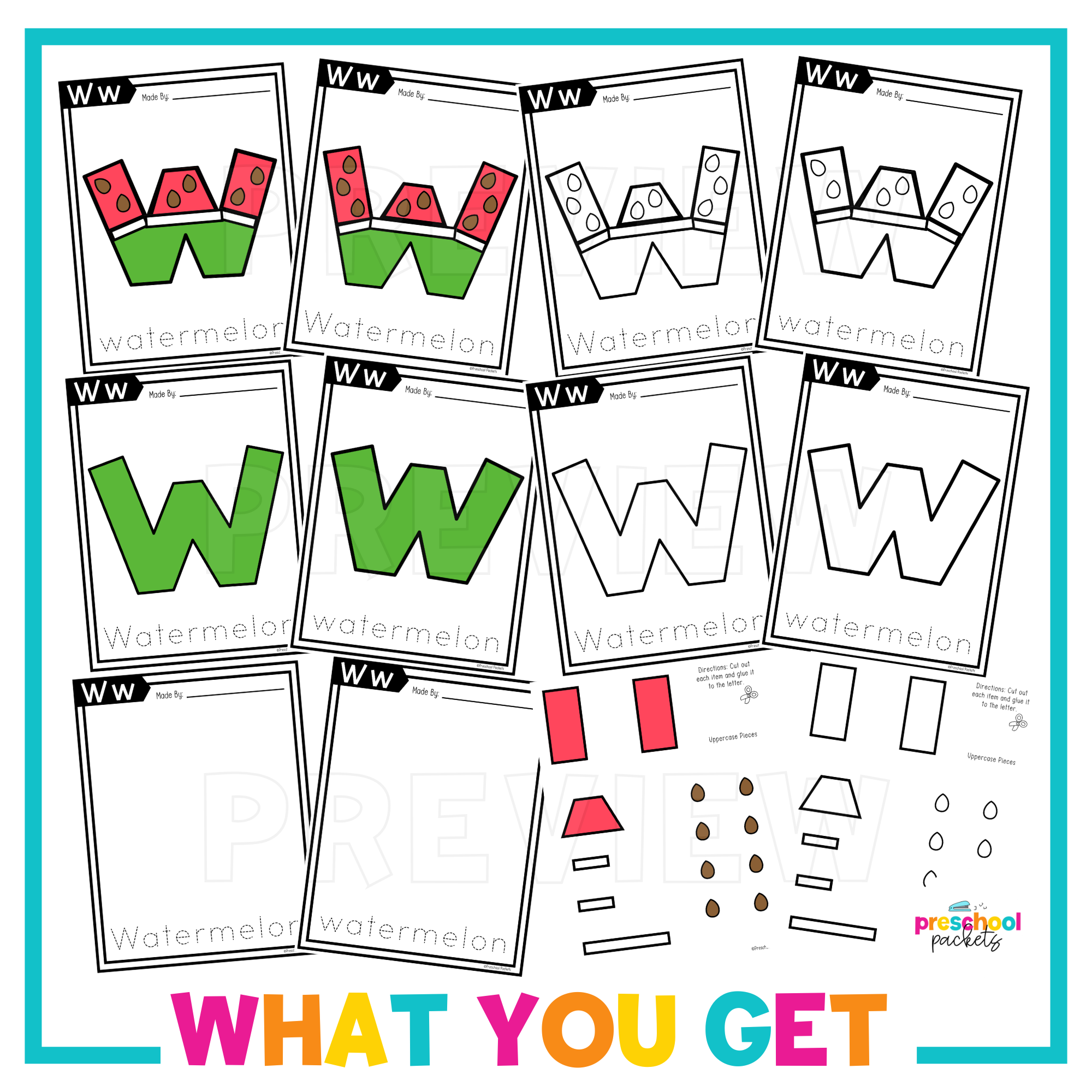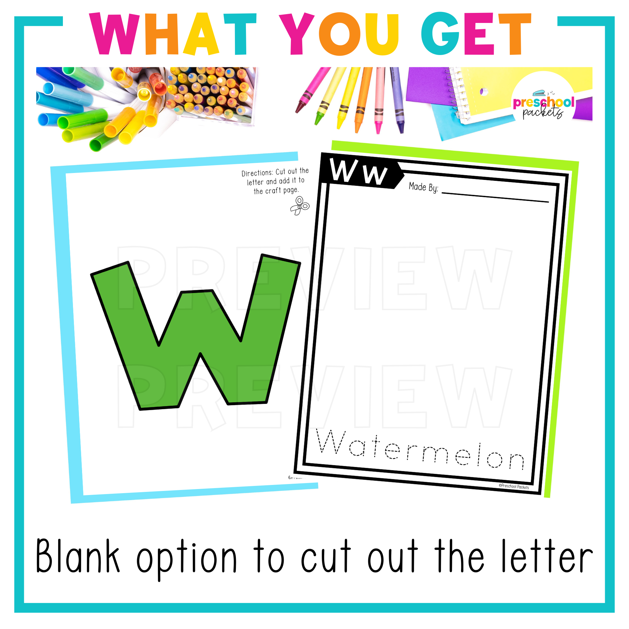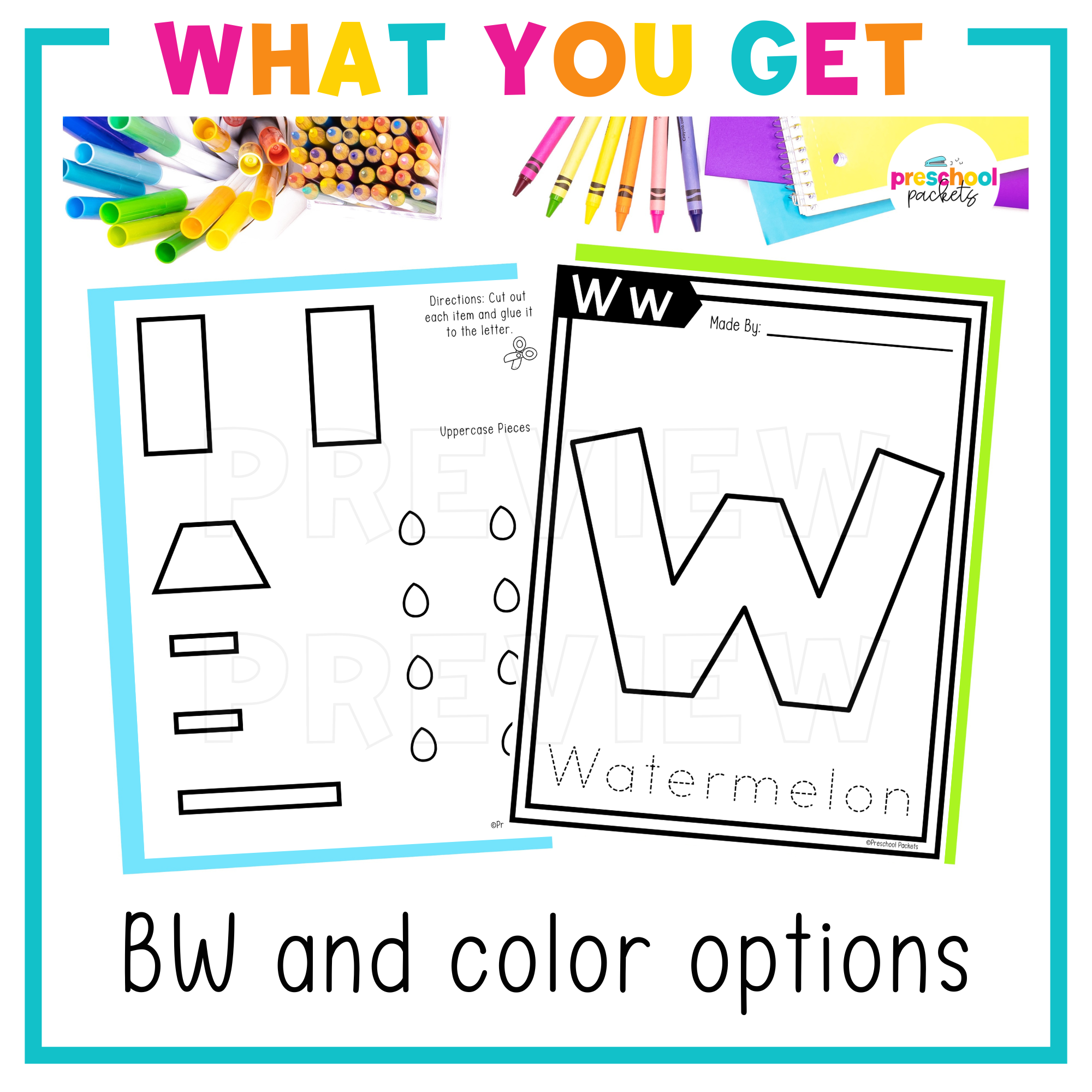 Students get to cut, color and paste each item to build a watermelon to learn the letter W!