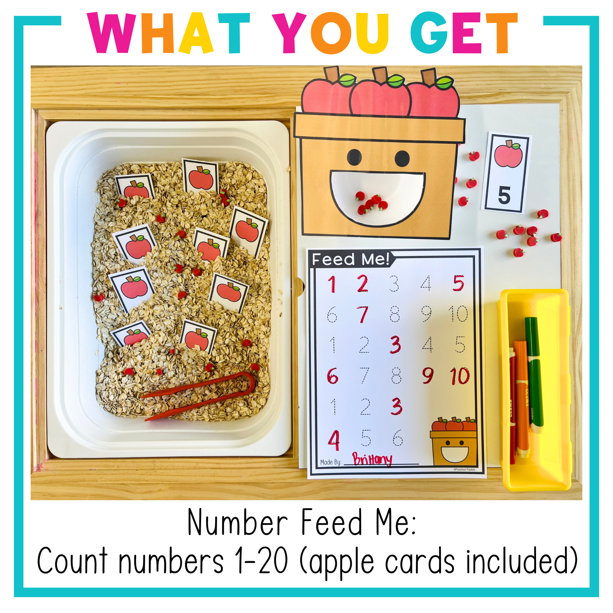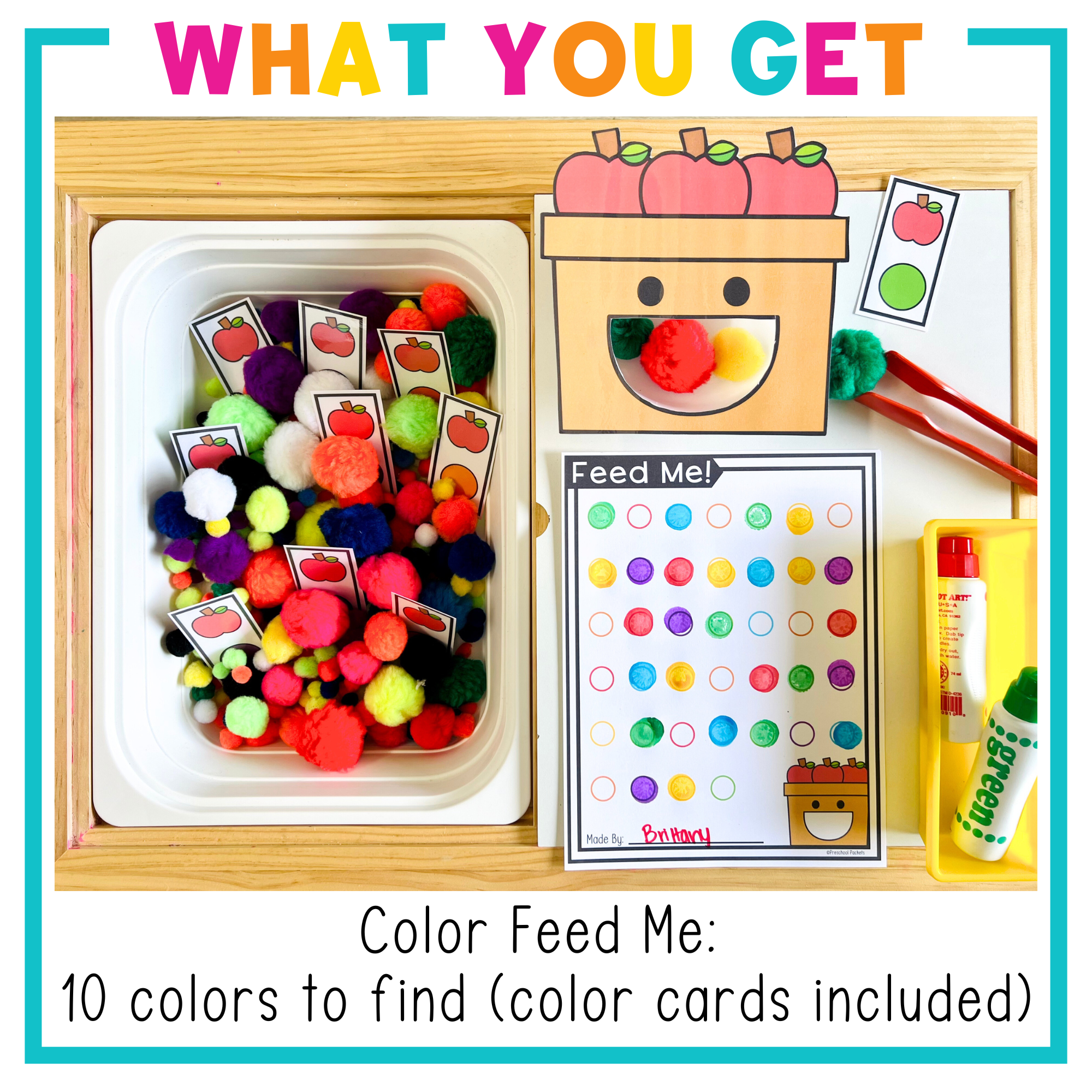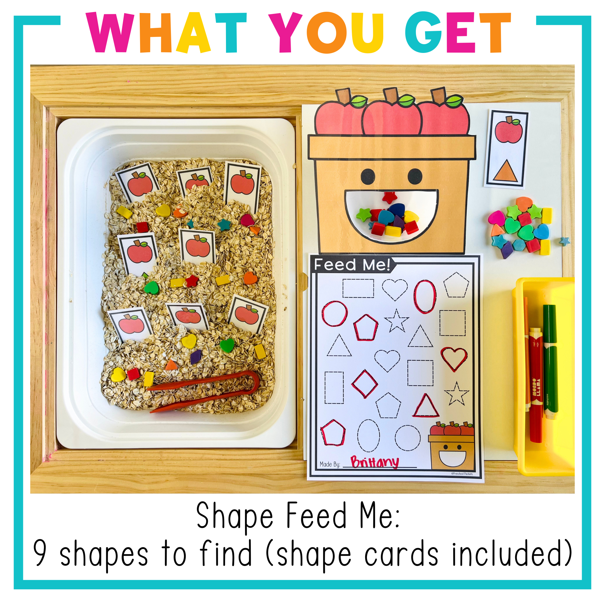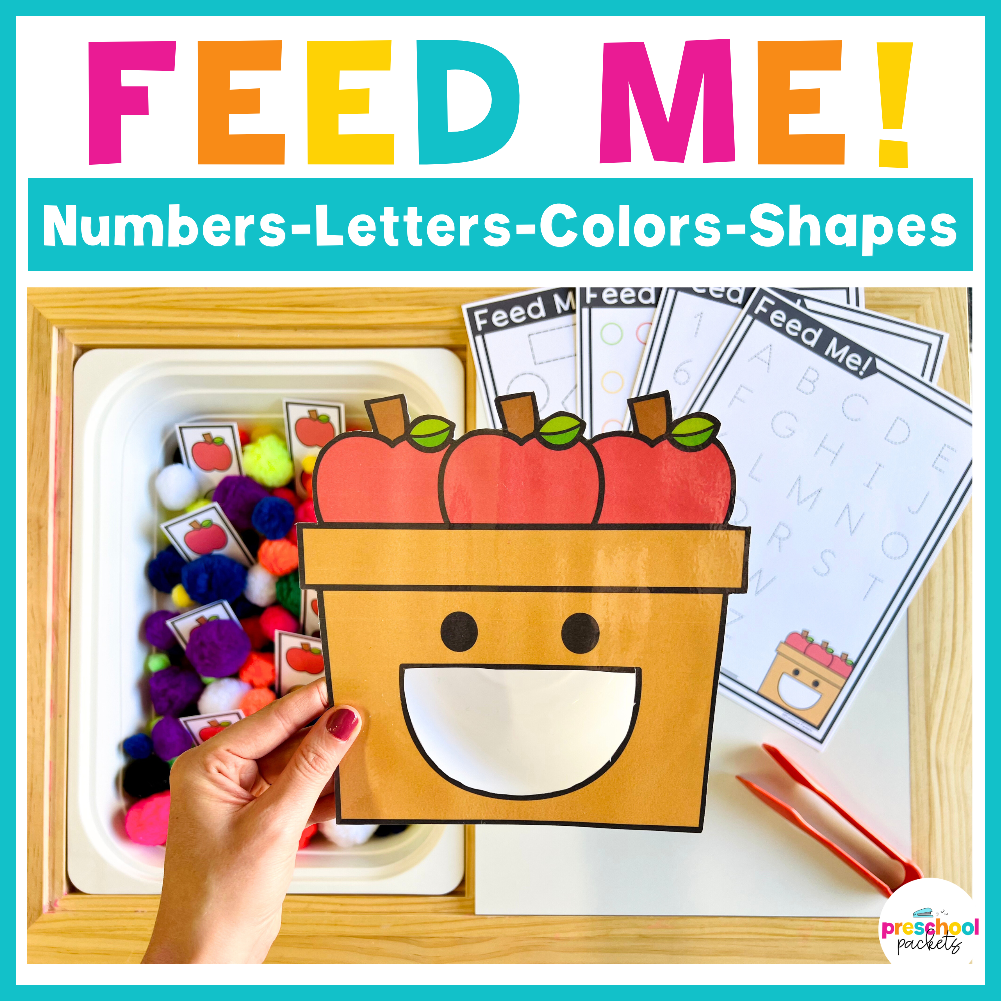 Feed Me! Apple Basket - Looking for fun, hands-on fall activities for your preschool classroom? This Feed Me! Apple Basket center is ideal for practicing letters, numbers, shapes, and colors.