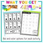 - Dot marker/ circle stickers sheets: one with rainbow colors to match the dot markers and one with all the colors.