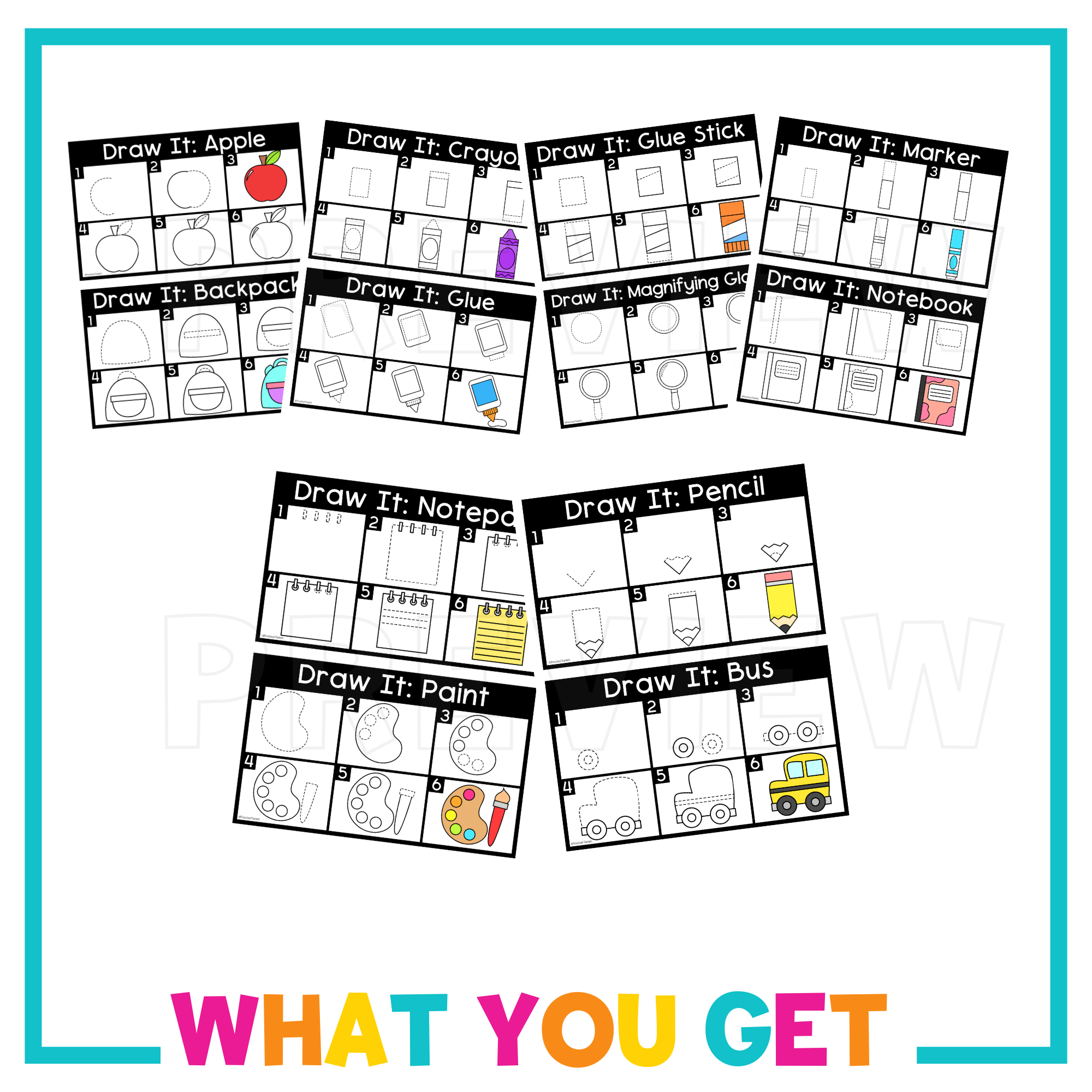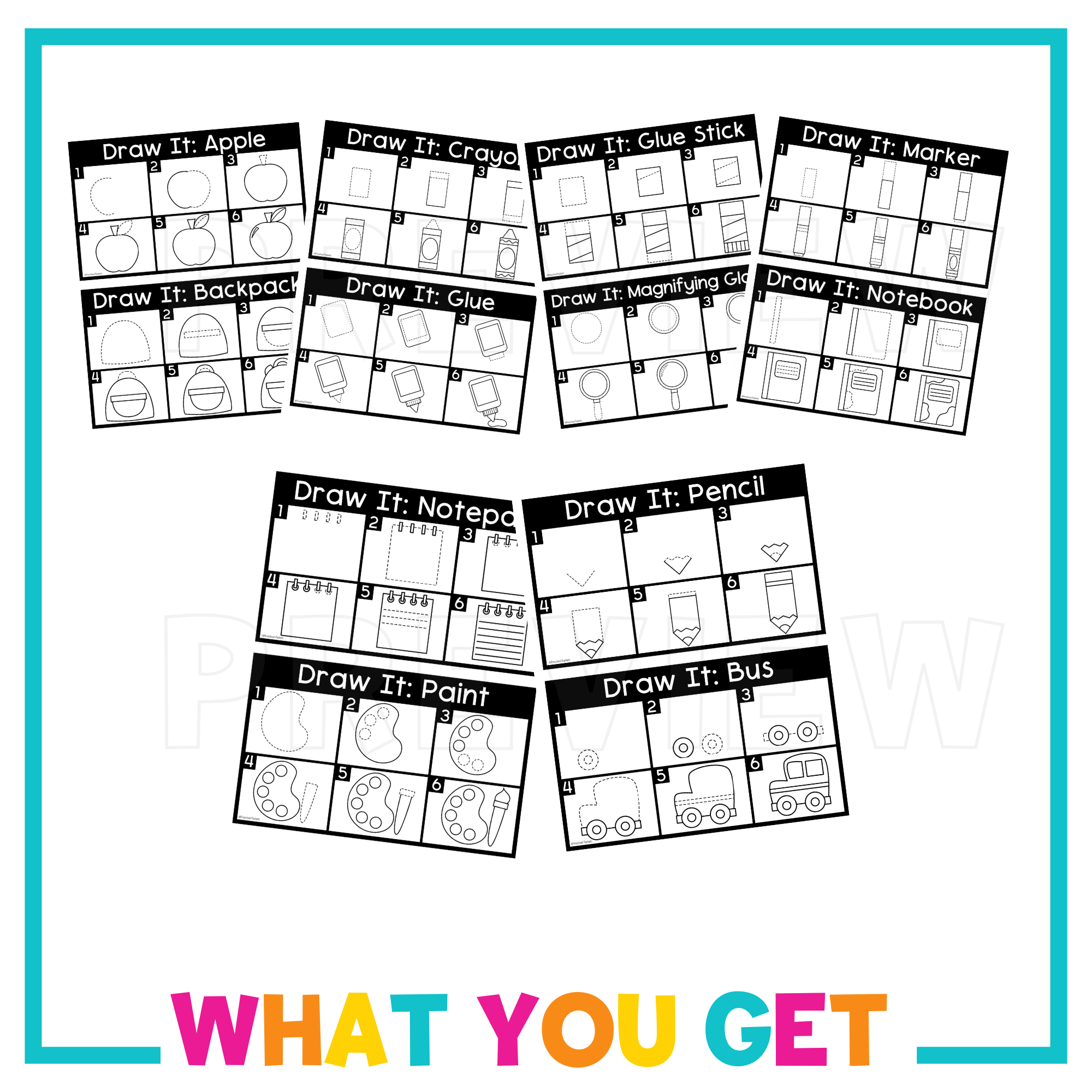 Back To School Directed Drawings For Preschool, PreK and Kindergarten