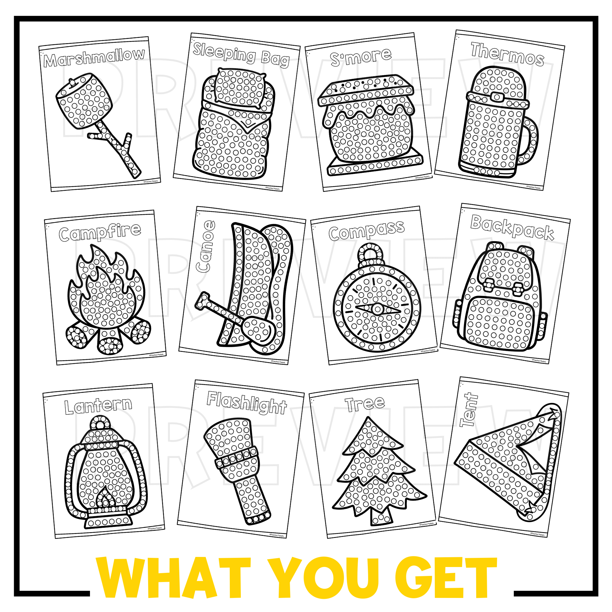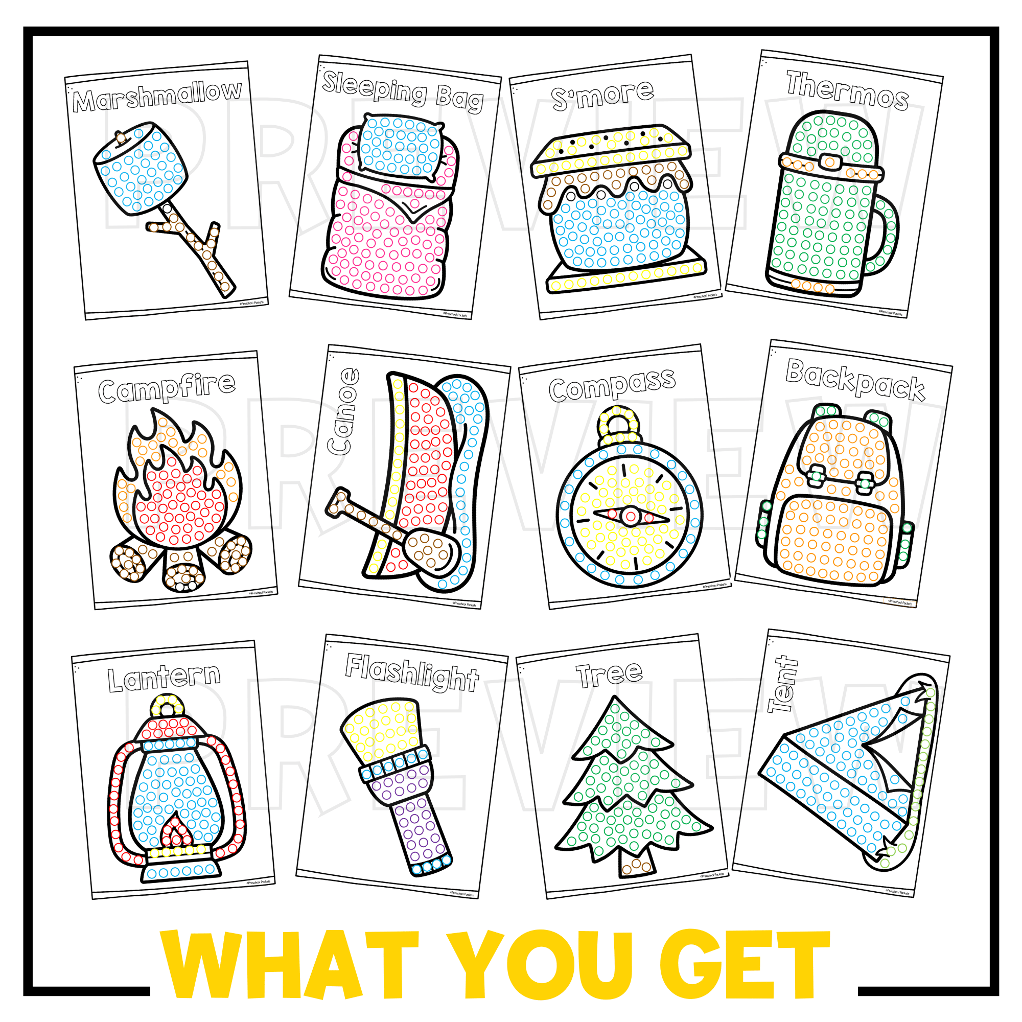 Looking for an easy NO PREP craft for your camping theme? With just a Q Tip and some paint, children can engage in an easy and creative fine motor activity! This set includes a total of 12 campingThemed Crafts.