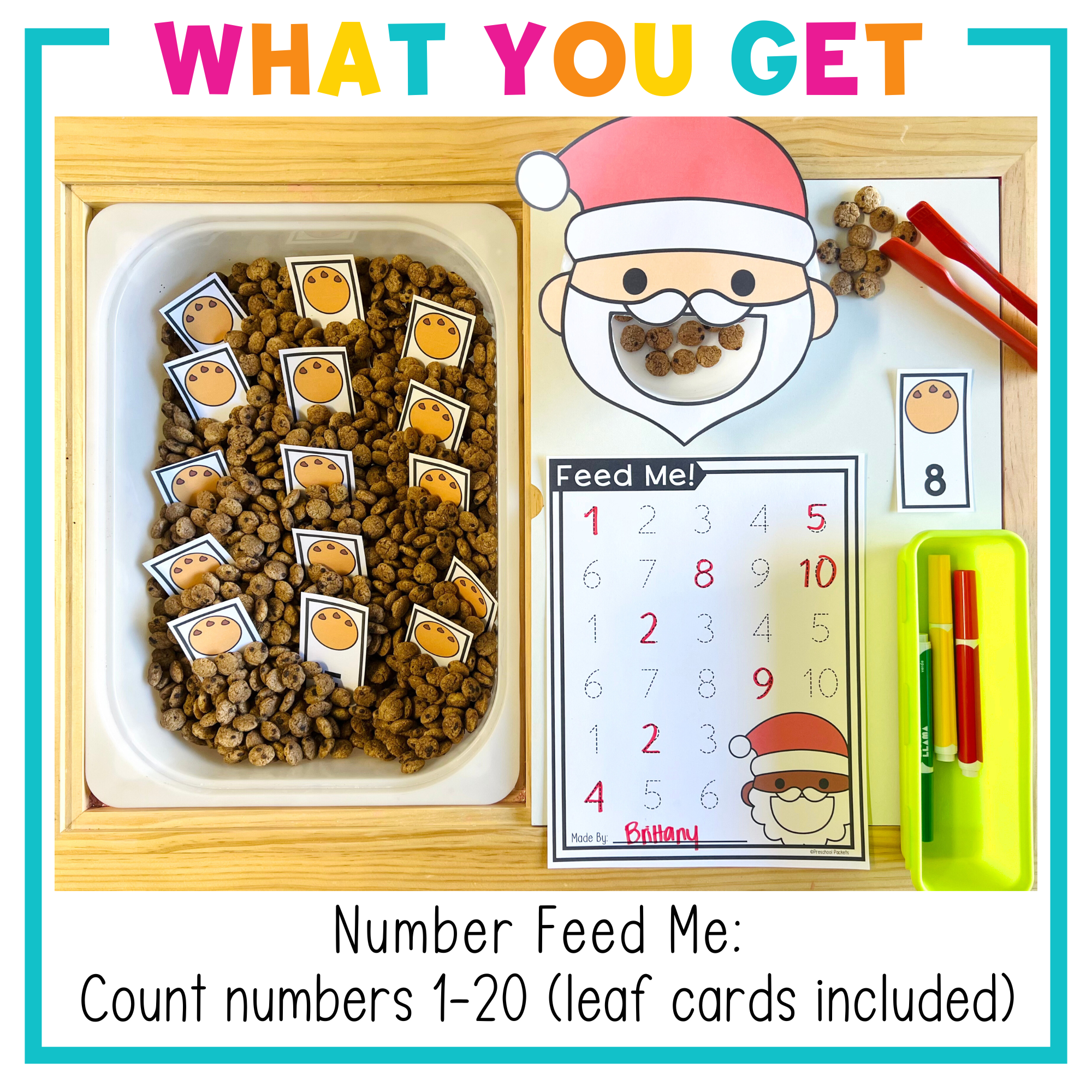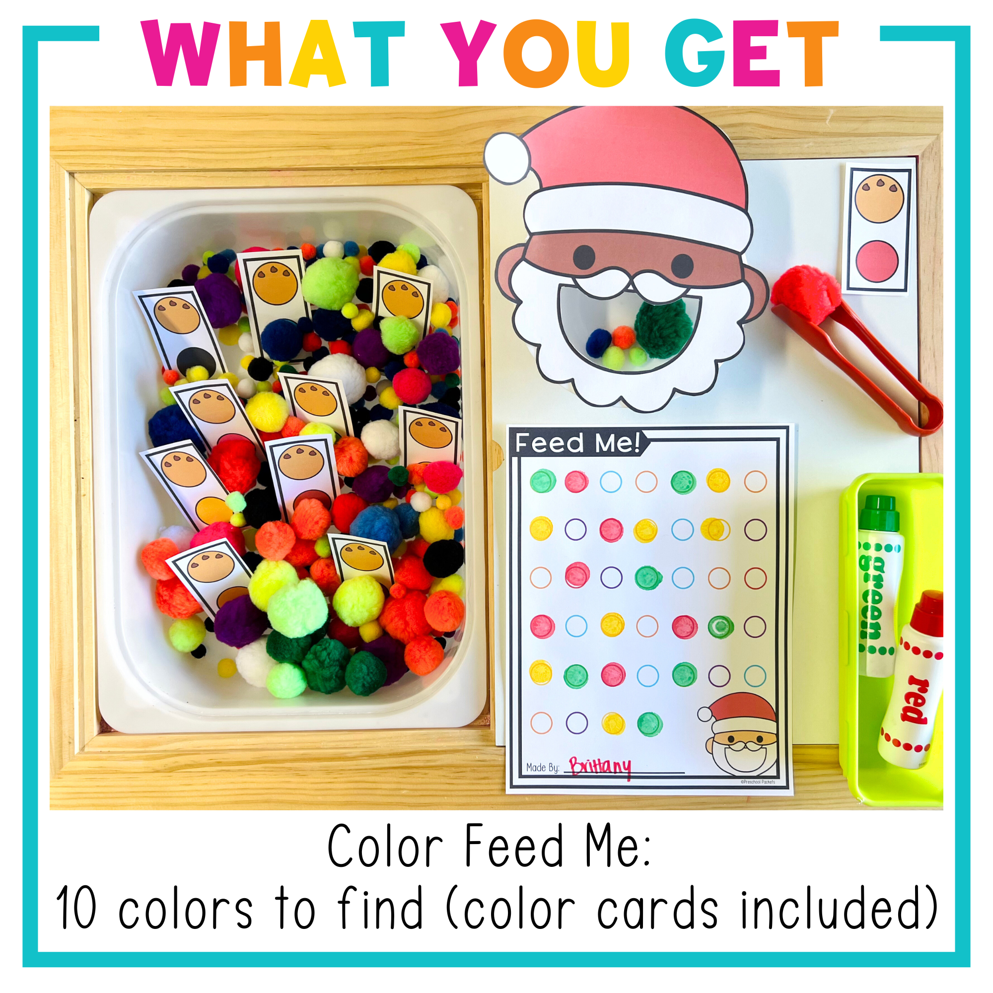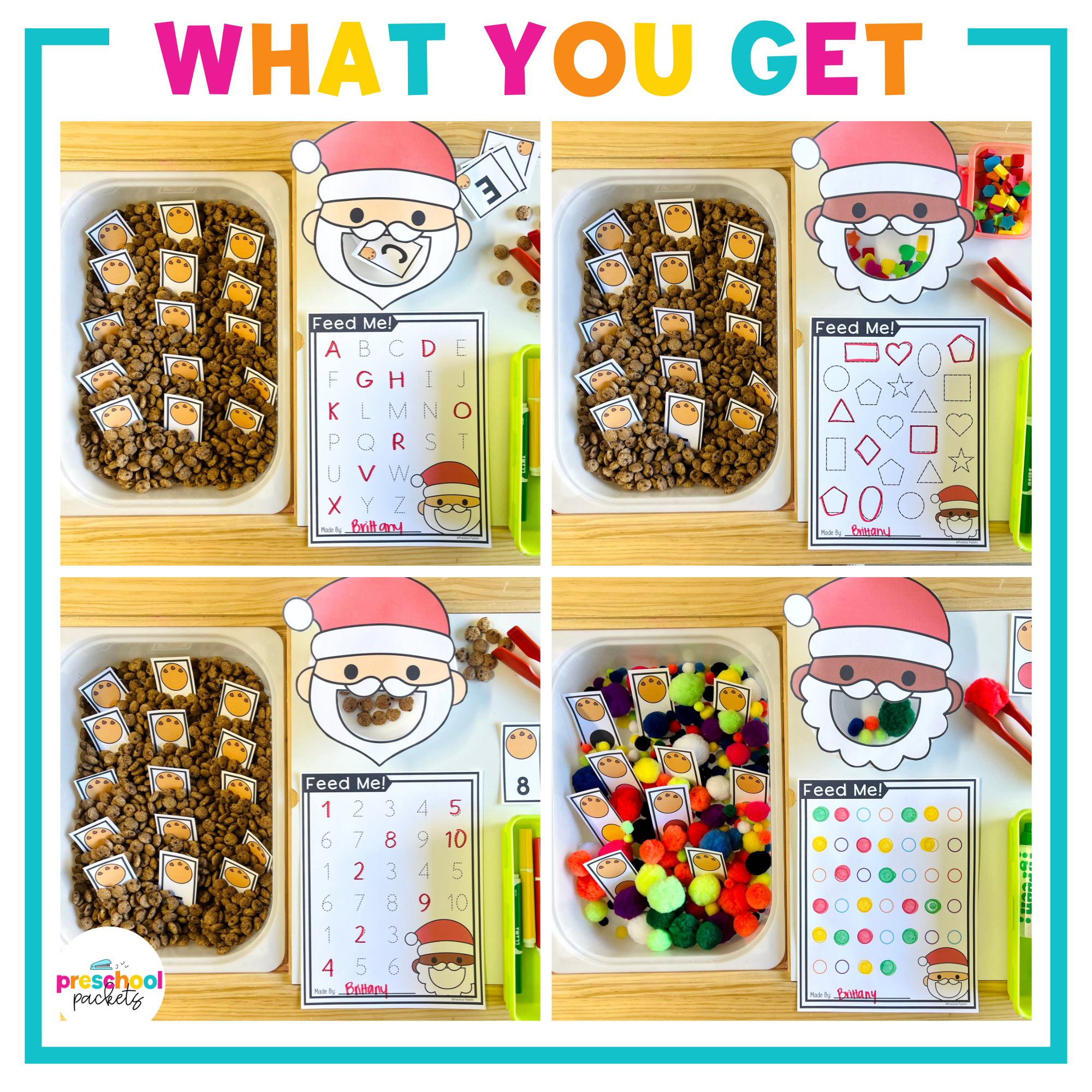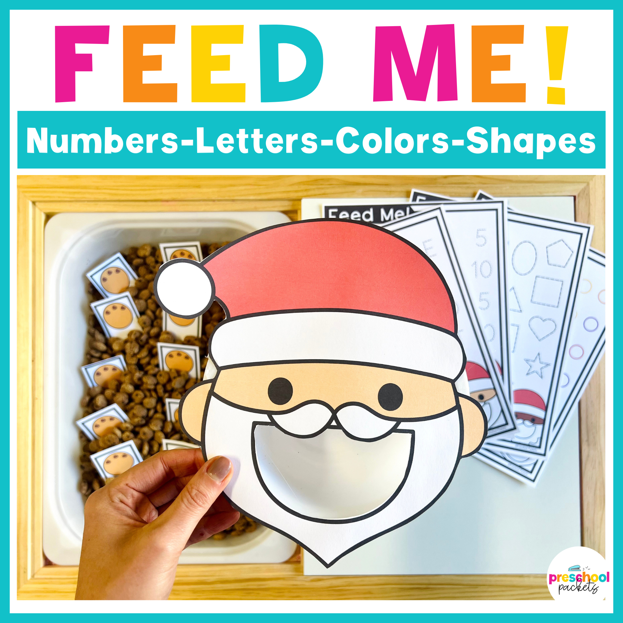 Feed Me! Christmas Santa - Looking for fun, hands-on Christmas activities for your preschool classroom? These Feed Me! Santa centers are ideal for practicing letters, numbers, shapes, and colors.