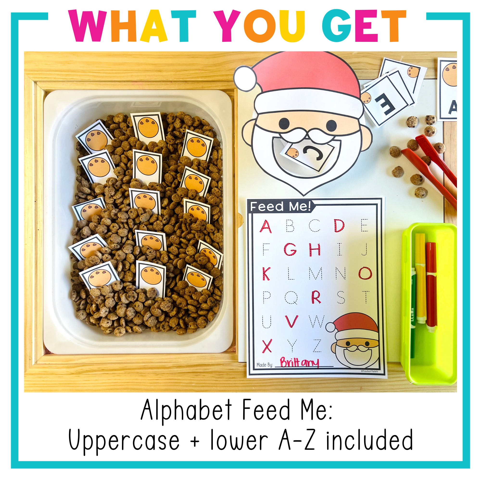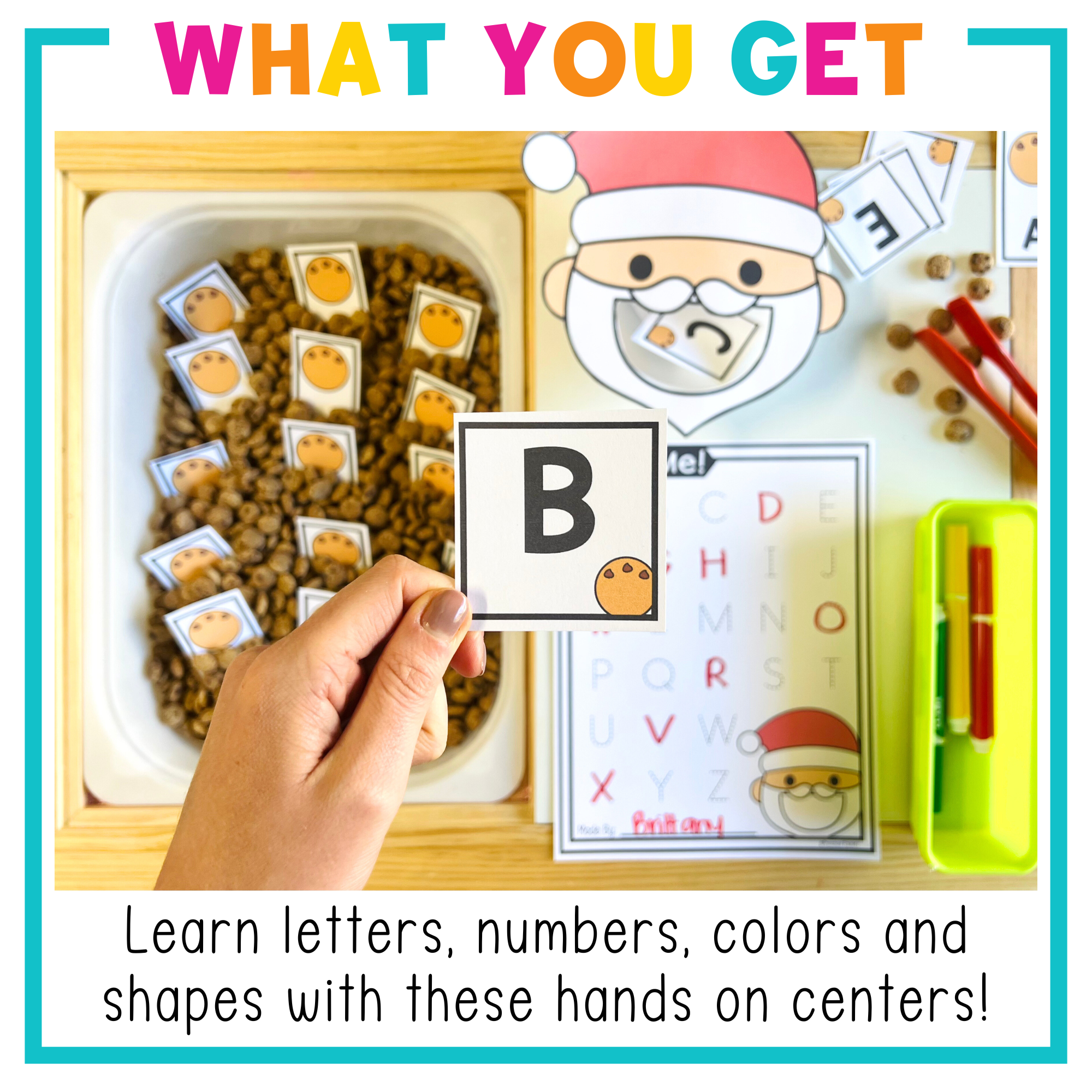 Christmas Santa Feed Me Letters, Numbers, Shapes, and Colors PreK Centers