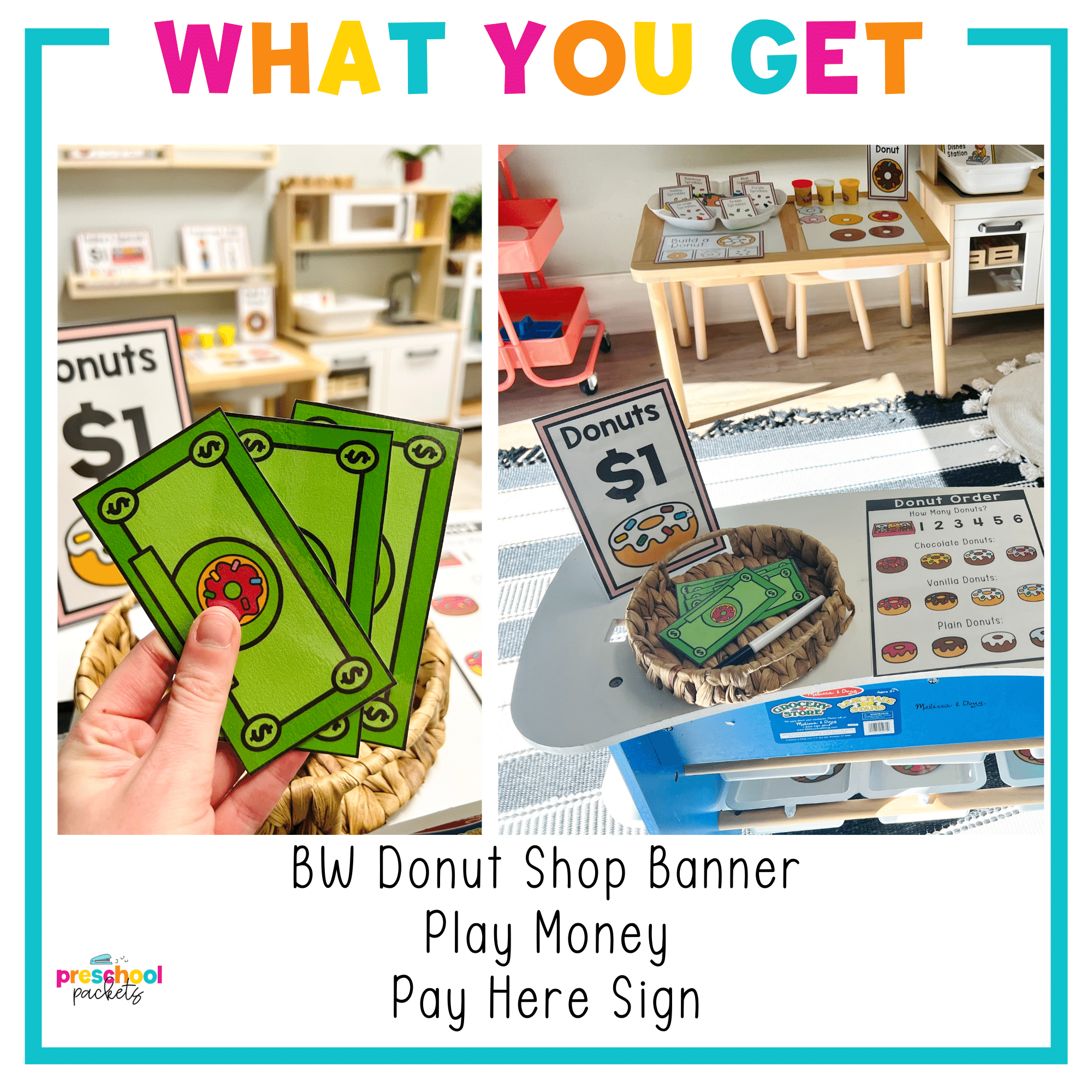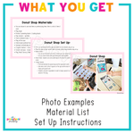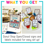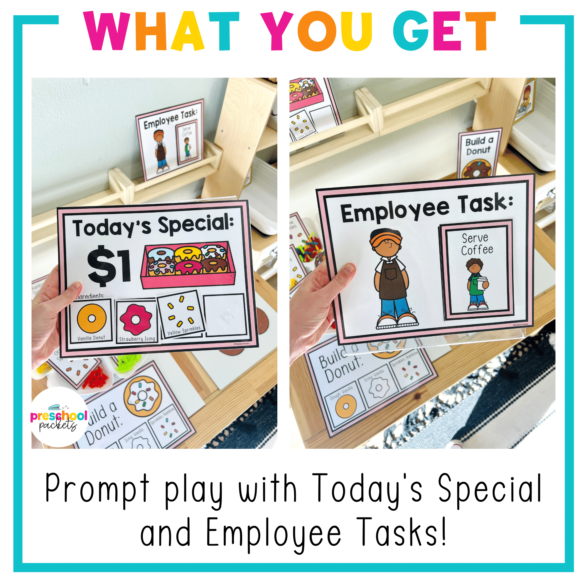 Employee Tasks: Sweep, take out the trash, wash the dishes, serve donuts, make donuts, take orders, serve coffee, count the money