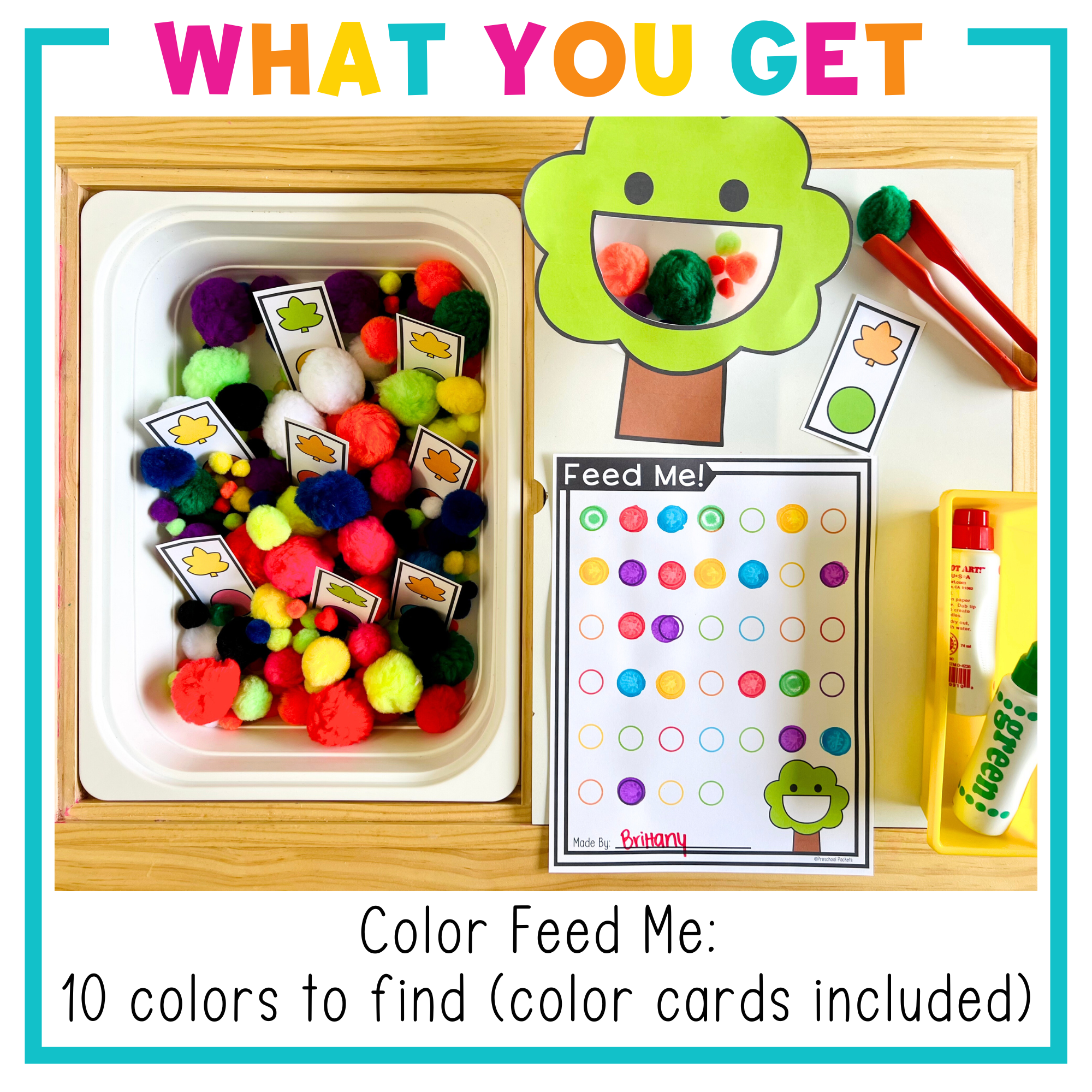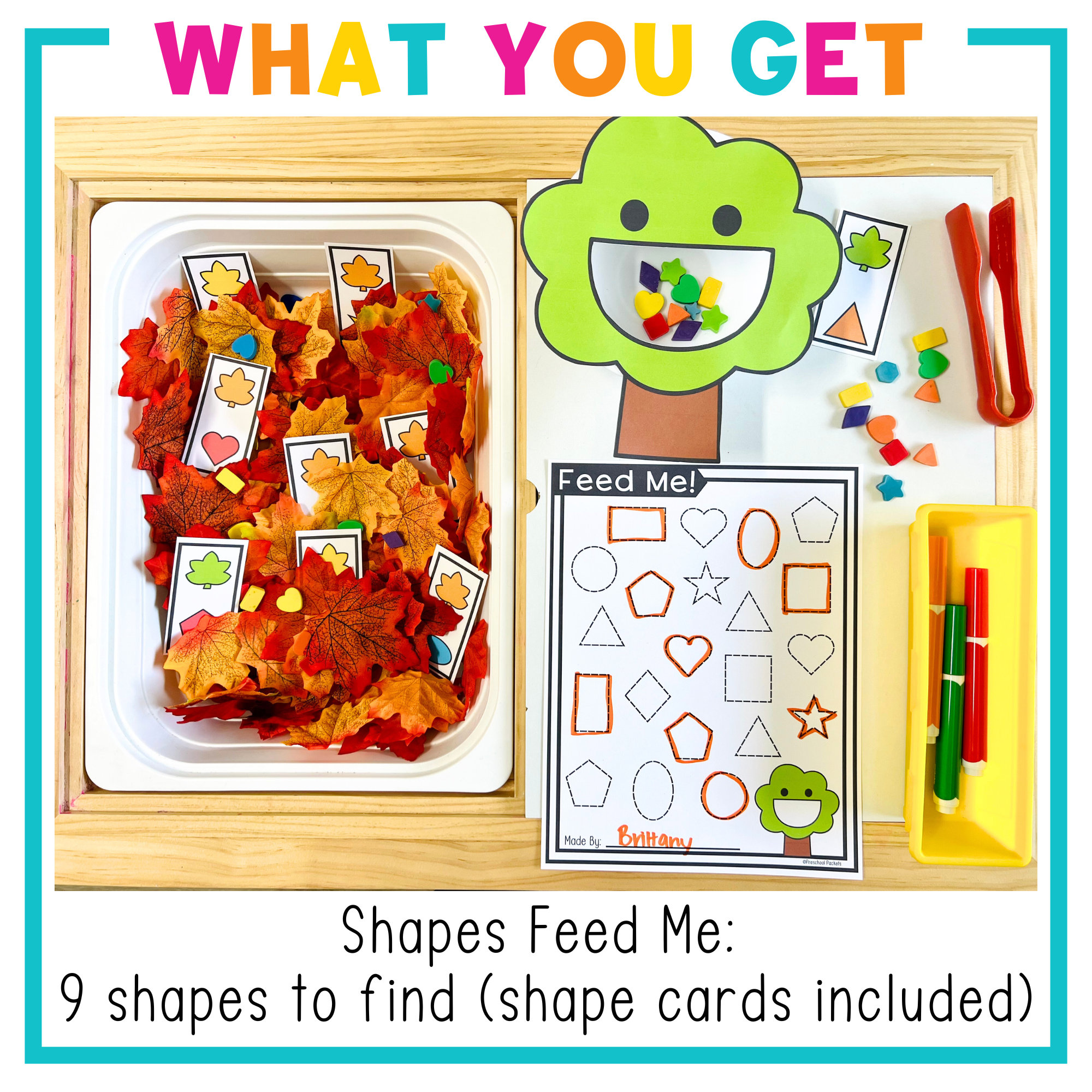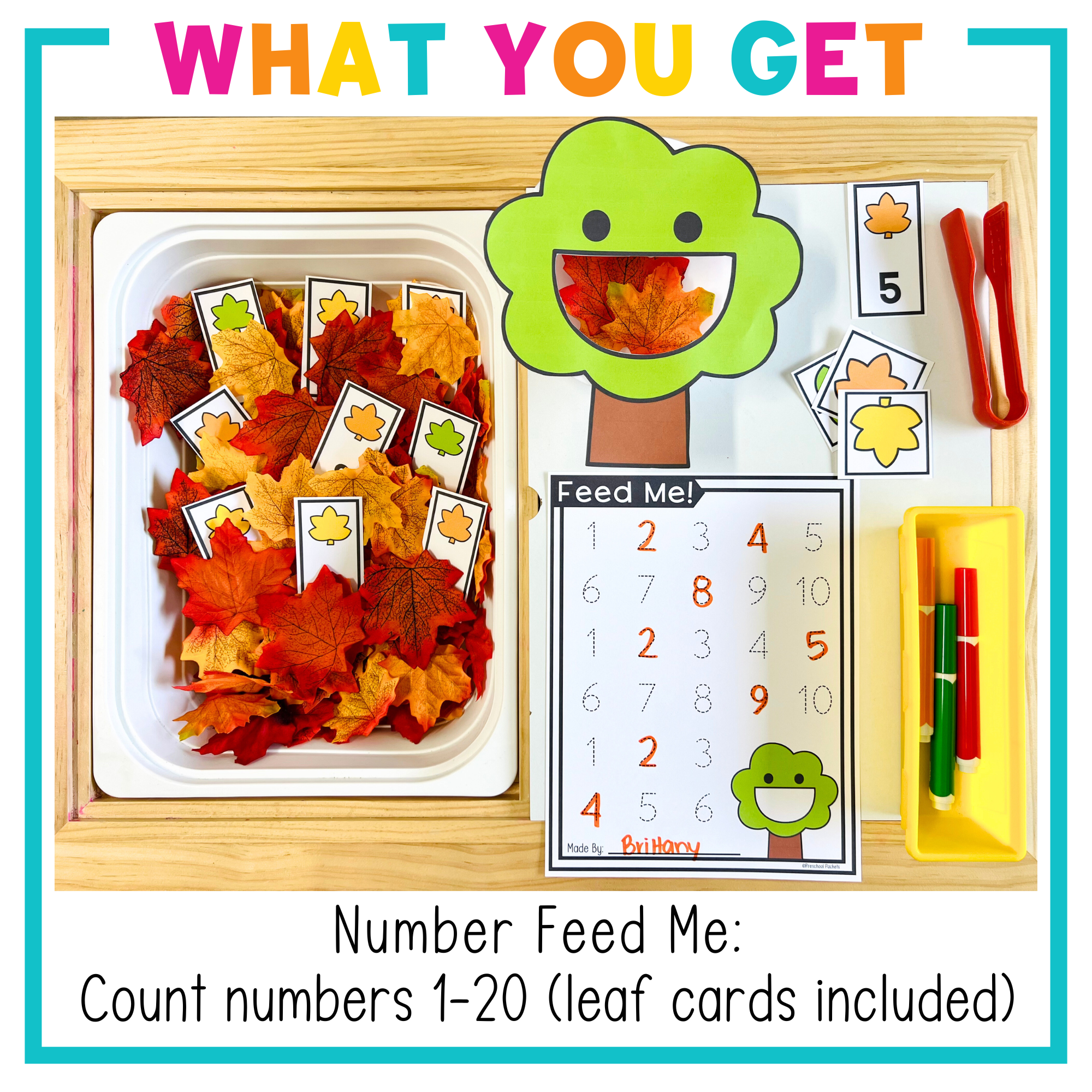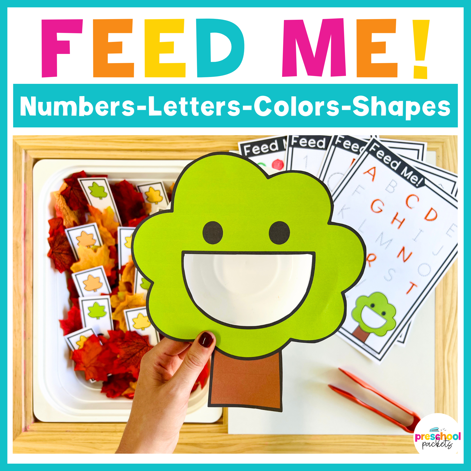 Feed Me! Fall Tree - Looking for fun, hands-on fall activities for your preschool classroom? This Feed Me! Leaf center is ideal for practicing letters, numbers, shapes, and colors.