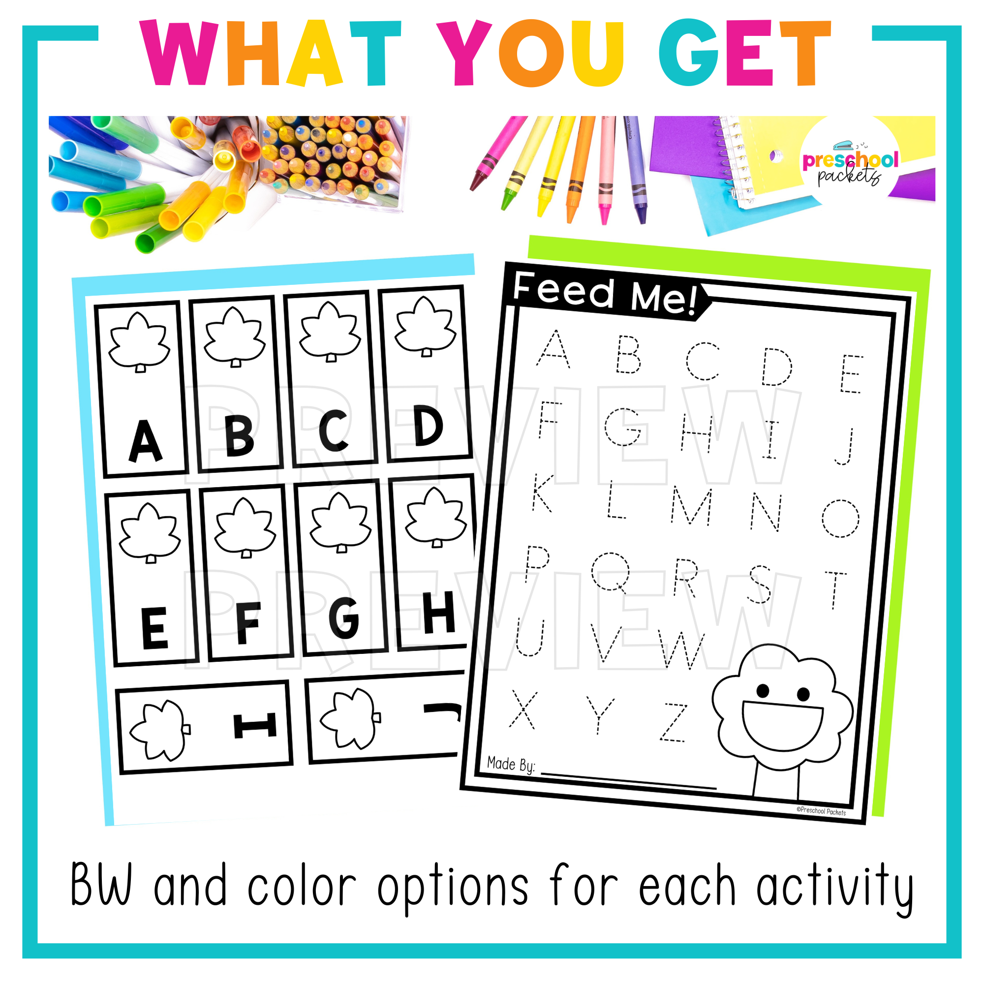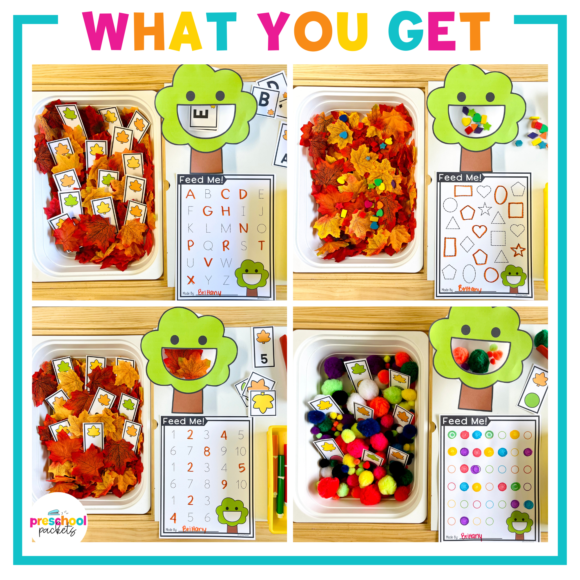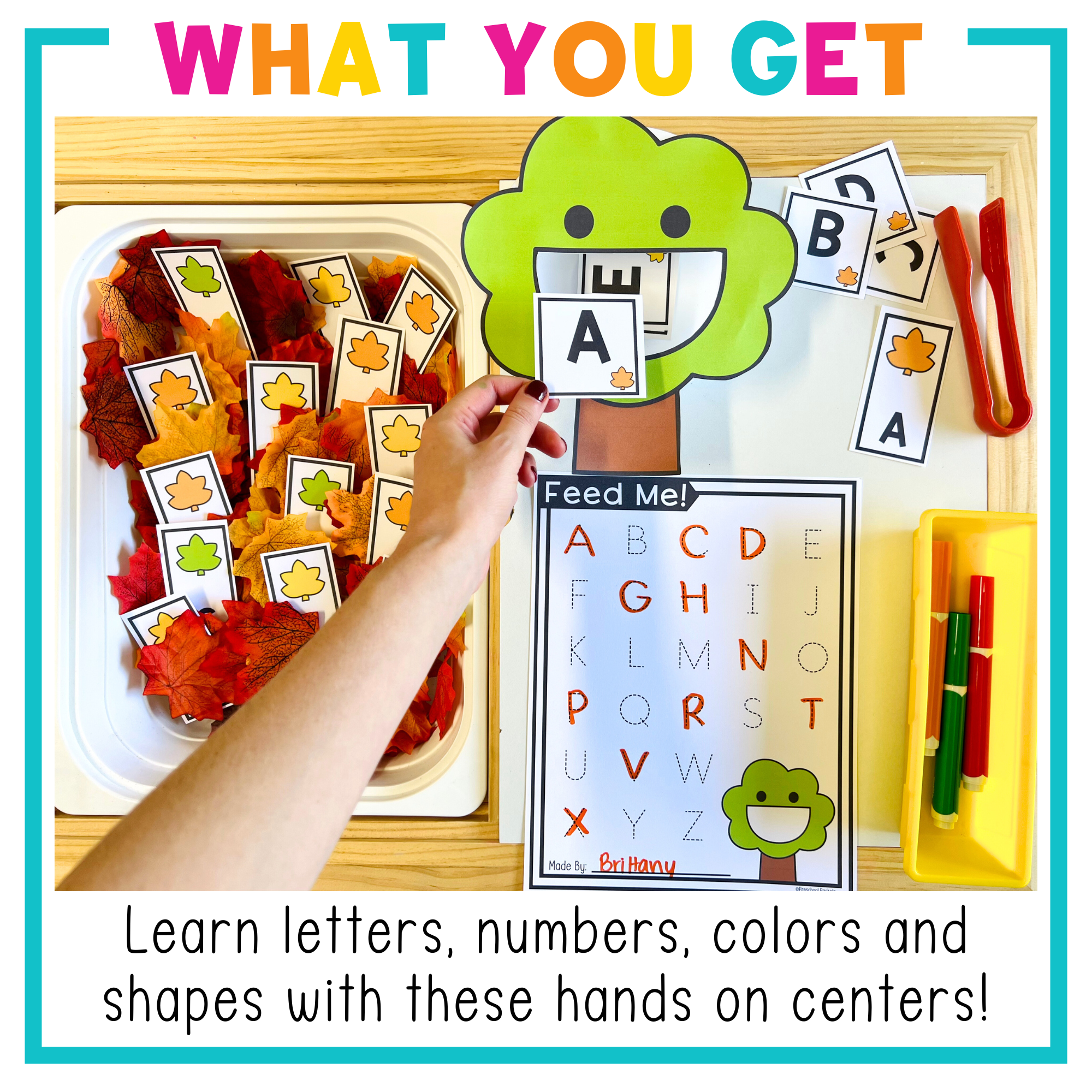 Fall Tree Feed Me Letters, Numbers, Shapes, and Colors centers for Preschool