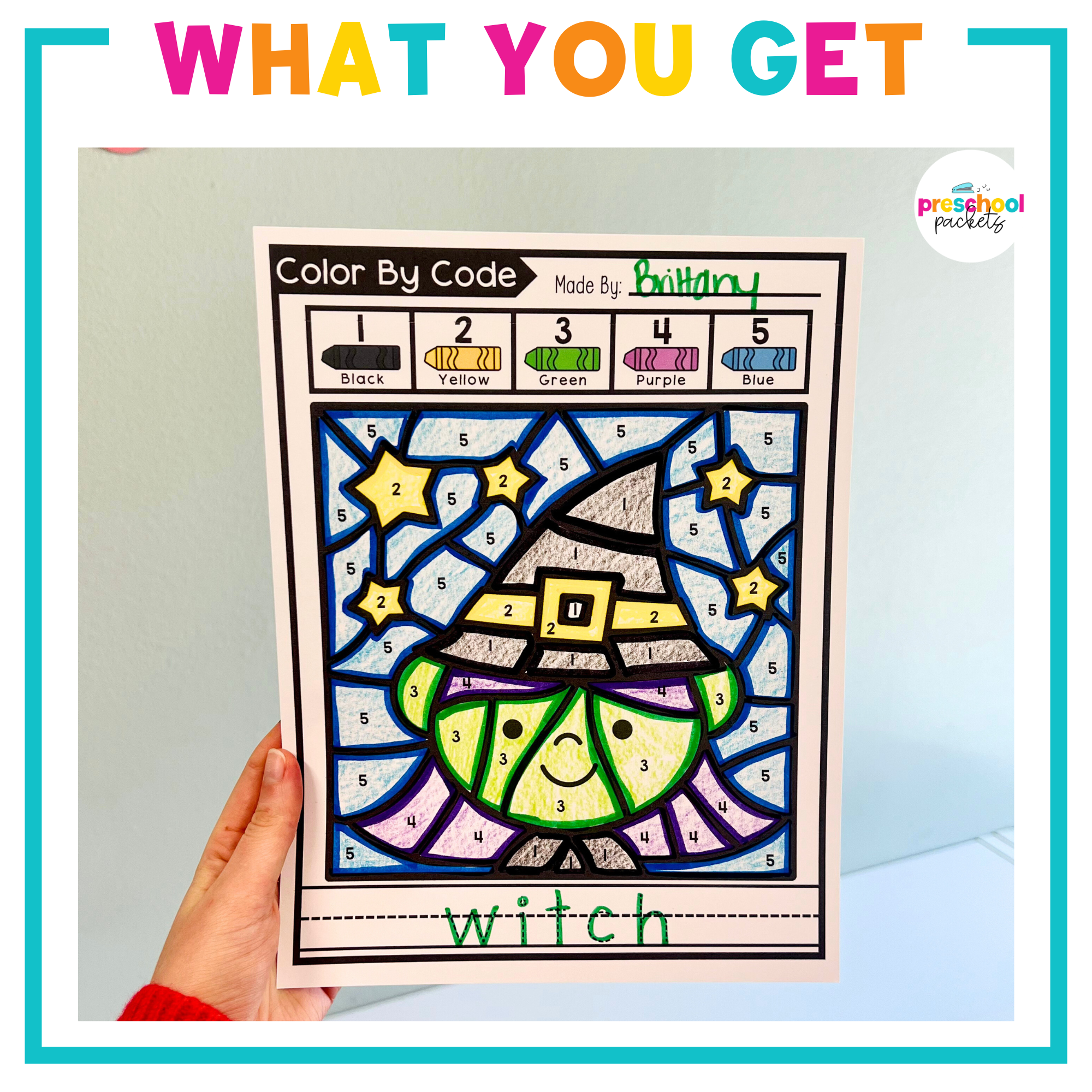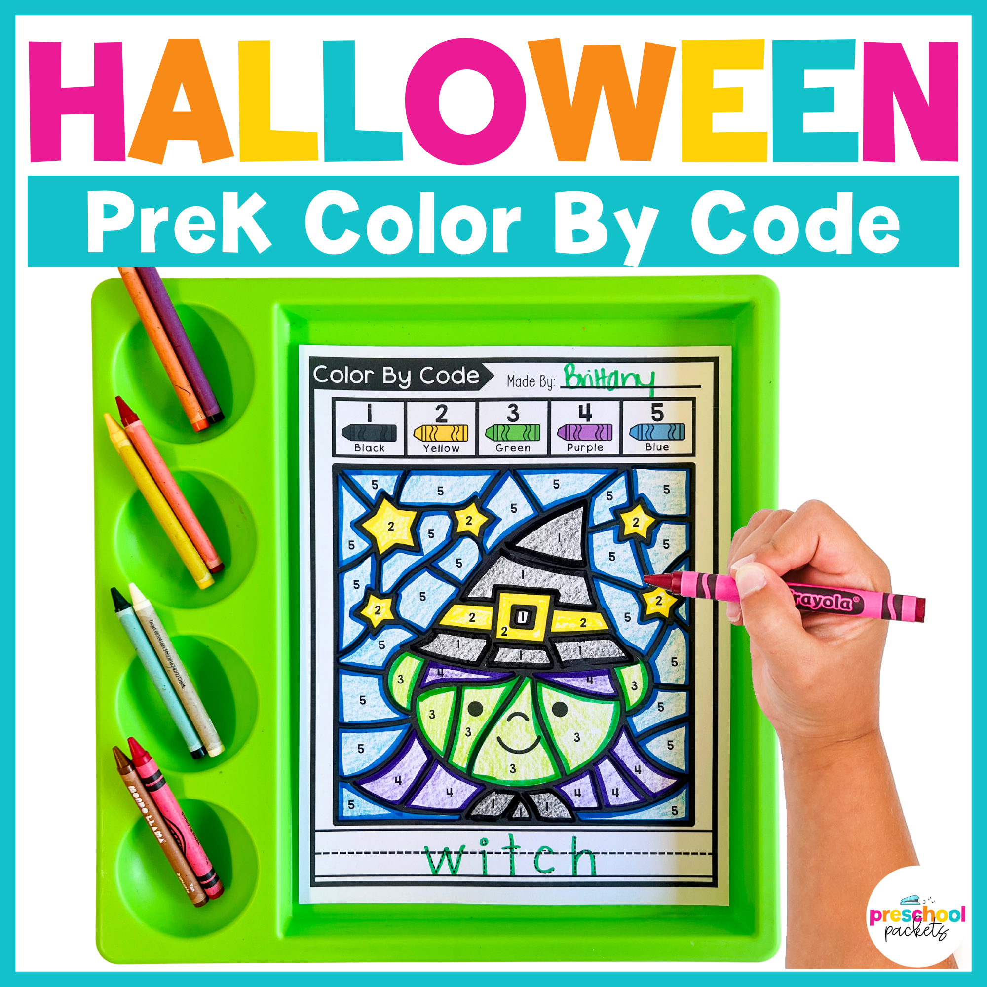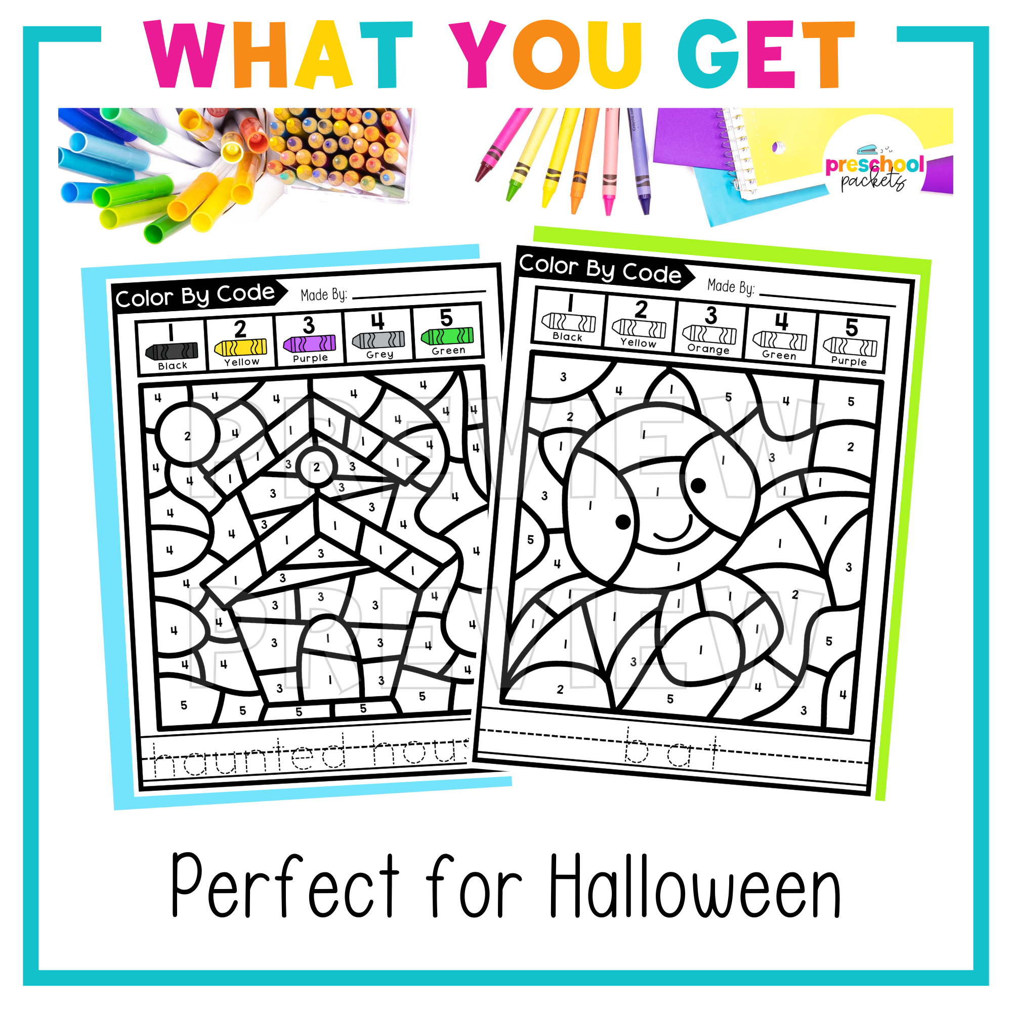 Halloween Color By Code - a no prep activity that is perfect for spooky season! These color by code sheets are perfect for letter of the morning tubs, independent activities and math lessons for your preschool, preK and Kindergarten classrooms!