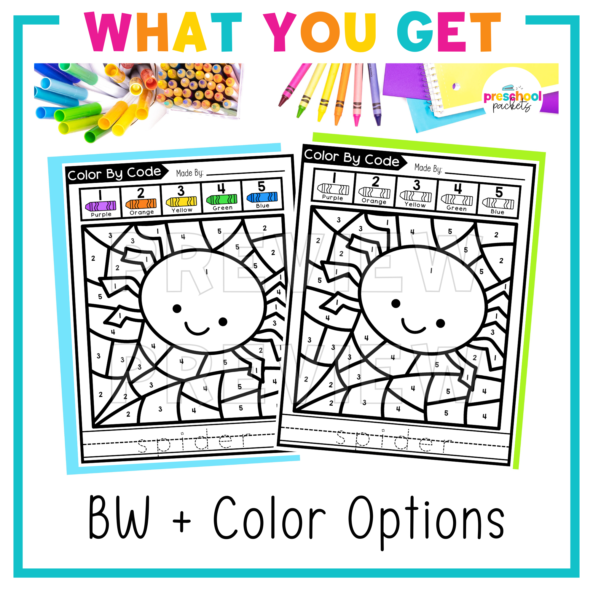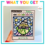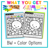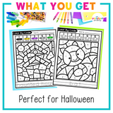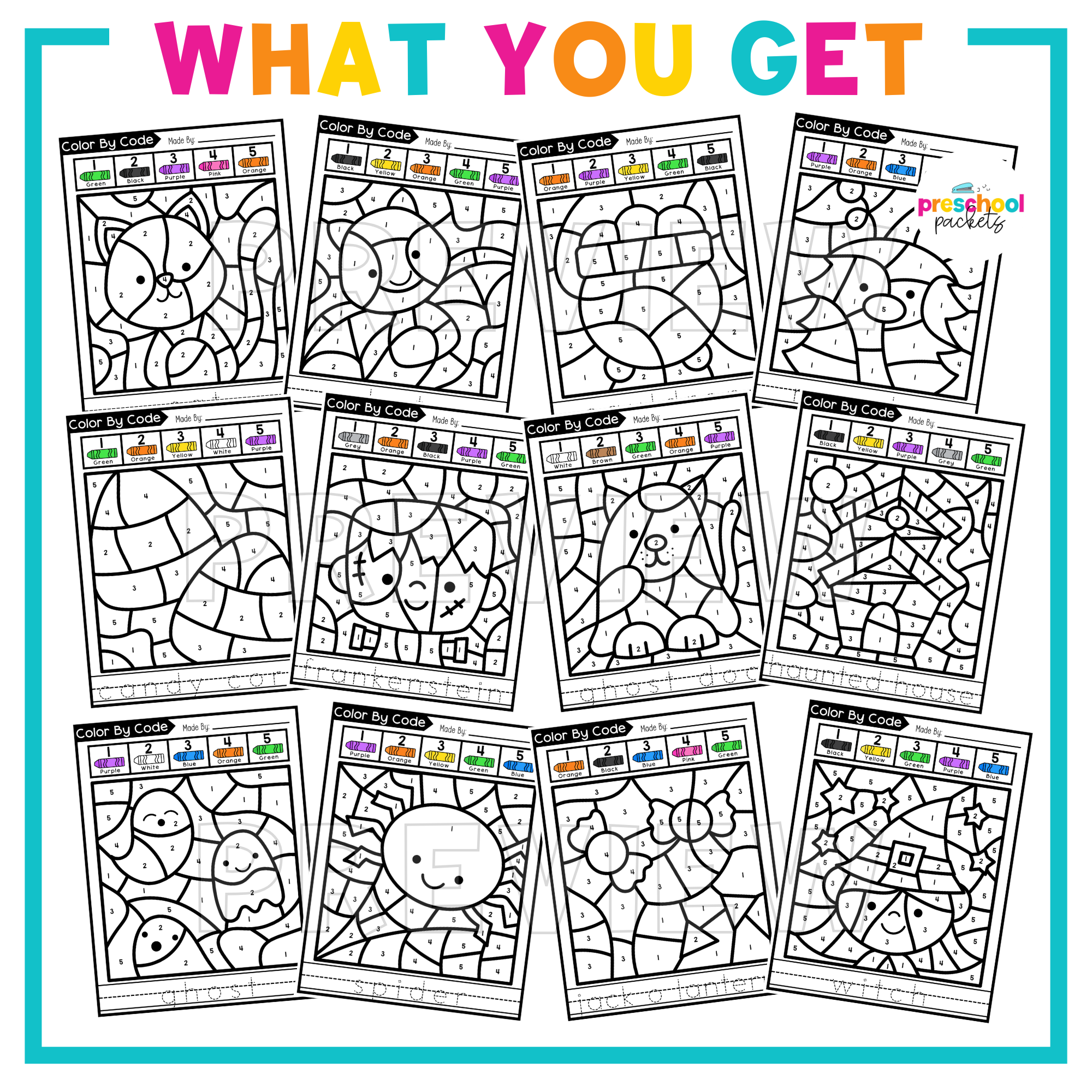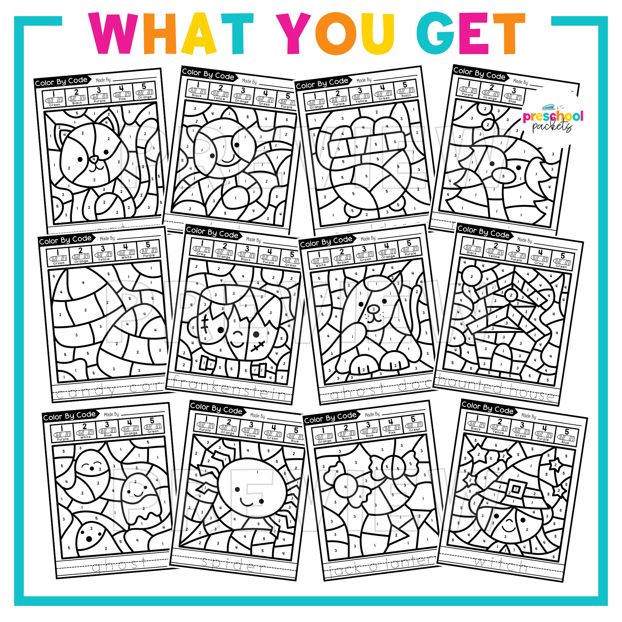 Halloween Color By Code - a no prep activity that is perfect for spooky season! These color by code sheets are perfect for letter of the morning tubs, independent activities and math lessons for your preschool, preK and Kindergarten classrooms!