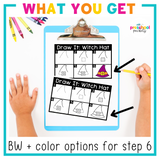 Halloween Directed Drawings - a fun way to develop fine motor skills and and teach students how to draw! Each directed drawing has 6 easy to follow steps, making it perfect to use in your preK and Kindergarten classrooms!