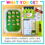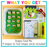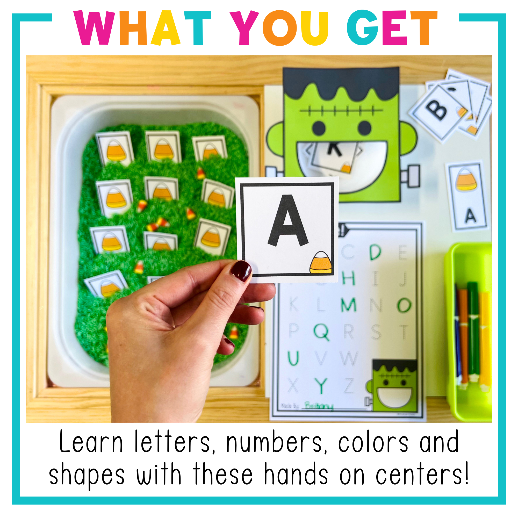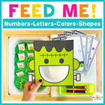 Halloween Frankenstein Feed Me Letters, Numbers, Shapes, and Colors PreK Centers