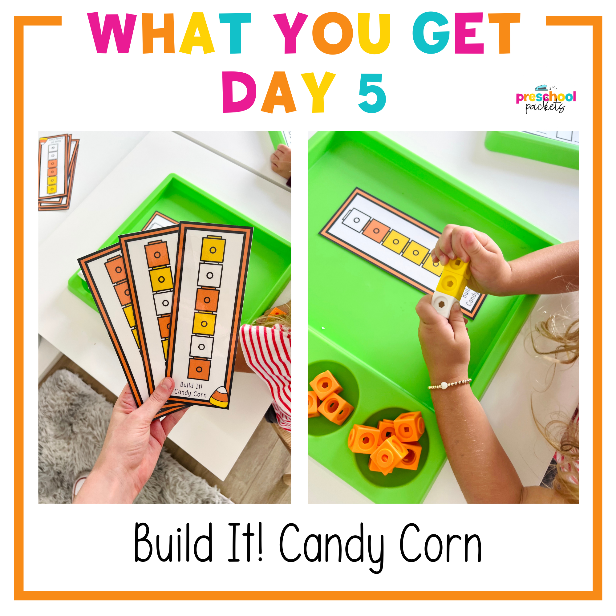 - Build It! Candy Corn: Students can work on patterns by building candy corn using counting cubes! 15 Cards included.