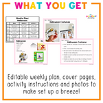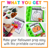 Halloween themed printable curriculum for your preschool classroom! Dive into a fun-filled learning with these Halloween preK centers that spans 5 days of engaging and hands-on activities. This set is packed with an Halloween sensory bins, crafts, fine motor centers, math centers, literacy activities and so much more!