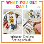 - Halloween Costume: Students can play dress up by adding the correct clothing item to the costume kids to dress them up for Halloween. Costumes included: Robot, witch, monster, Frankenstein, astronaut, lion, bat, bee, skeleton, pirate, pumpkin, mummy, dinosaur, ghost