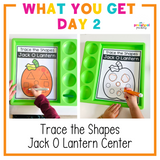 - Trace the Shapes: Students can work on pre-handwriting skills by tracing the shapes on the Jack O Lantern. Shapes included: circles, hearts, triangles, Stars, squares, mixed shapes. (BW and Color options included)