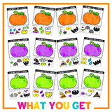 - 3 Pumpkin colors: Orange, Green, and Purple