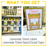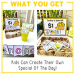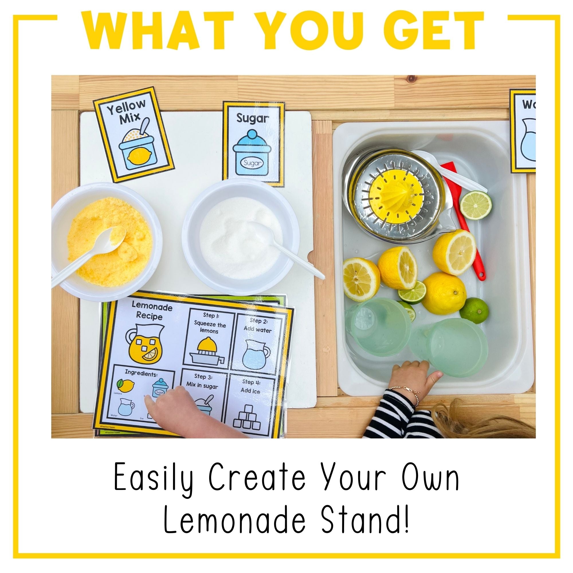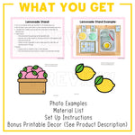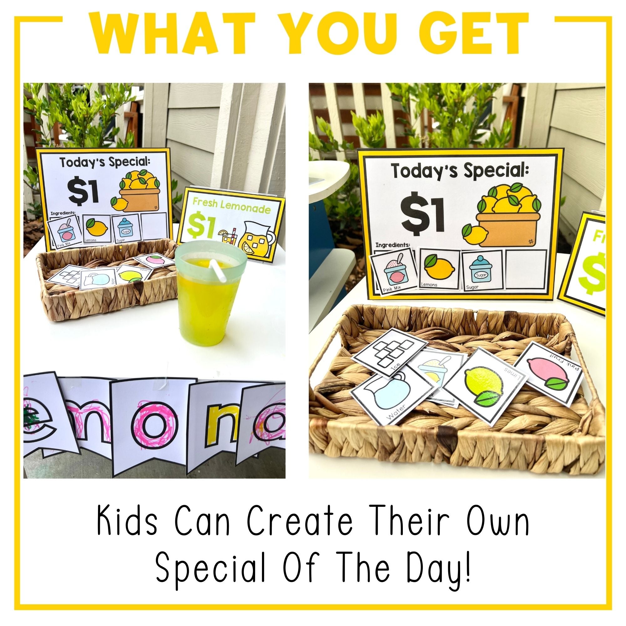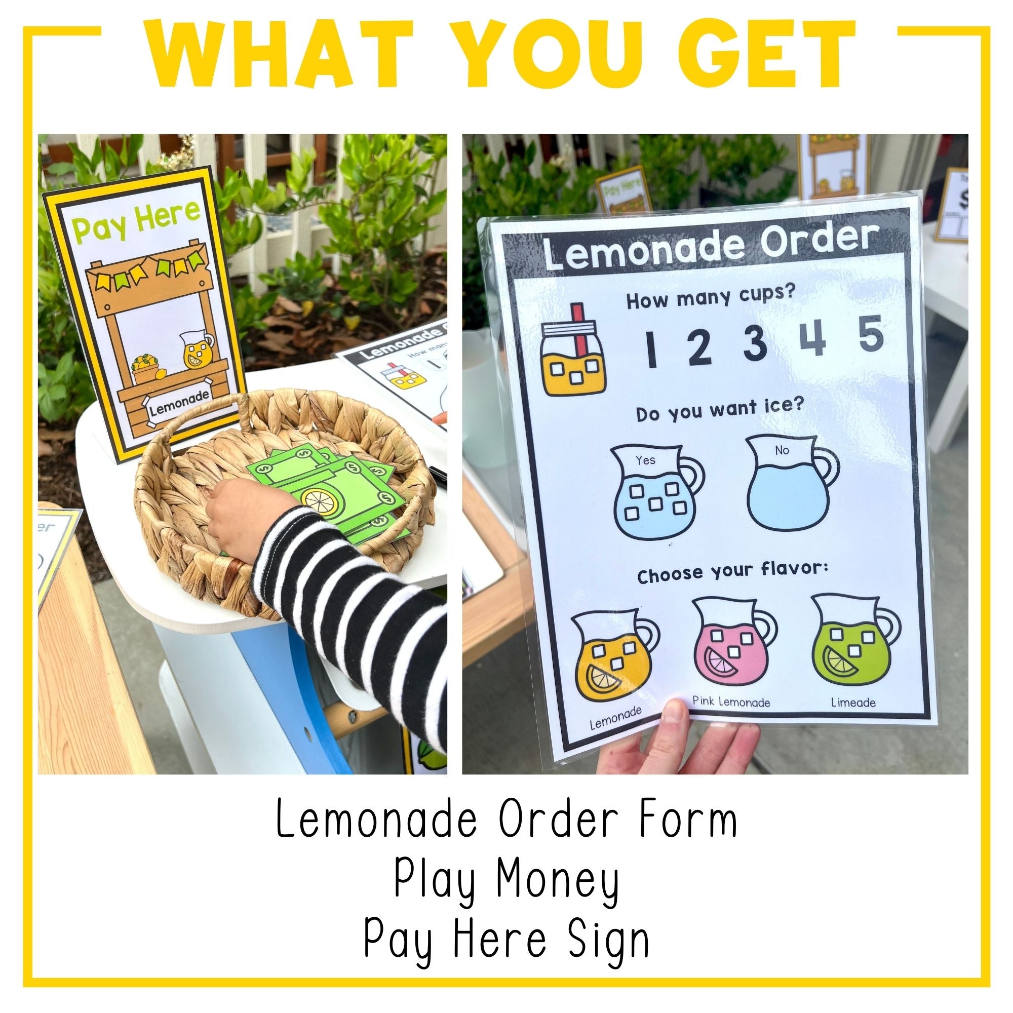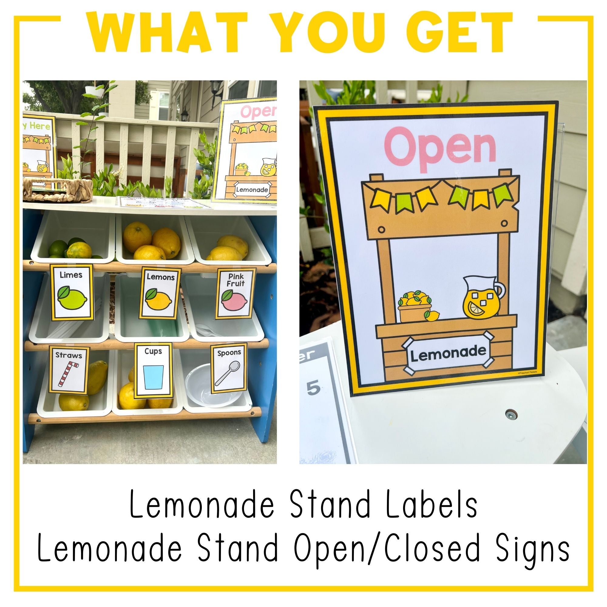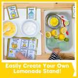 A printable Lemonade Stand Dramatic Play Center that is a perfect summer activity for preschool-aged and children! This interactive lemonade stand encourages role-playing, social skills, and basic math concepts like counting money and making change.