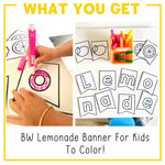 - "Lemonade Stand" Banner (BW only for kids to color)