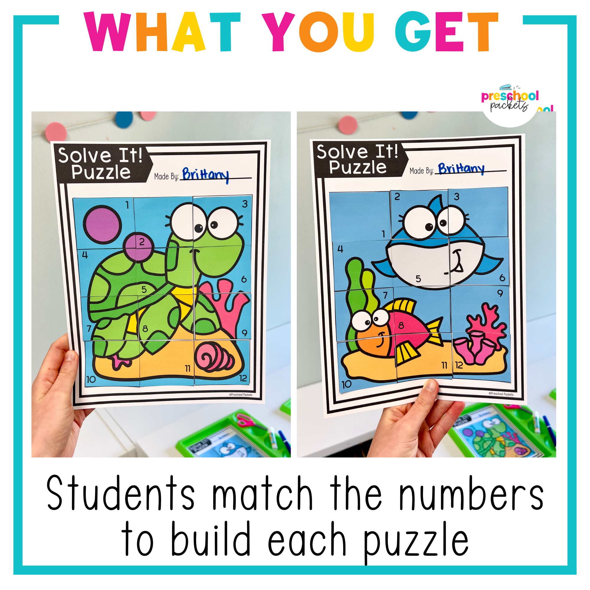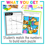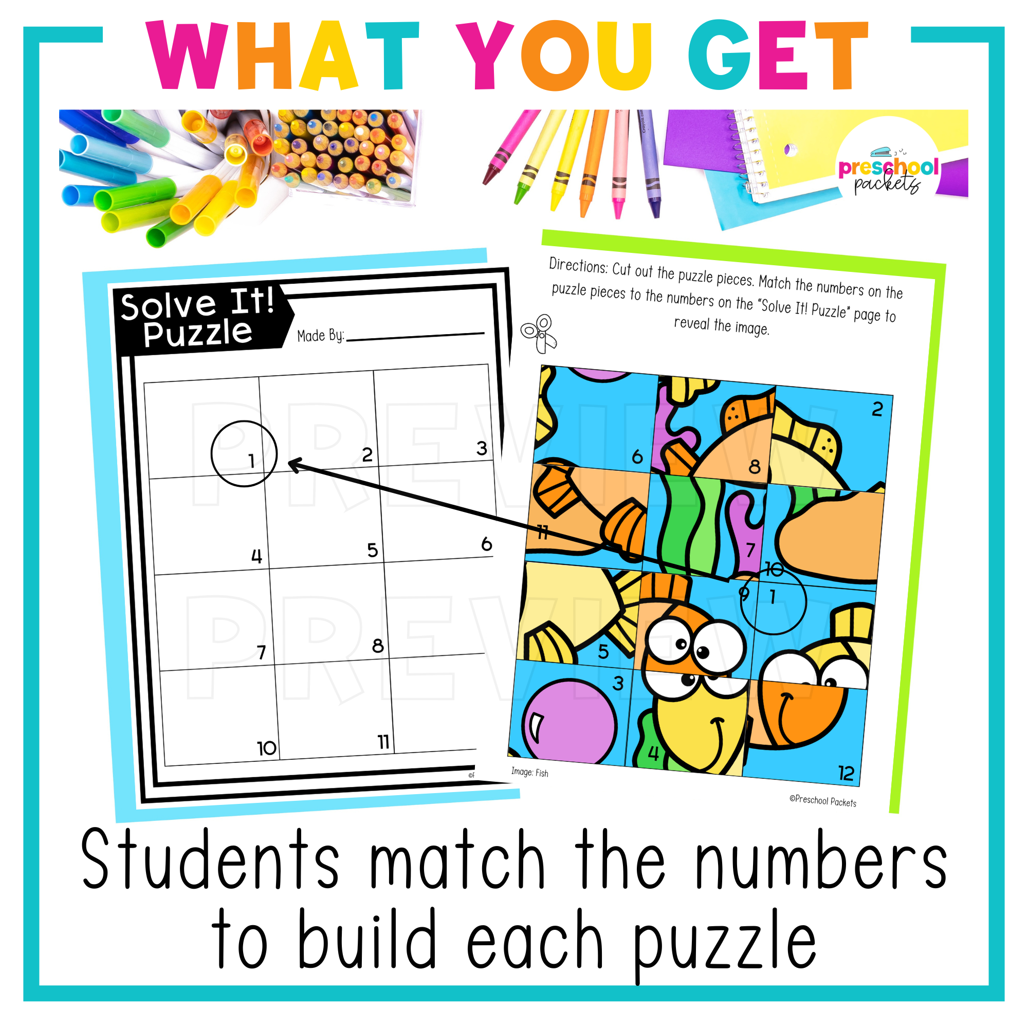 Students can work on fine motor skills by cutting and pasting each puzzle piece, or you can laminate them for repeated use! Plus work on math skills by matching each number to build the puzzle.