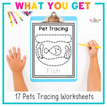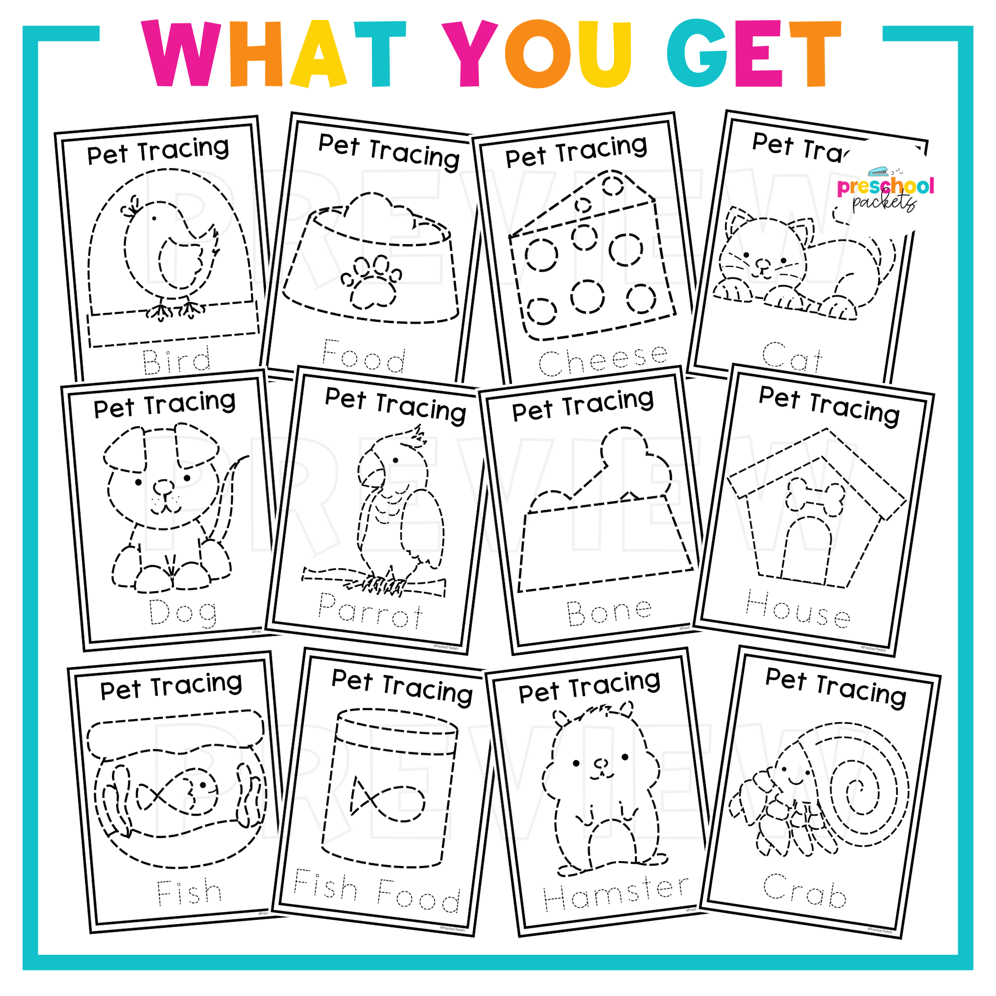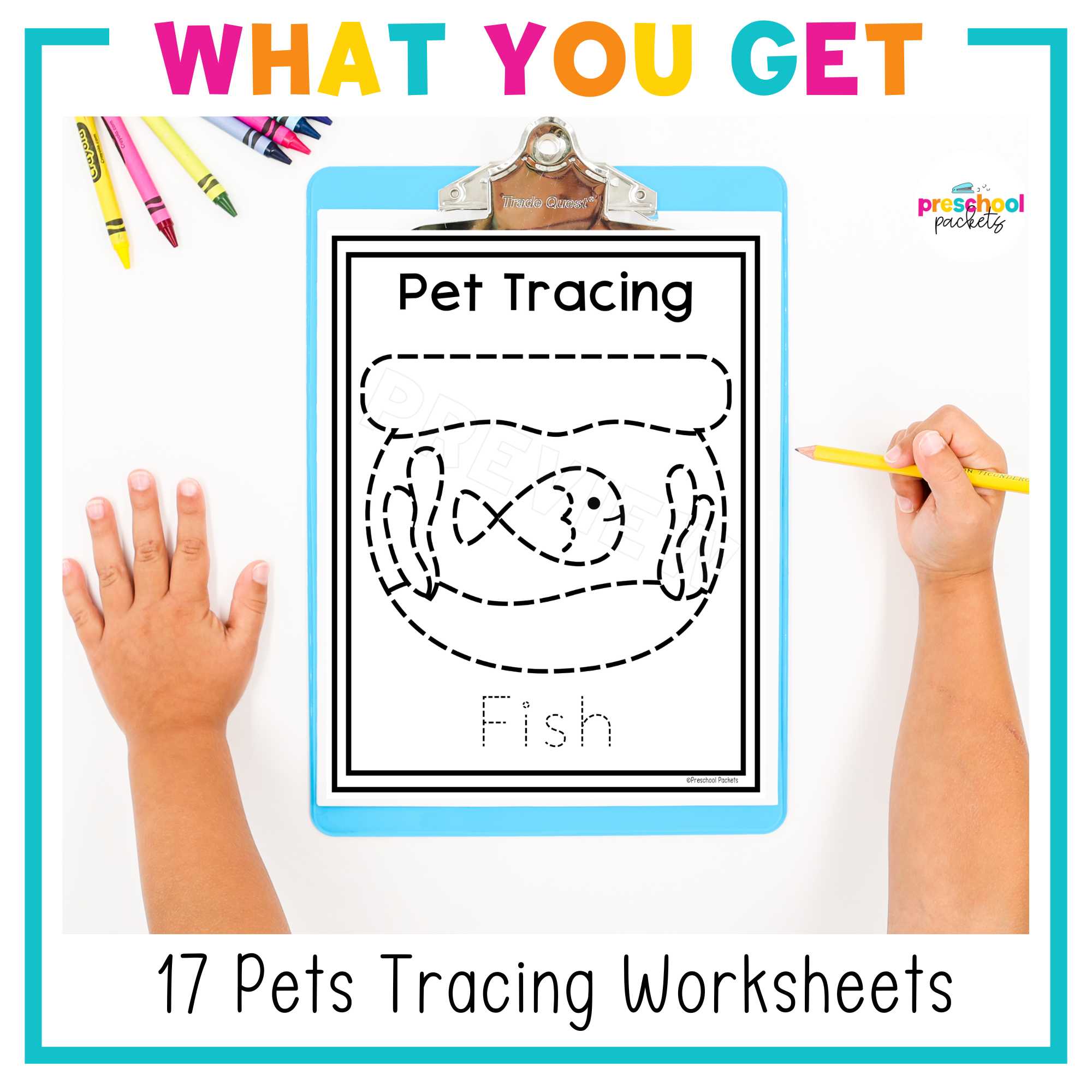 Pets Tracing Worksheets For Preschool, PreK and Kindergarten