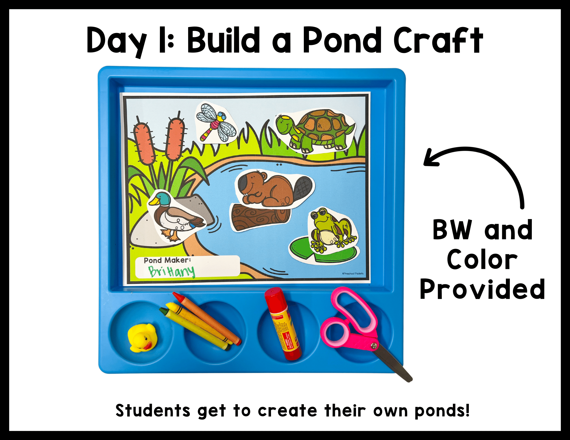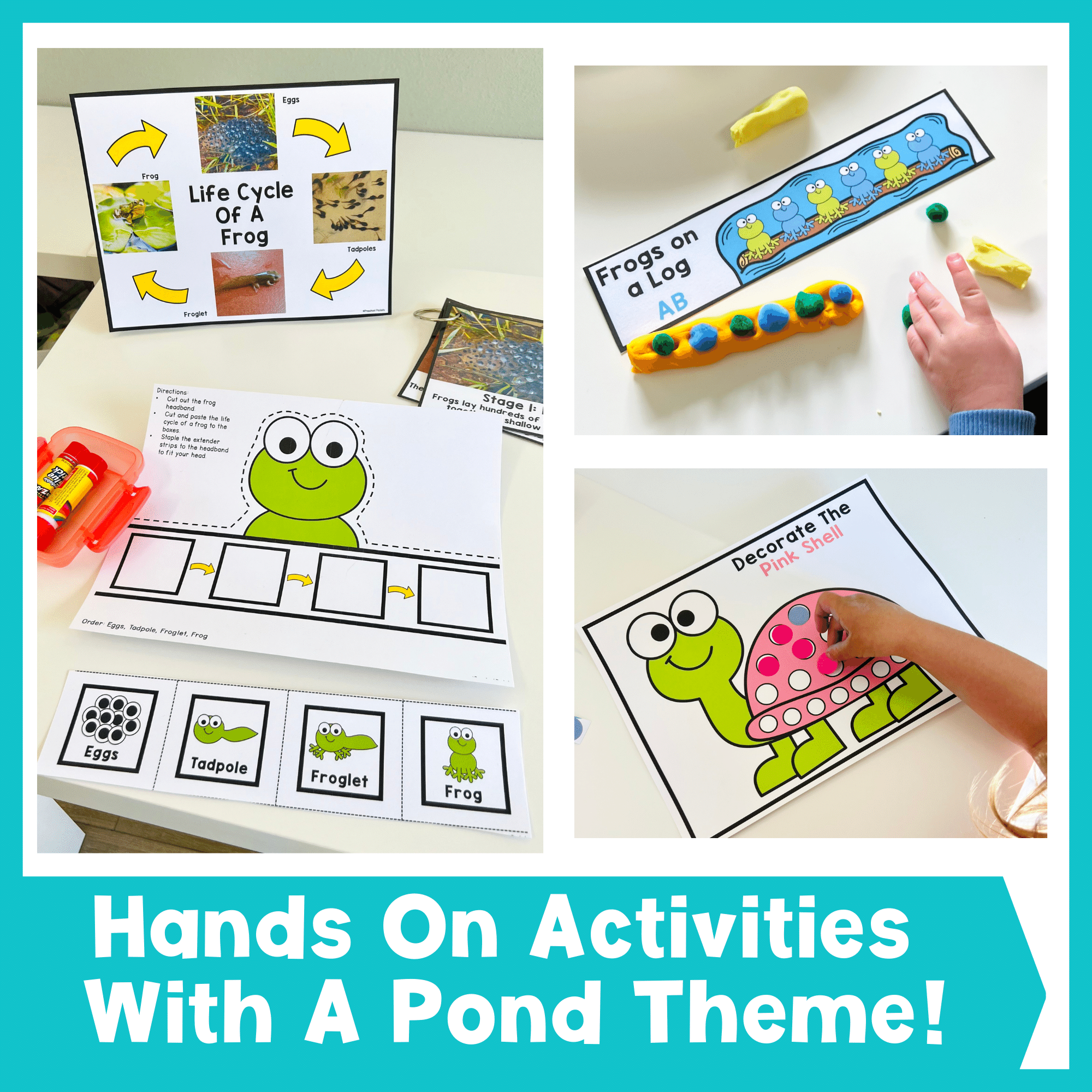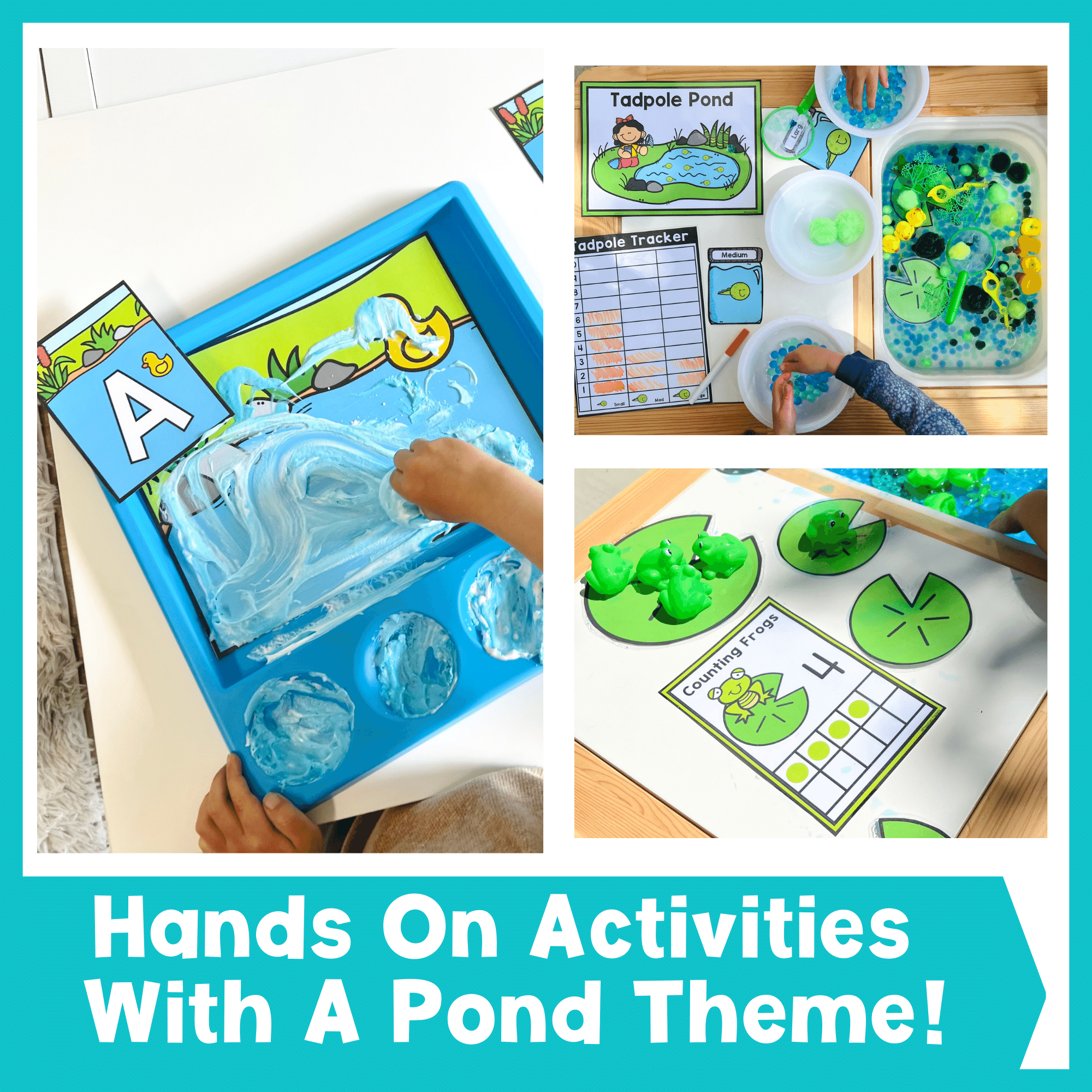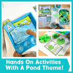 Pond Themed printable activity pack for your preschool classroom! This On the Pond unit includes 5 days of hands-on, engaging activities that is perfect for Spring! This set is packed with sensory bins, crafts, fine motor centers and so much more!