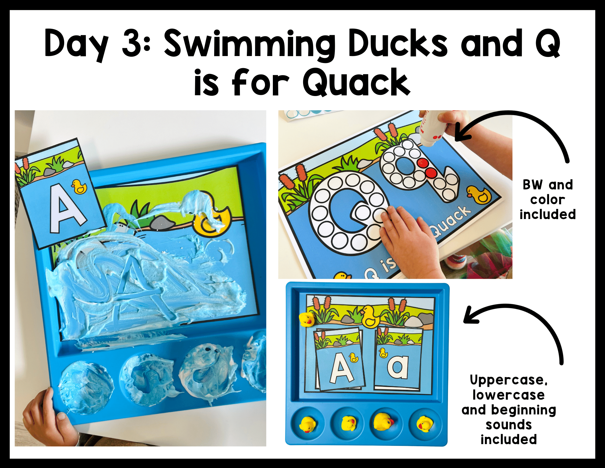 - Swimming Ducks Alphabet: Uppercase, lowercase, and beginning sound cards included (Focus: Literacy)