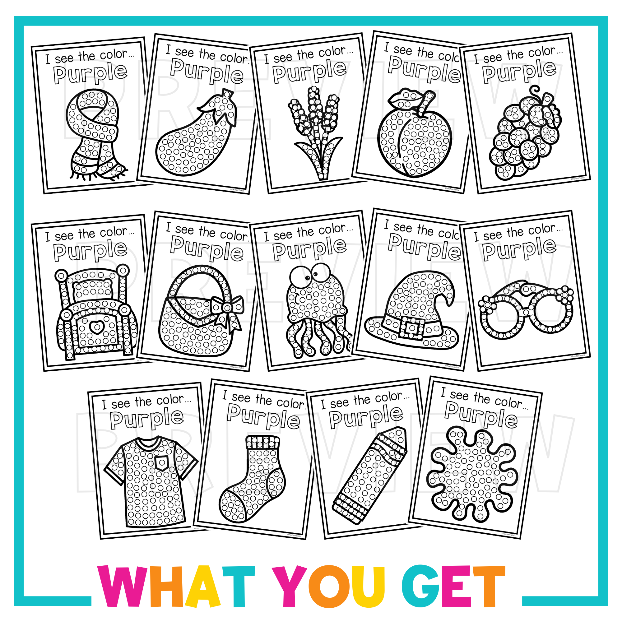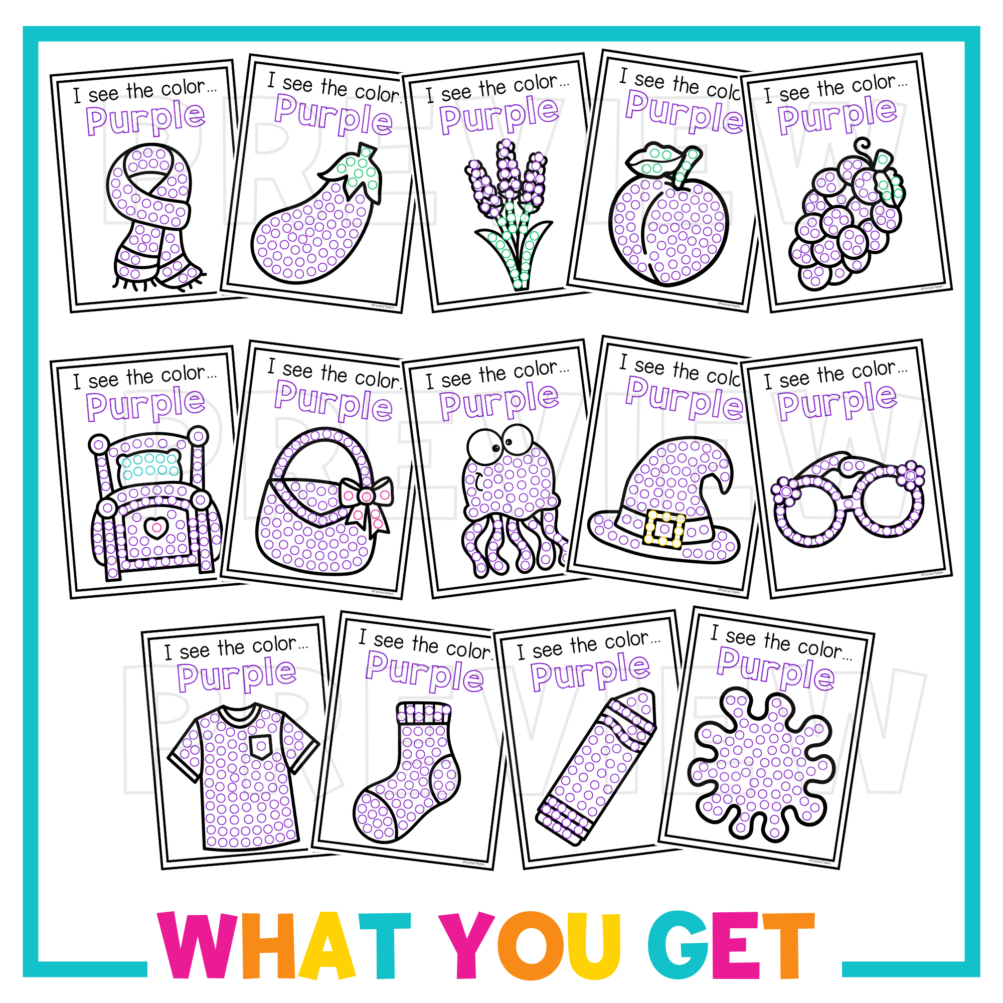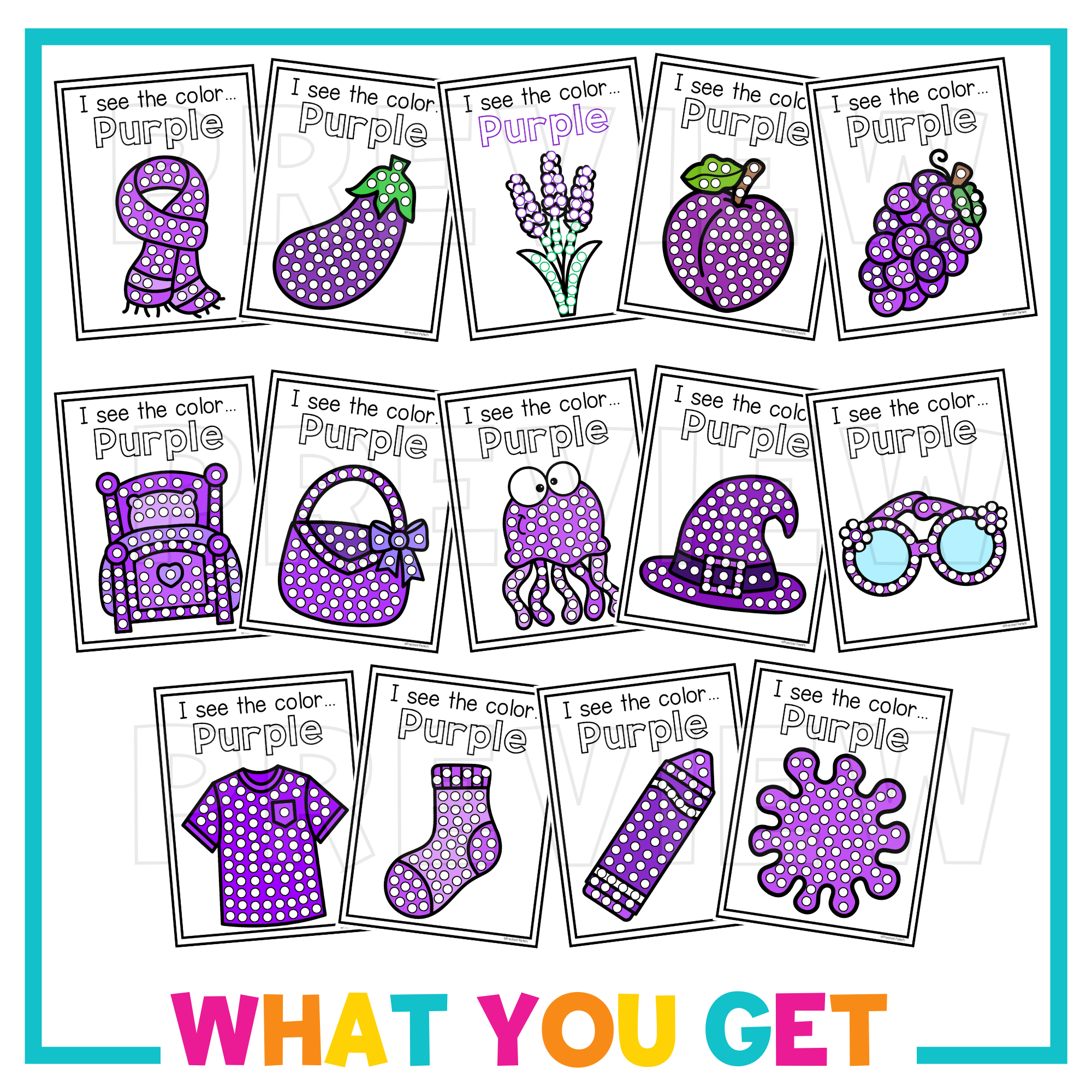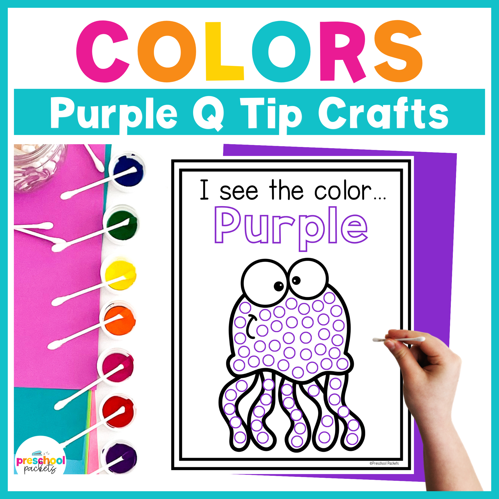 Preschool Color Q Tip Craft Pages – a simple and effective tool for teaching color recognition! This set is all about the color purple, with images your students will love. With just a Q Tip and some paint, children can engage in an easy and creative fine motor activity!