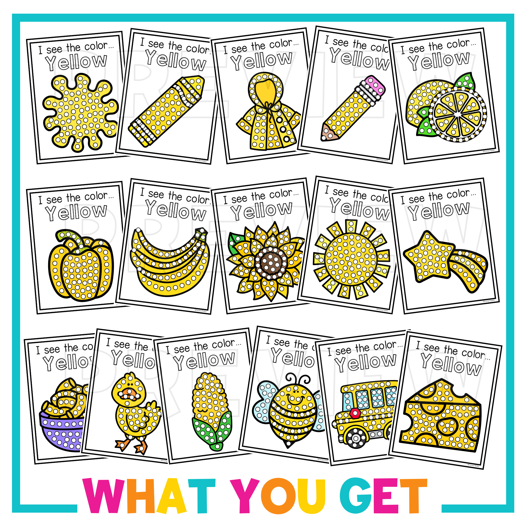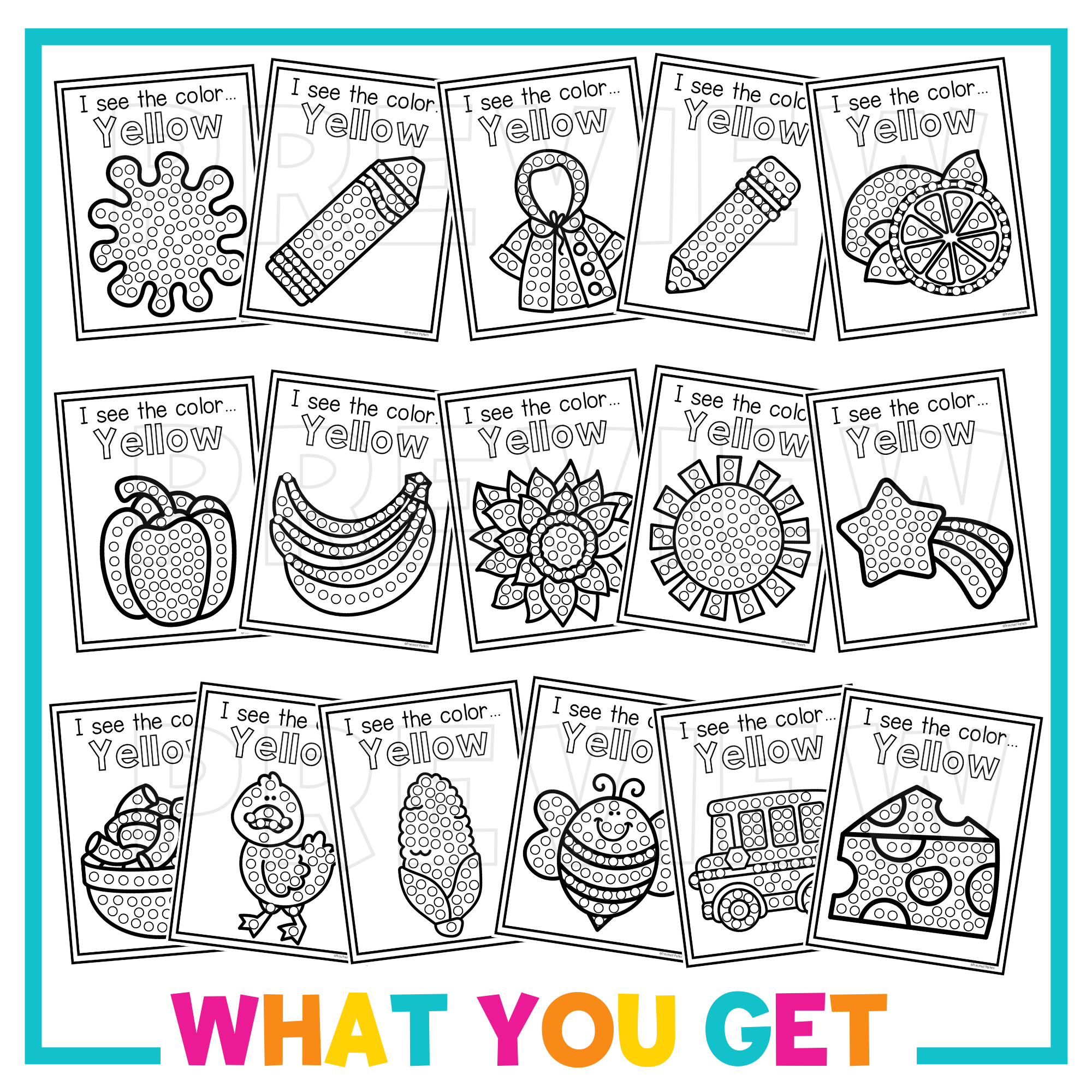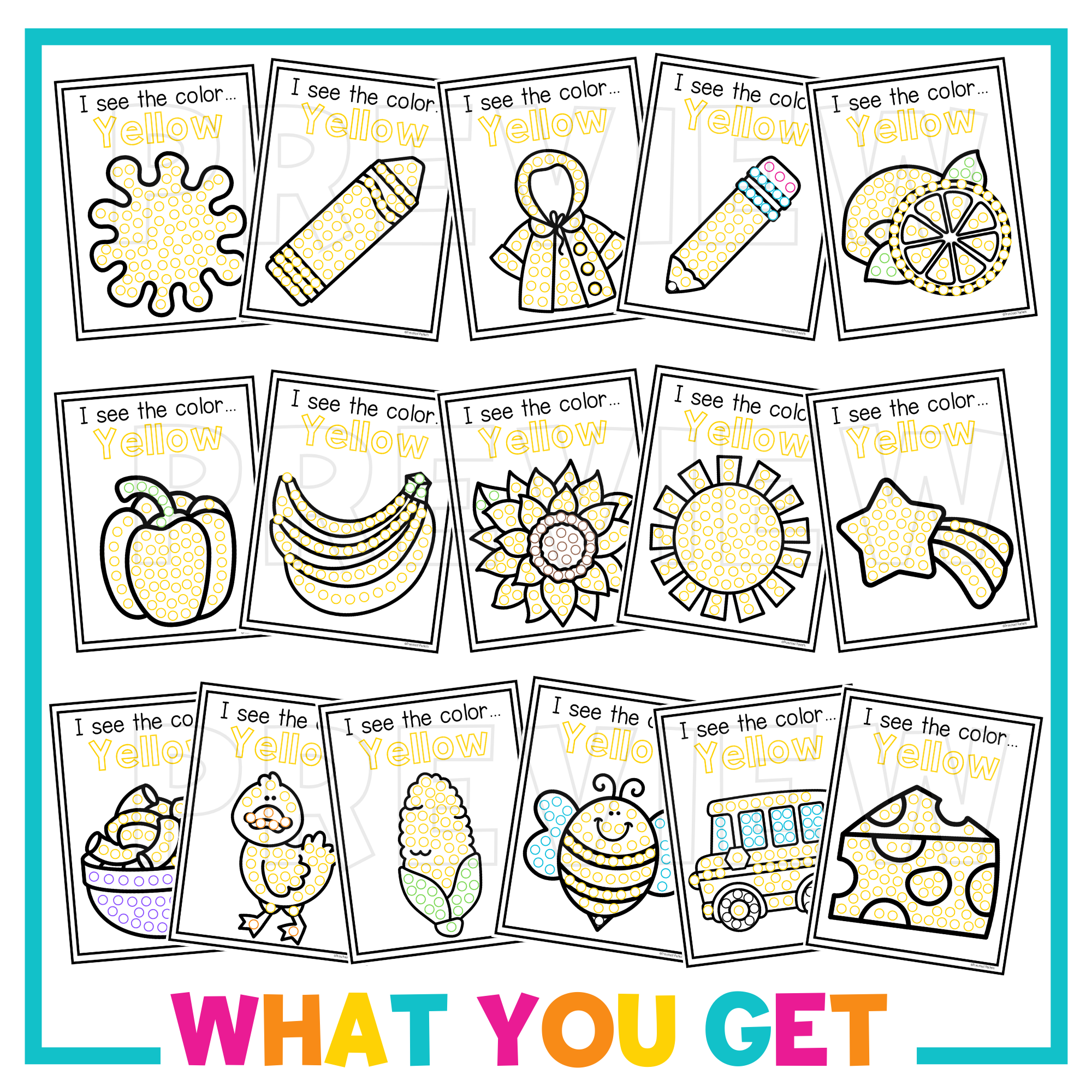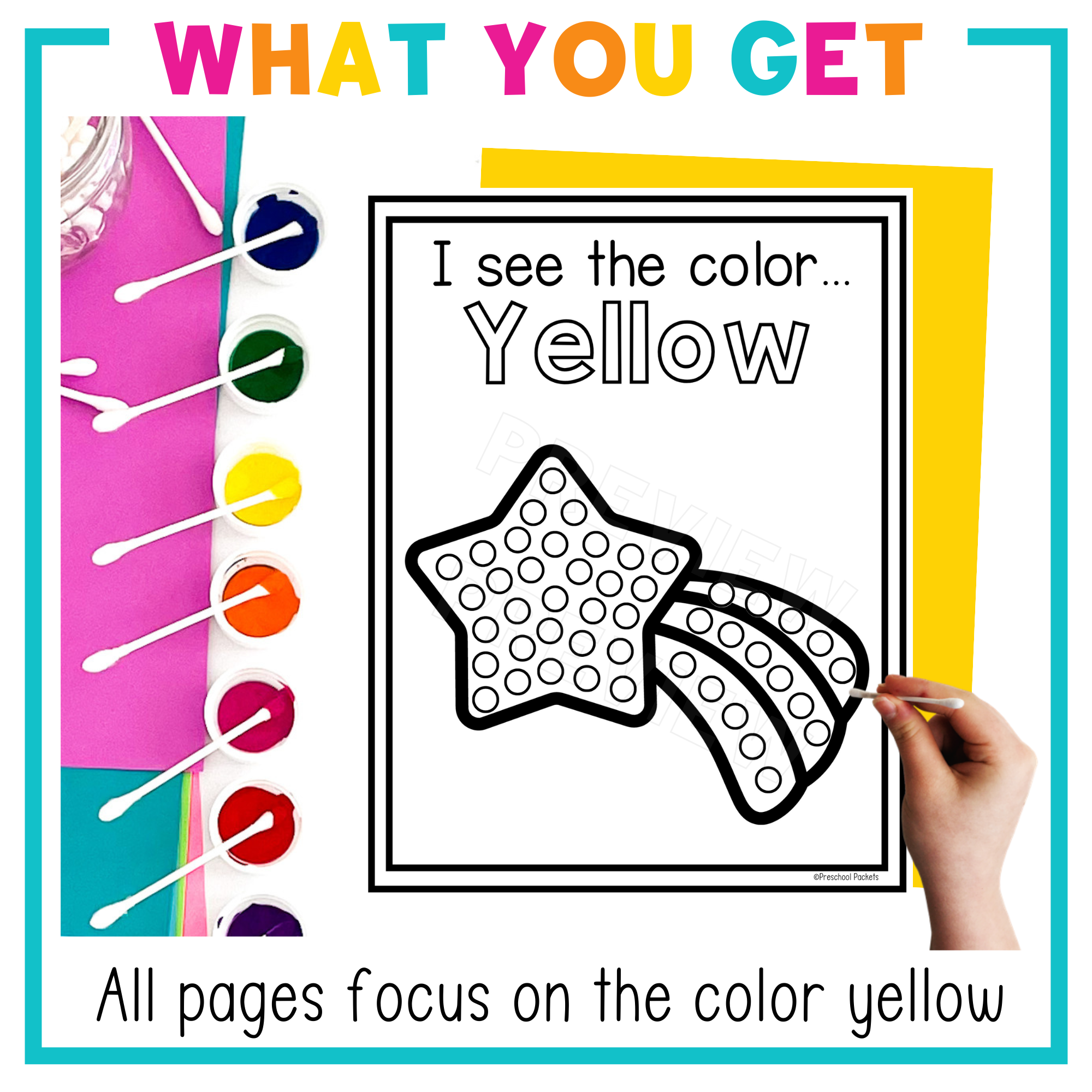 Preschool Color Q Tip Craft Pages – the simplest and most effective tool for teaching color recognition! This set is all about the color yellow, with images your students will love. With just a Q Tip and some paint, children can engage in an easy and creative fine motor activity!