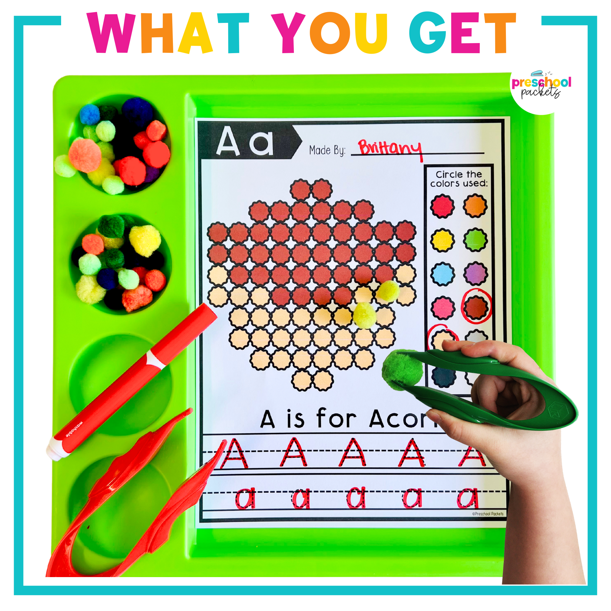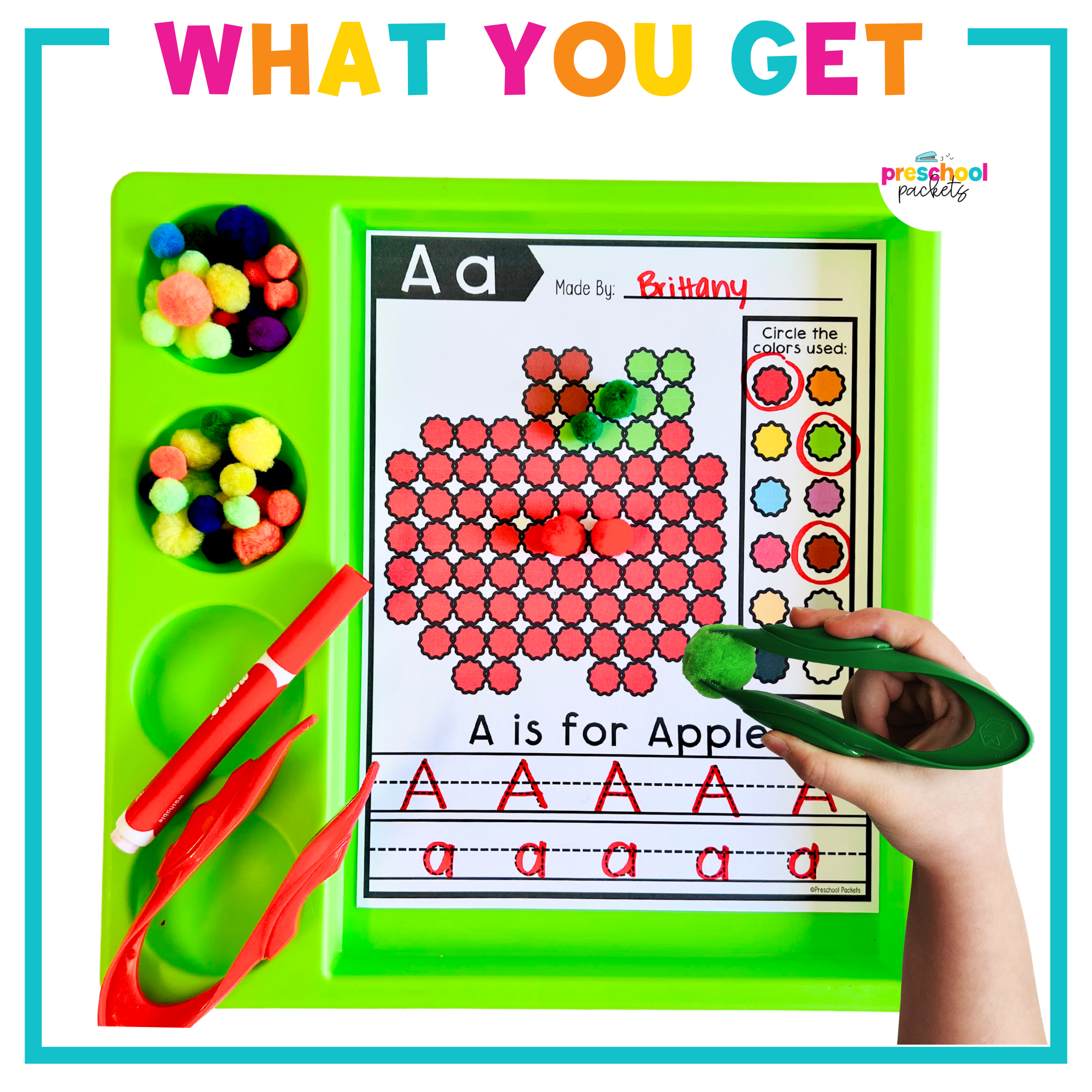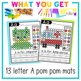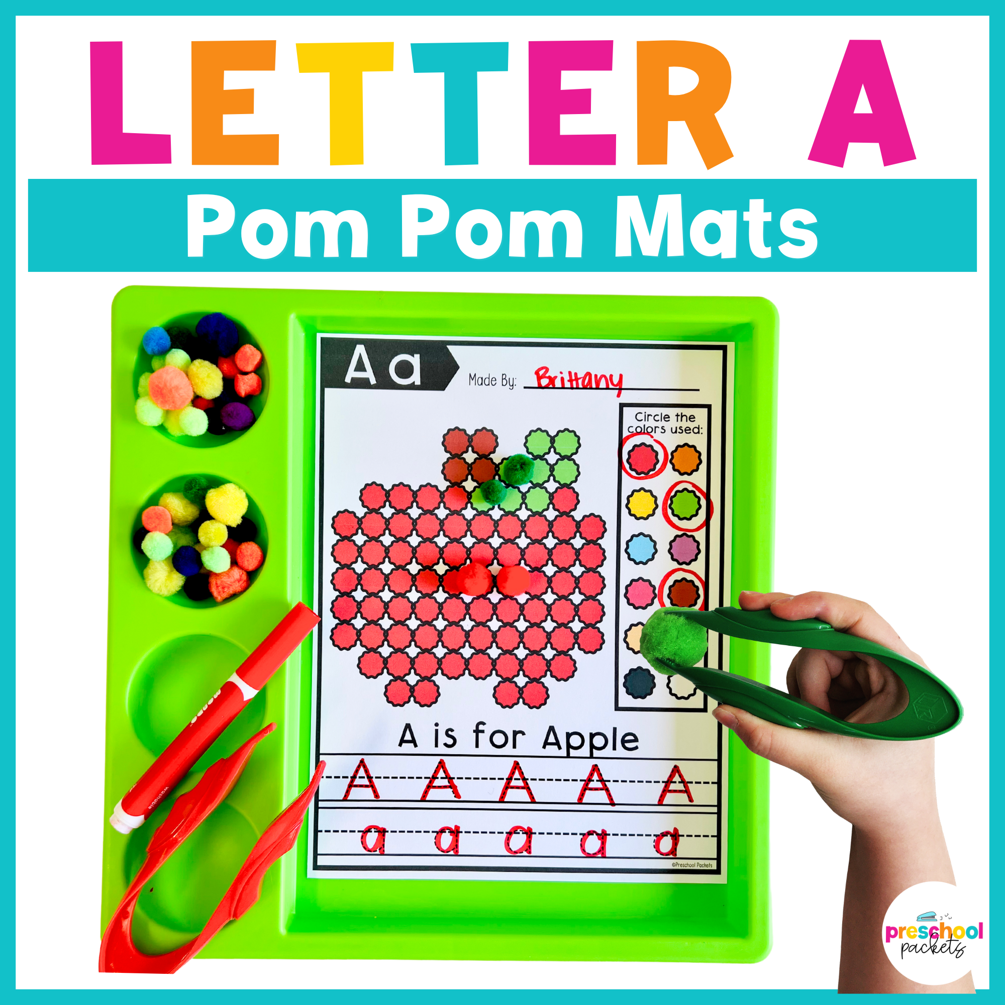 Preschool Pom Pom Fine Motor Mats – Letter A Activity Pack