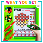 Looking for a hands-on, low-prep activity to help your preschoolers master the alphabet? These Letter A Pom Pom Fine Motor Mats are a fun and engaging way to build fine motor skills while reinforcing letter recognition, letter formation, and beginning sounds.