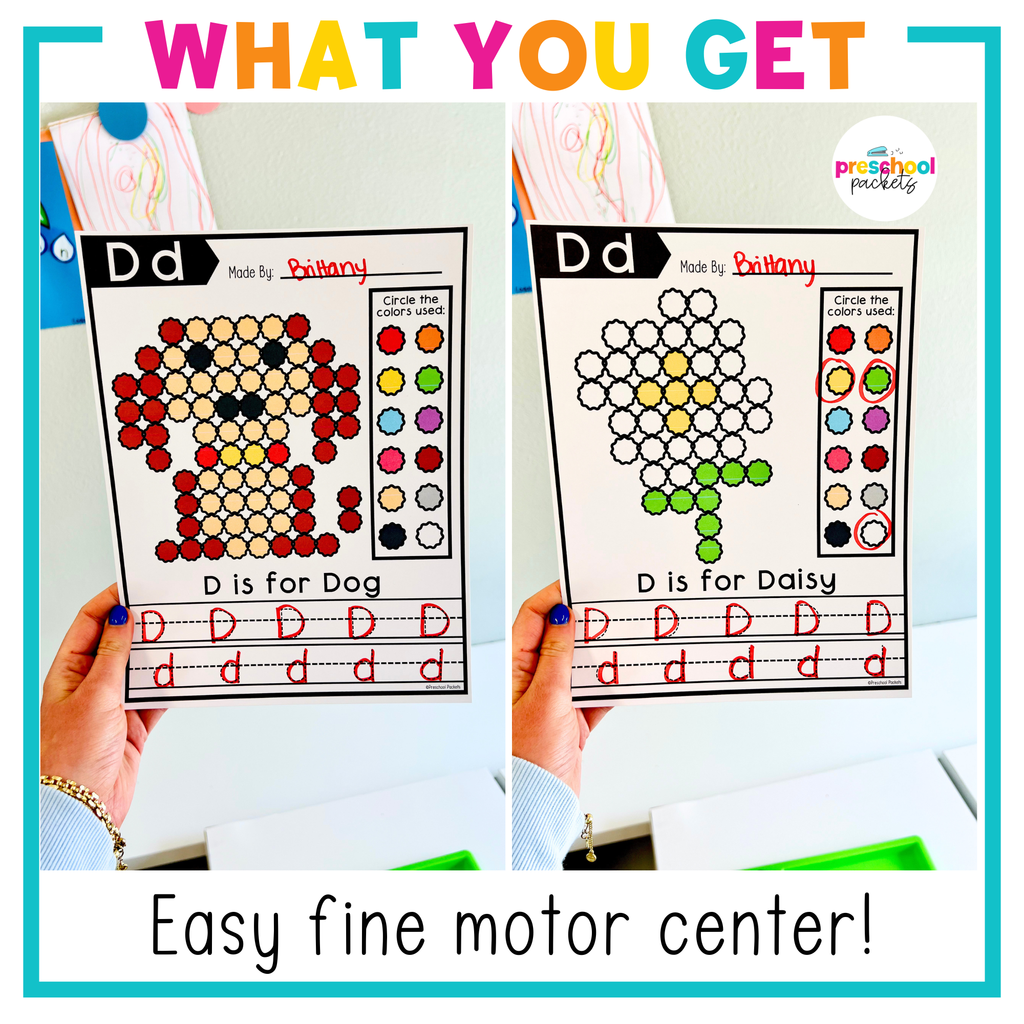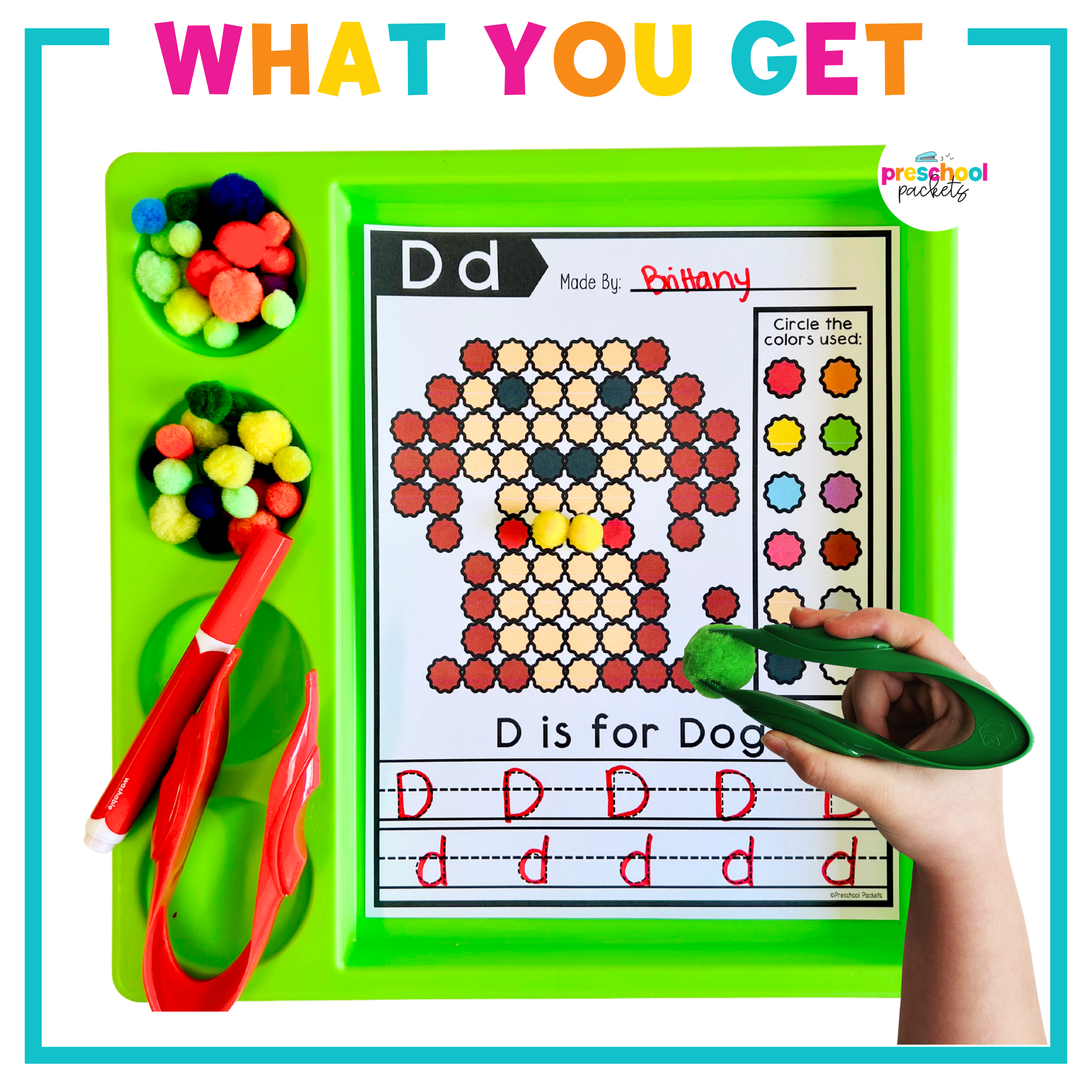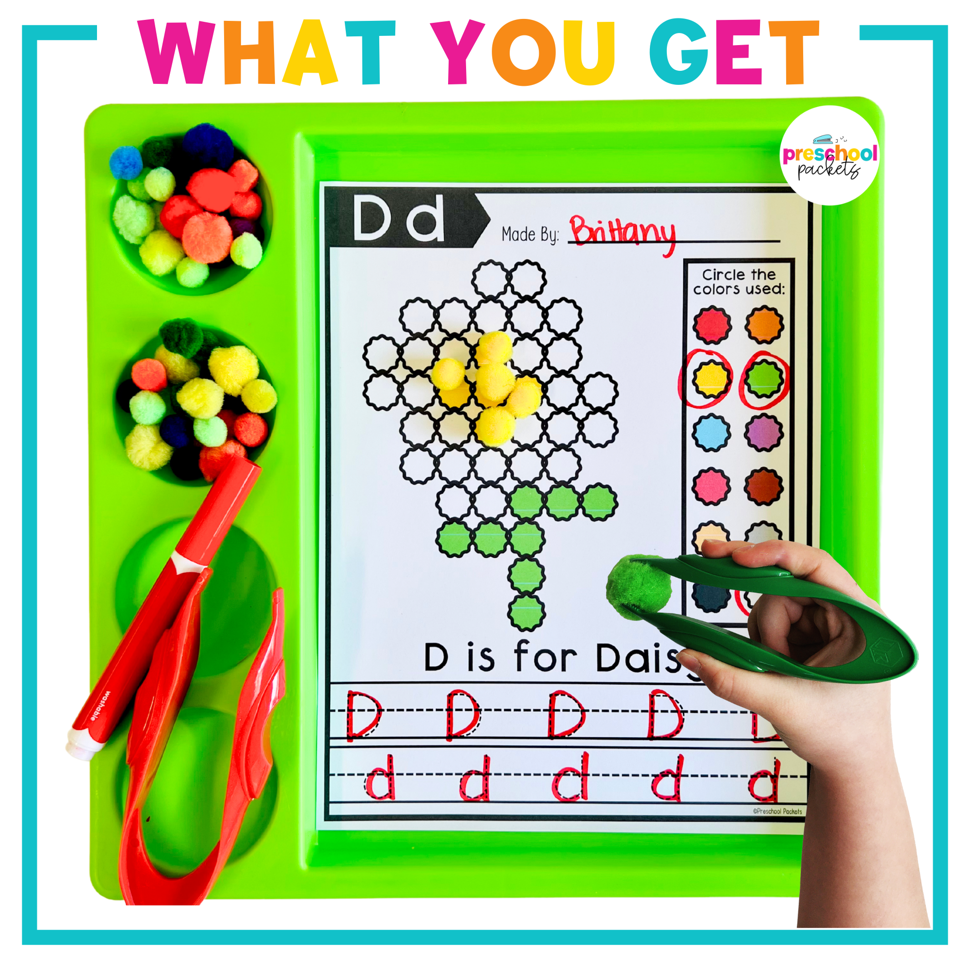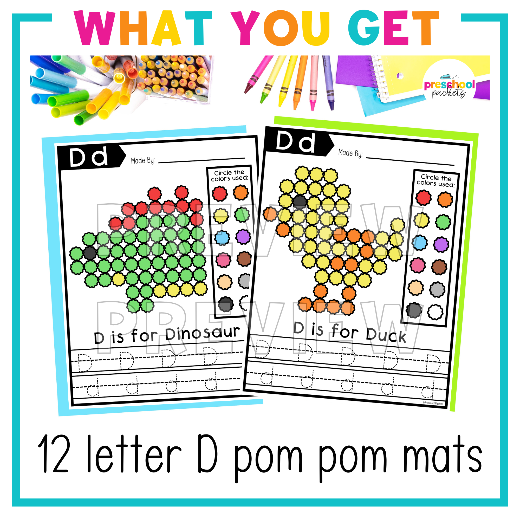 Preschool Pom Pom Fine Motor Mats – Letter D Activity Pack