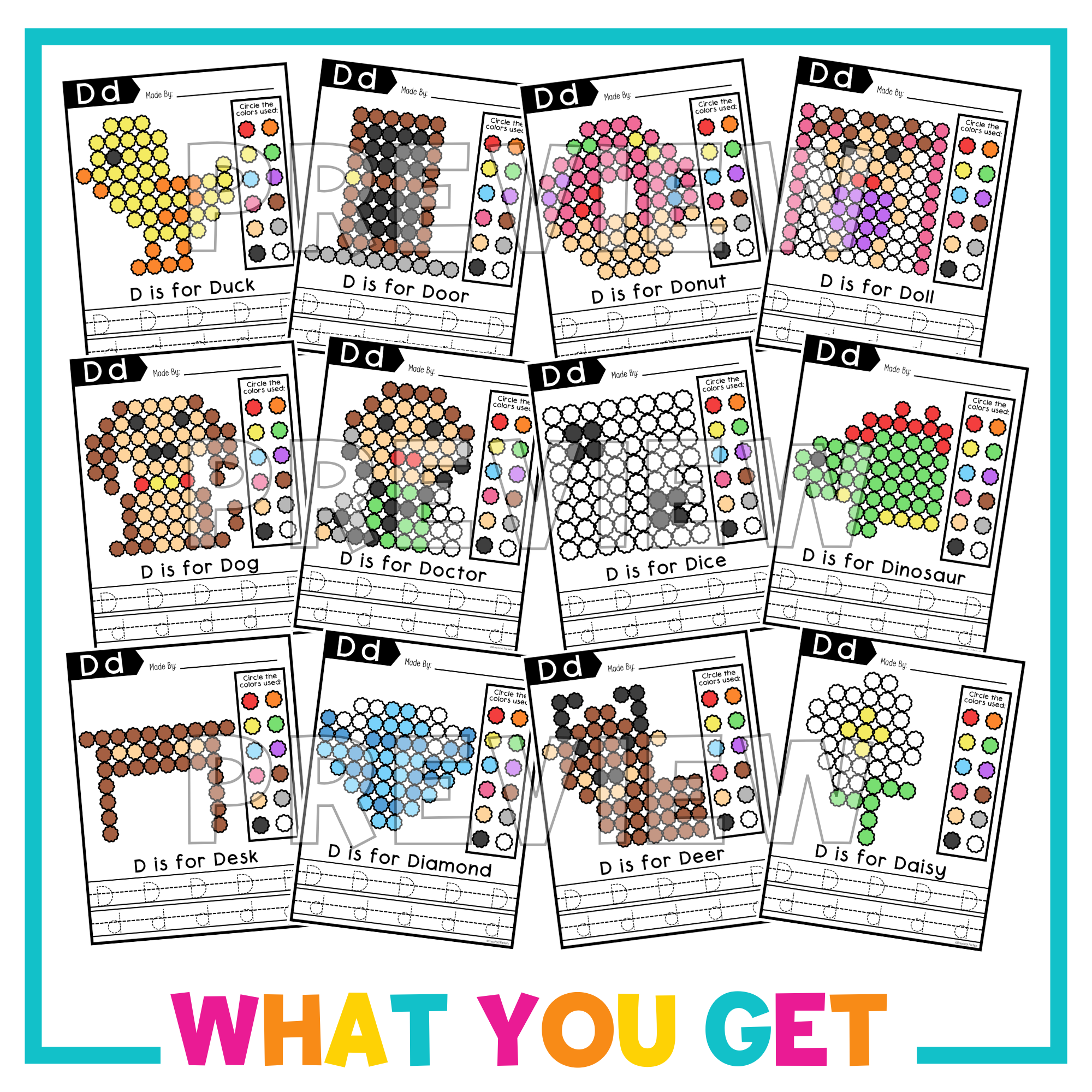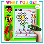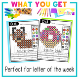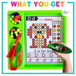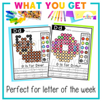 This set includes 12 different Letter D-themed pom pom mats, perfect for Letter of the Week activities, literacy centers, or morning work.