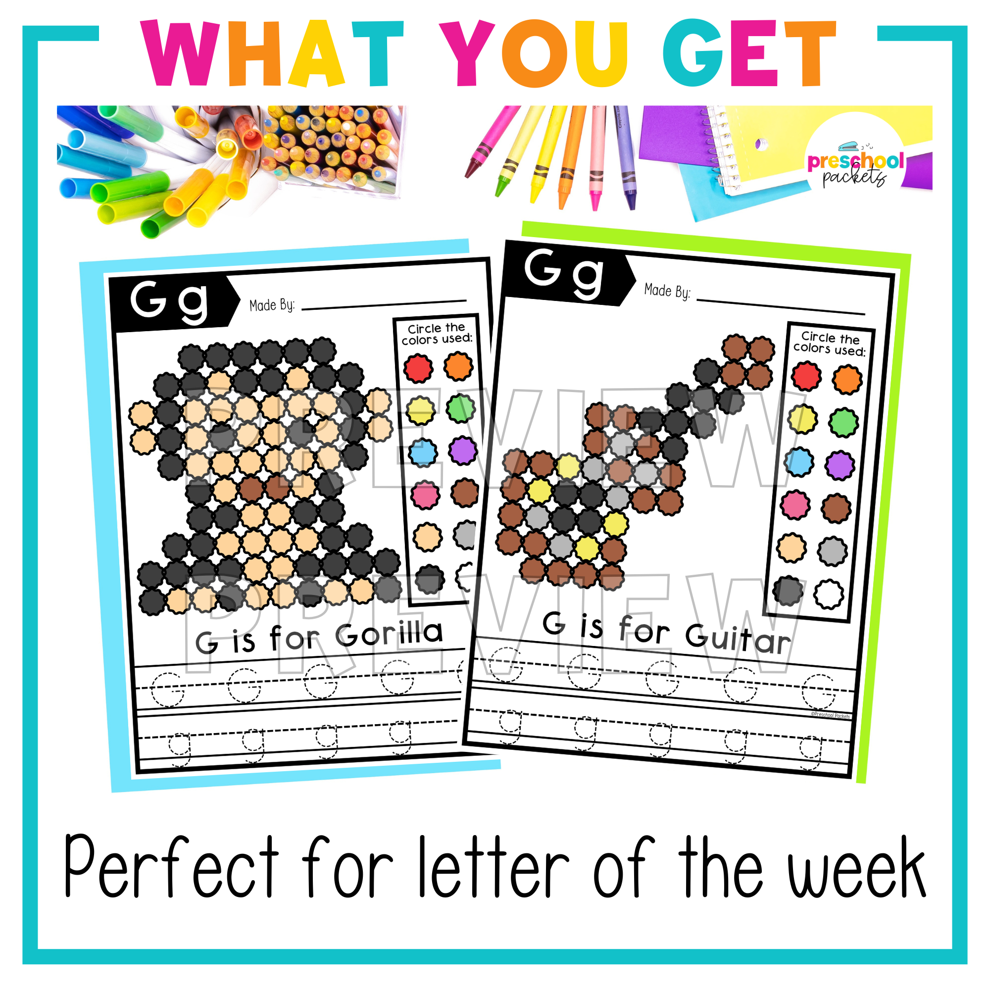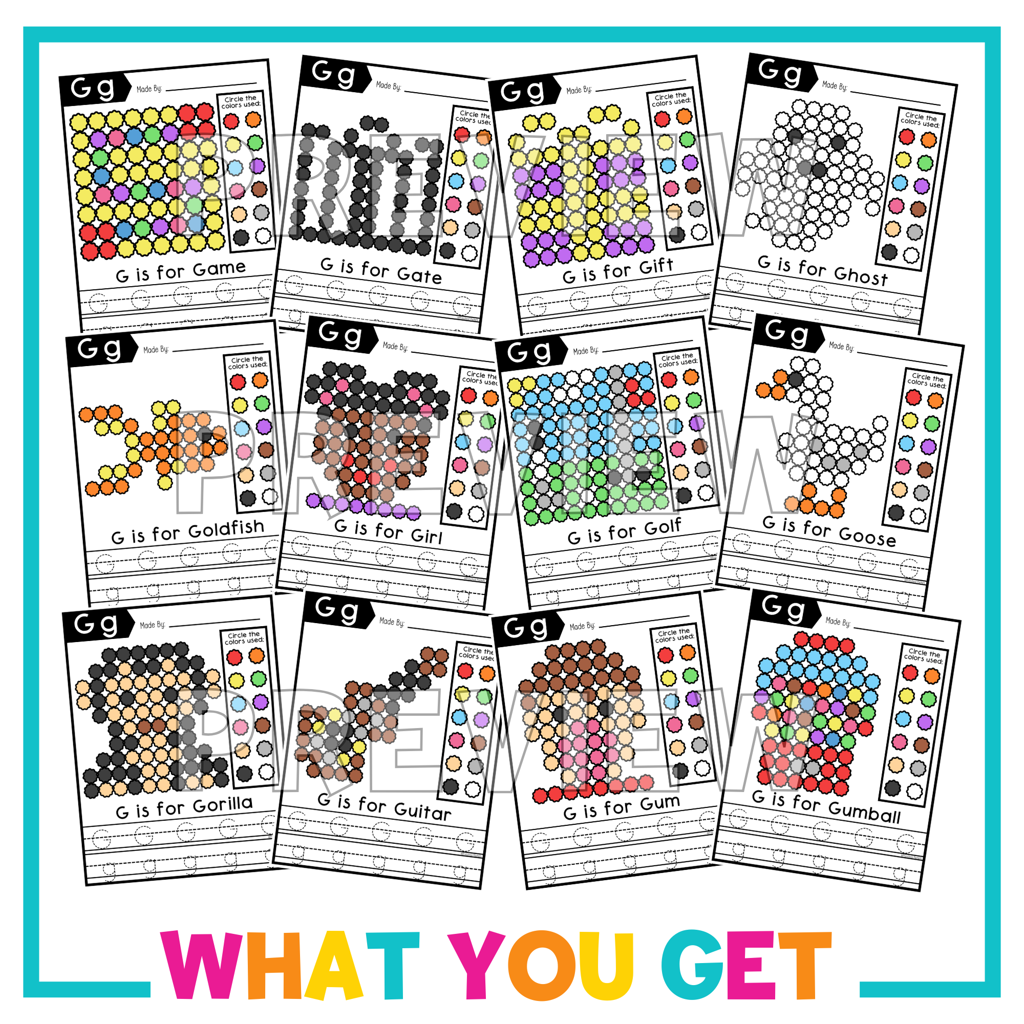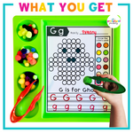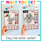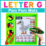 This set includes 12 different Letter G-themed pom pom mats, perfect for Letter of the Week activities, literacy centers, or morning work.