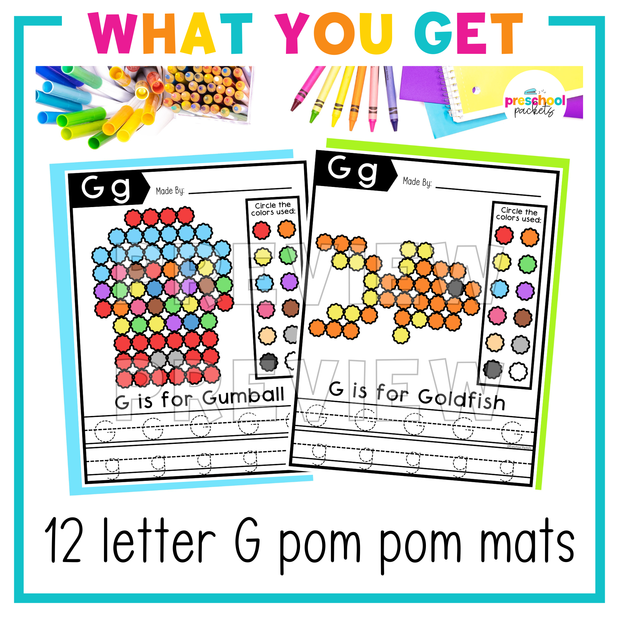 Preschool Pom Pom Fine Motor Mats – Letter G Activity Pack
