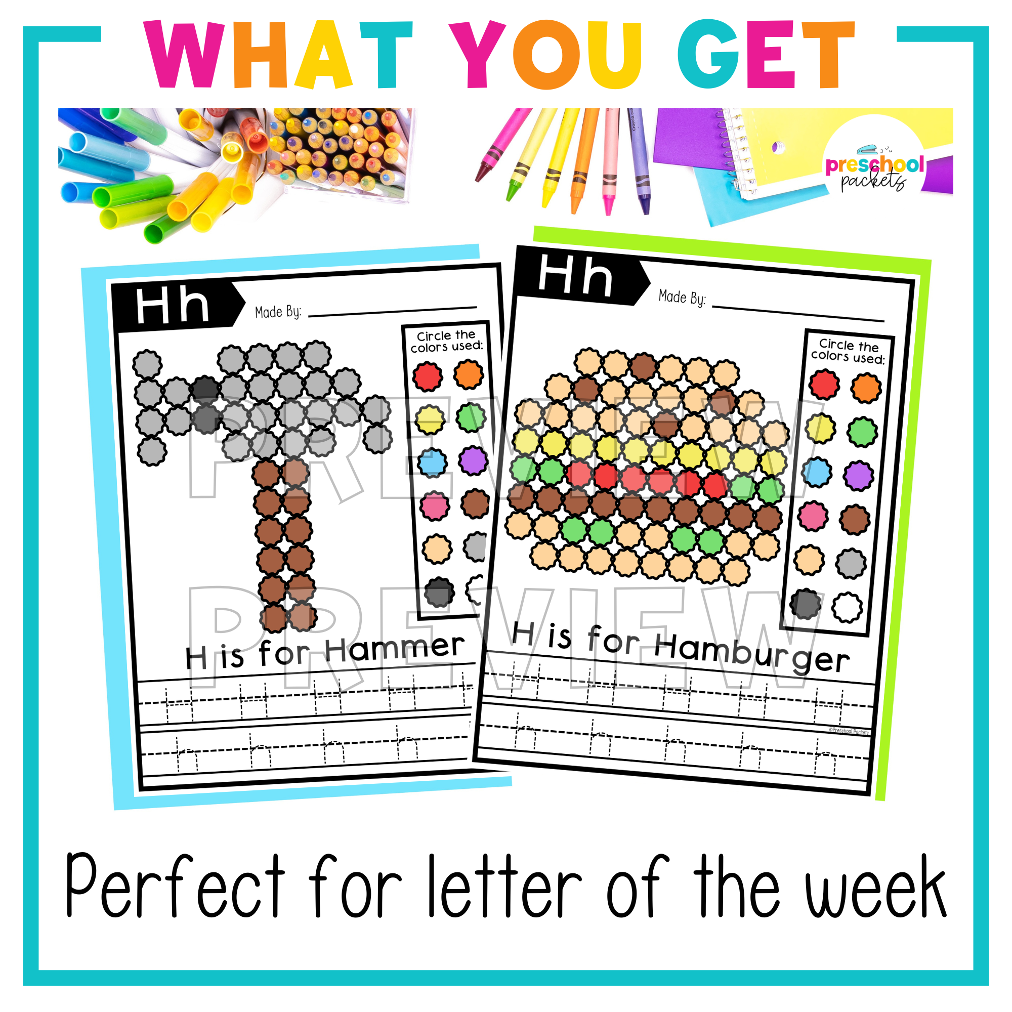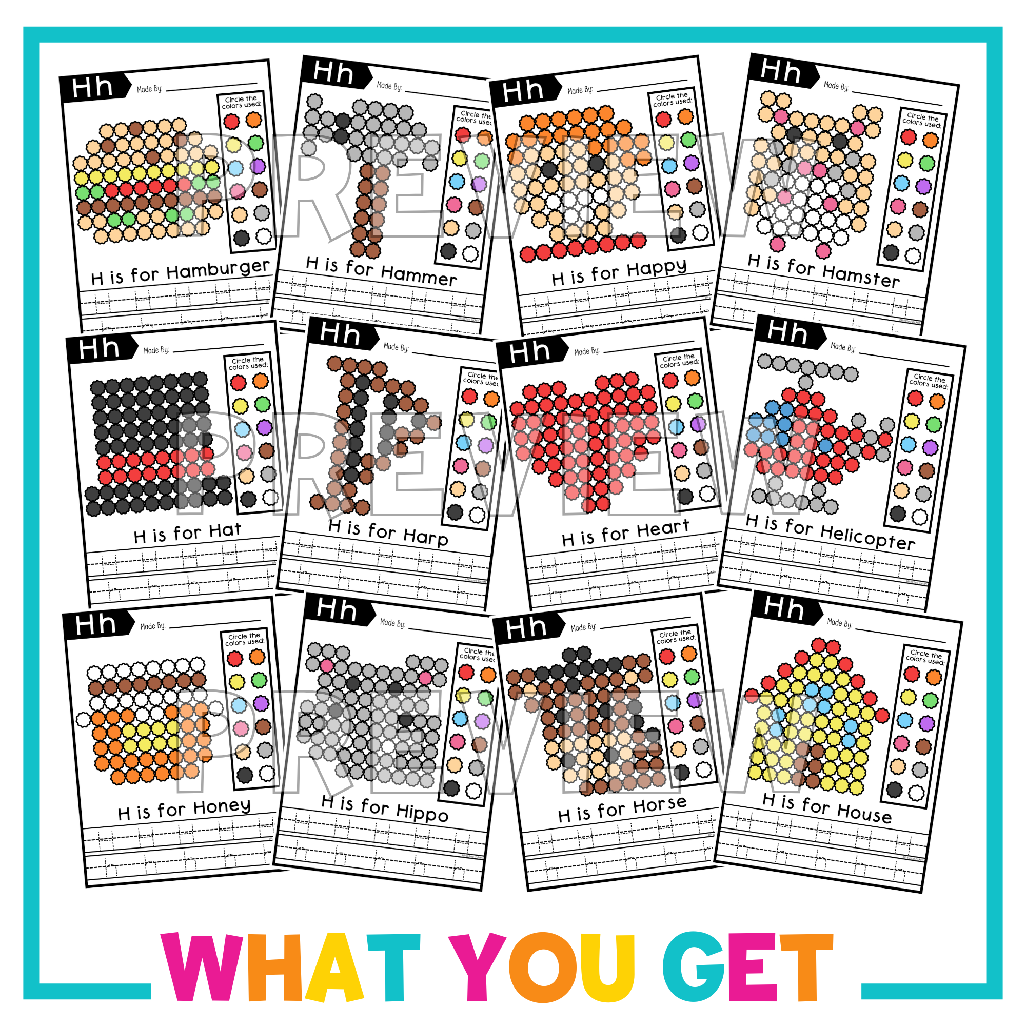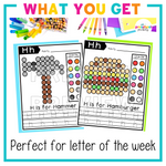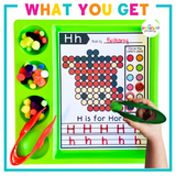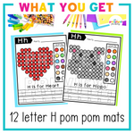 This set includes 12 different Letter H-themed pom pom mats, perfect for Letter of the Week activities, literacy centers, or morning work.