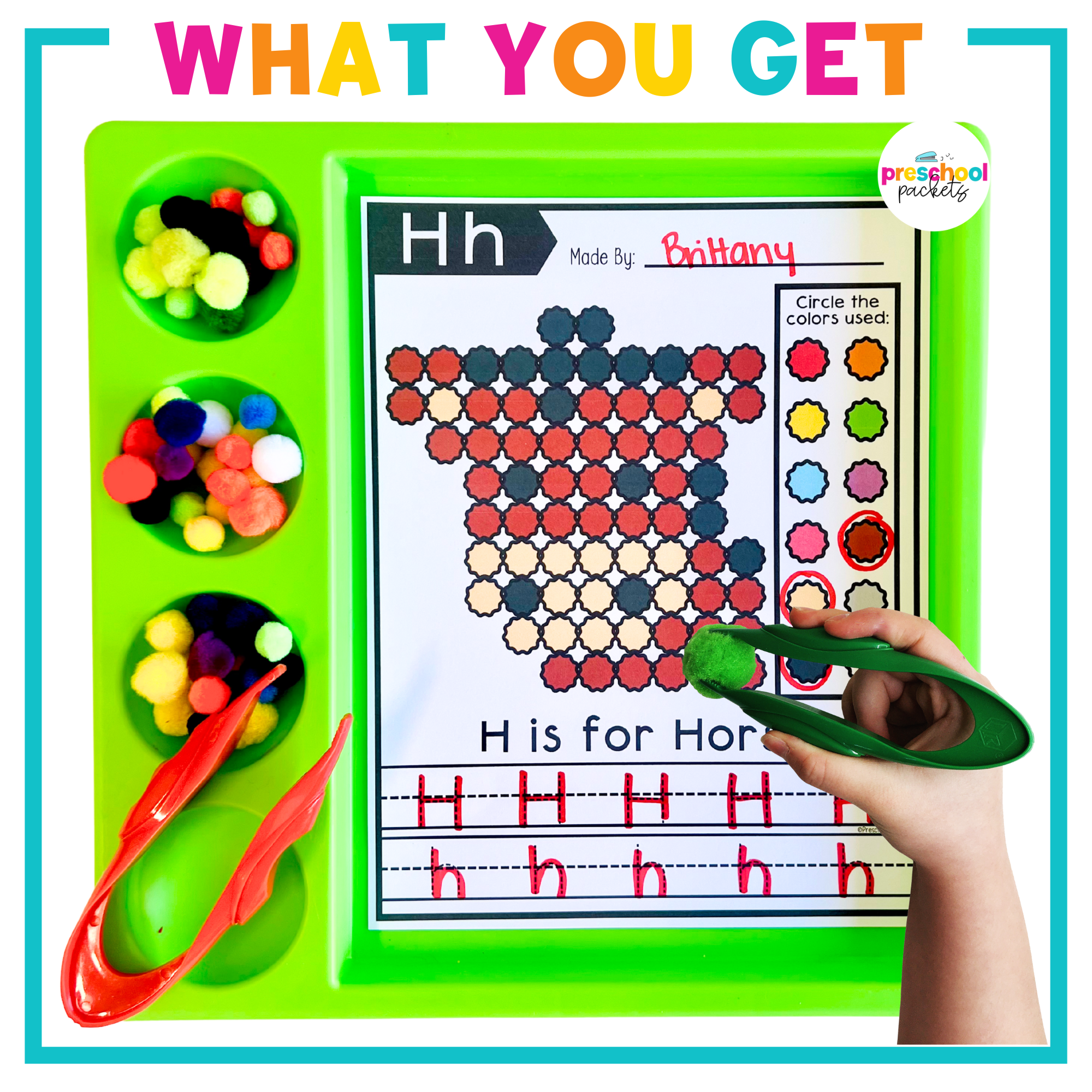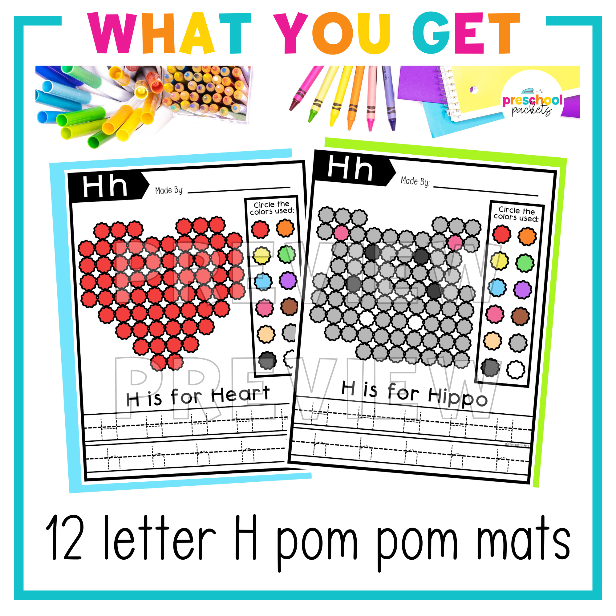 Preschool Pom Pom Fine Motor Mats – Letter H Activity Pack