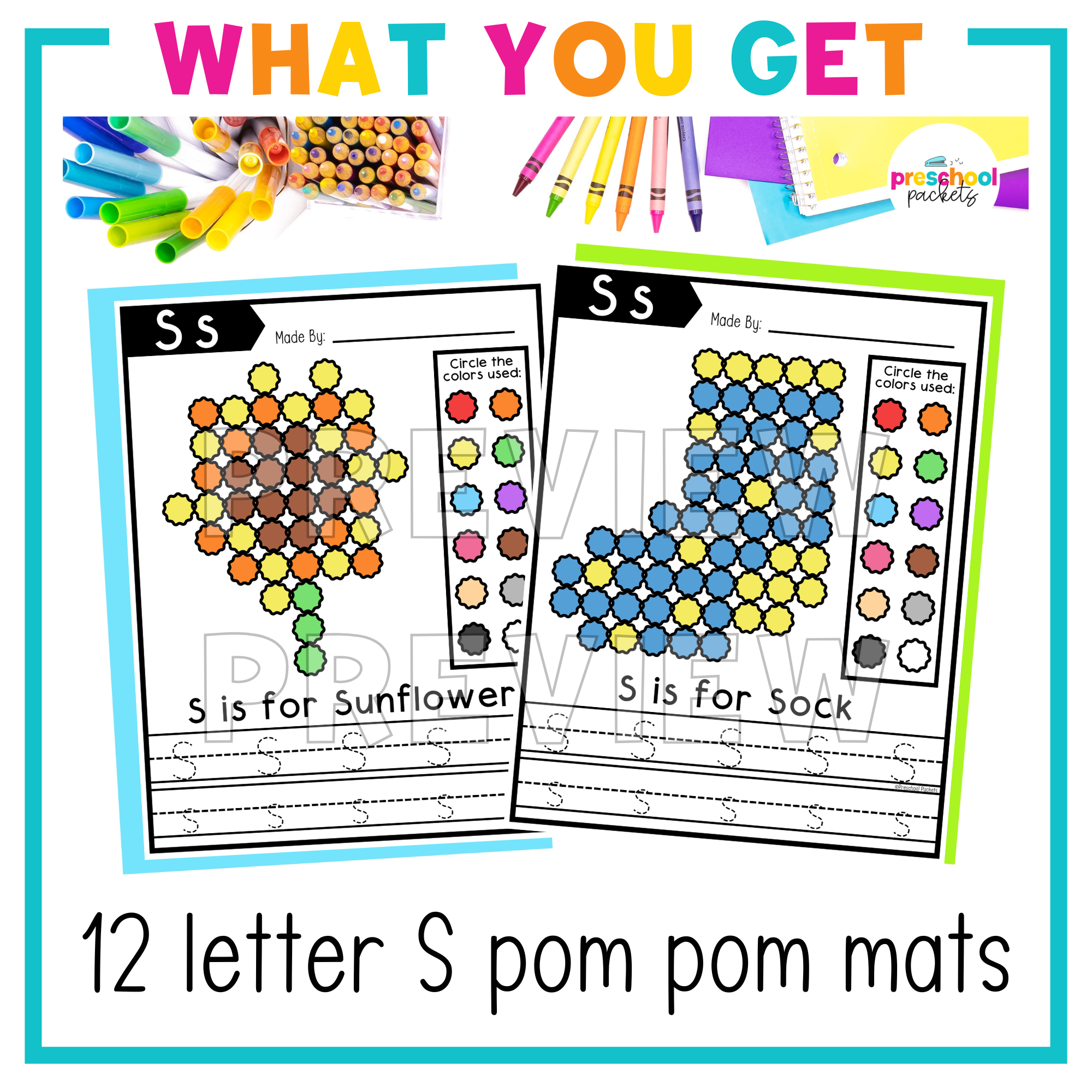 Preschool Pom Pom Fine Motor Mats – Letter S Activity Pack