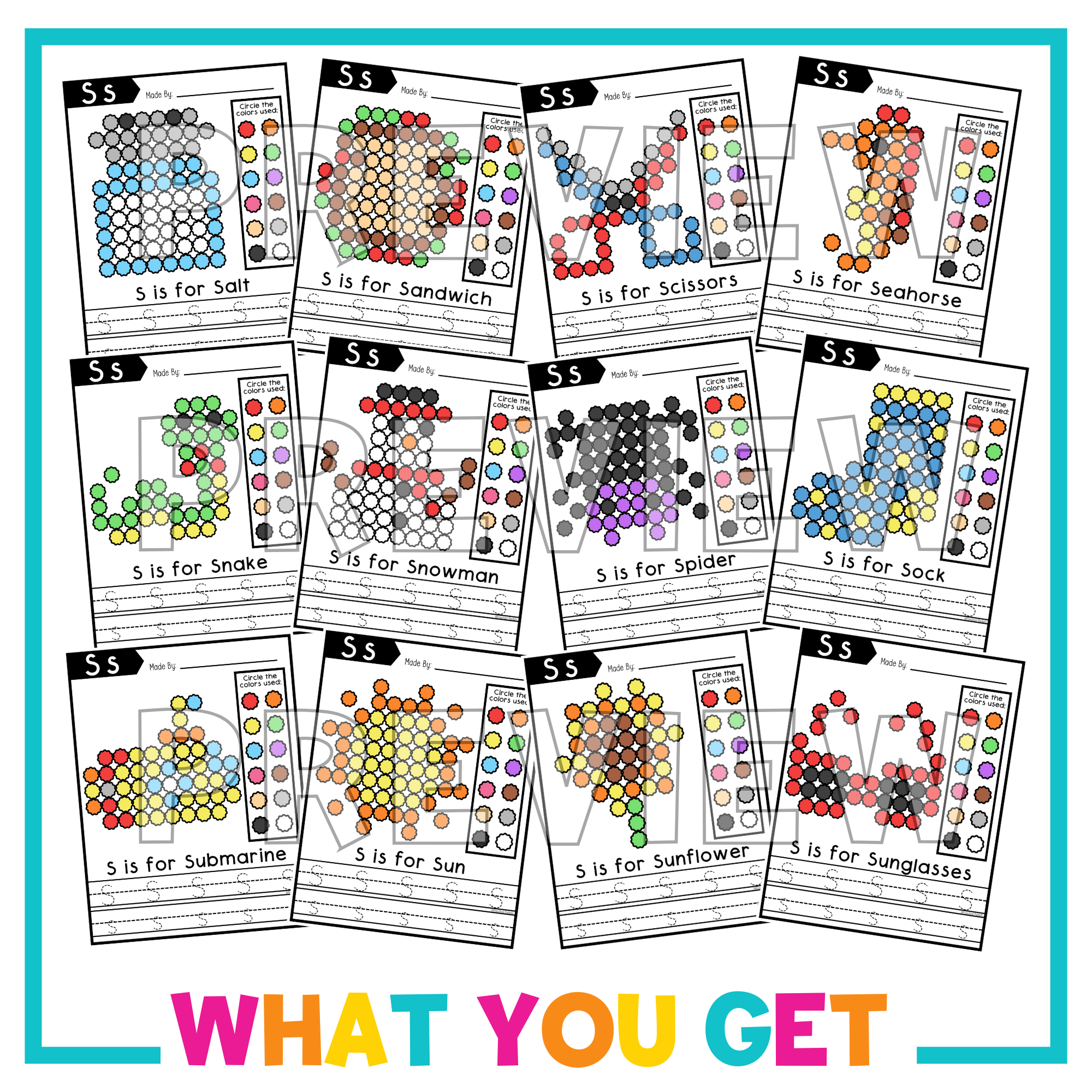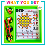 This set includes 12 different Letter S-themed pom pom mats, perfect for Letter of the Week activities, literacy centers, or morning work.