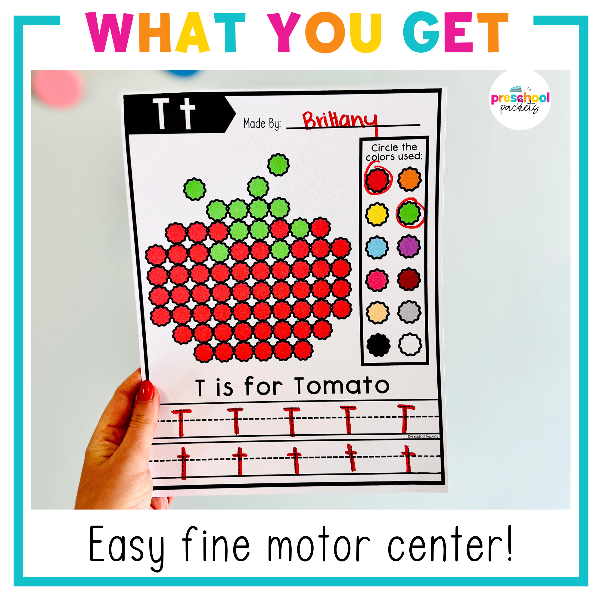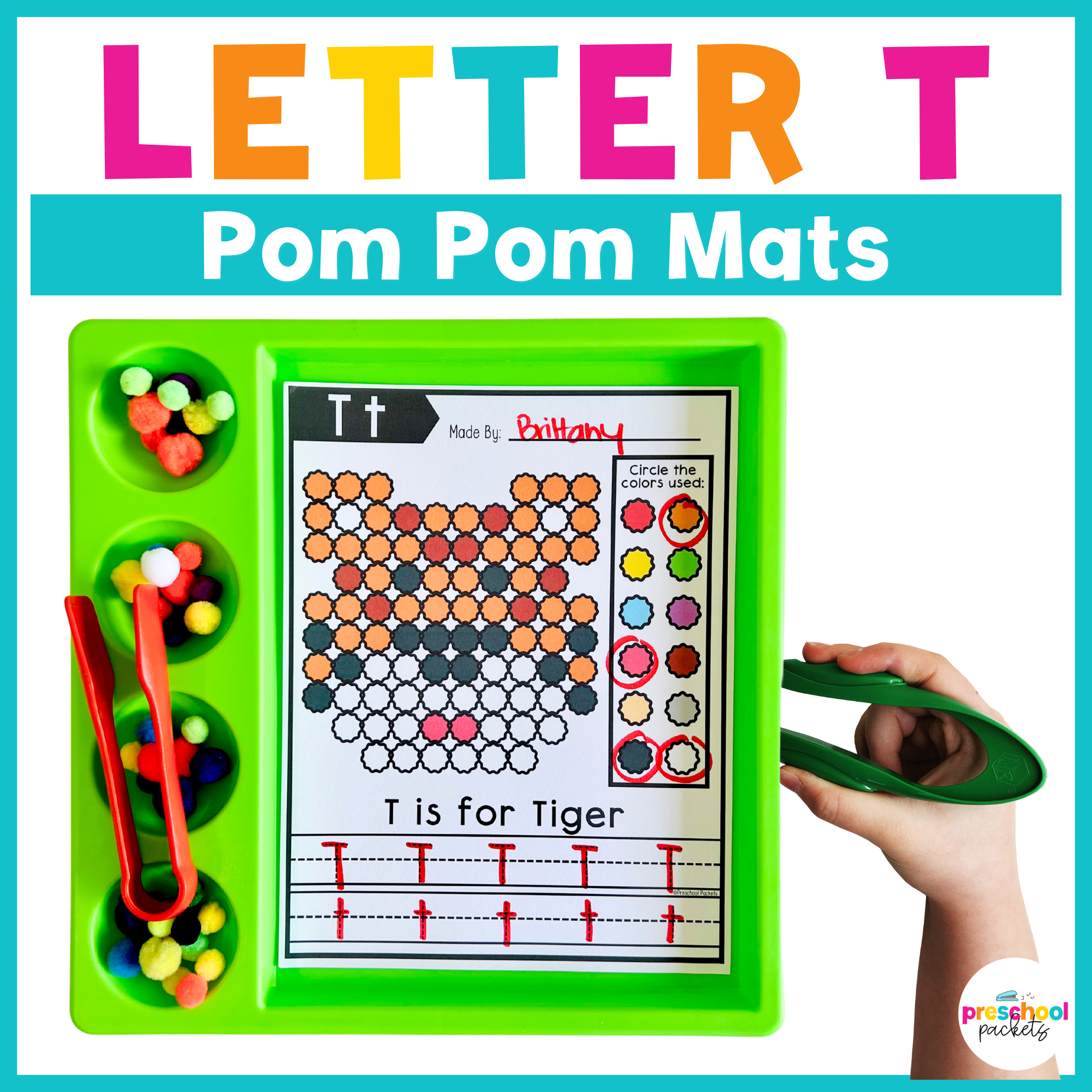 Preschool Pom Pom Fine Motor Mats – Letter T Activity Pack
