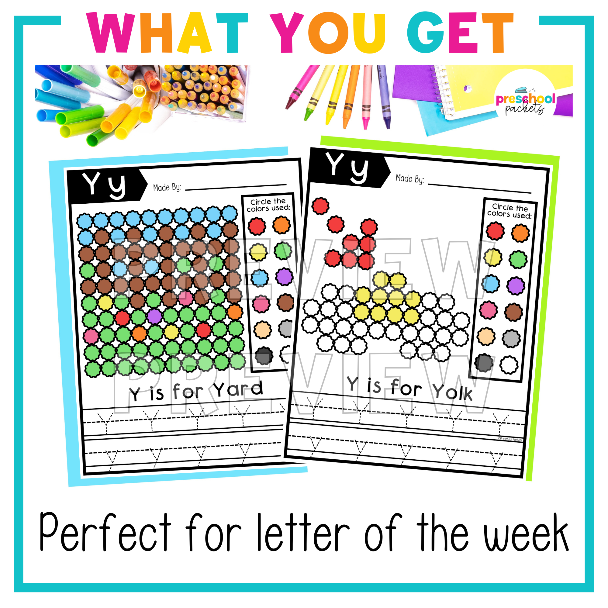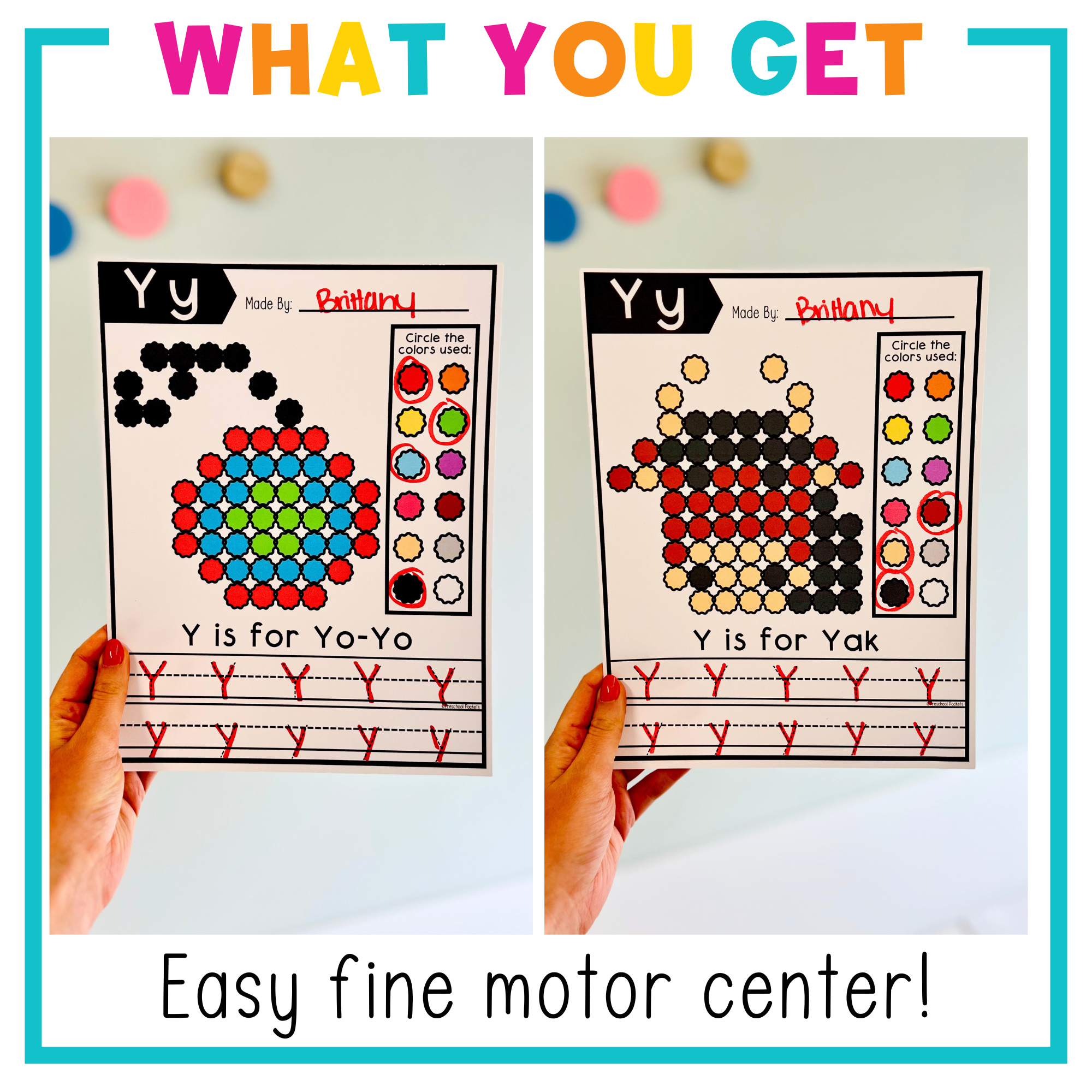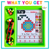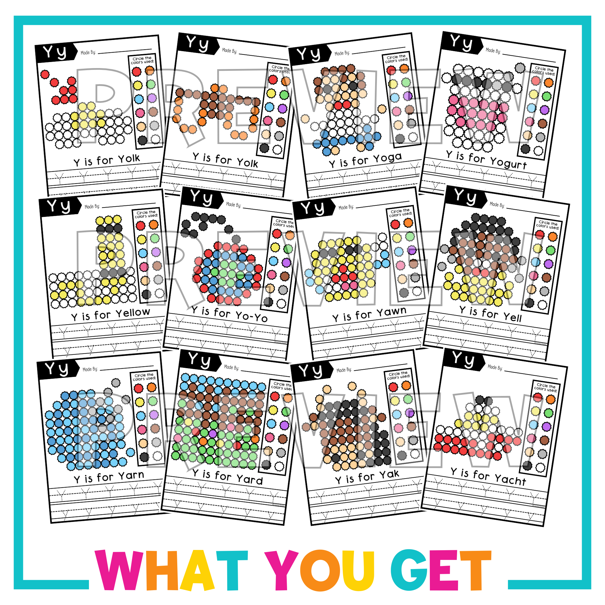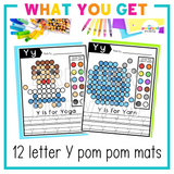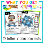 This set includes 12 different Letter Y-themed pom pom mats, perfect for Letter of the Week activities, literacy centers, or morning work.