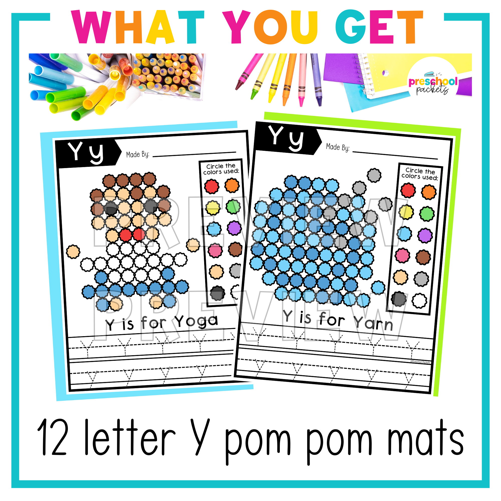 Preschool Pom Pom Fine Motor Mats – Letter Y Activity Pack