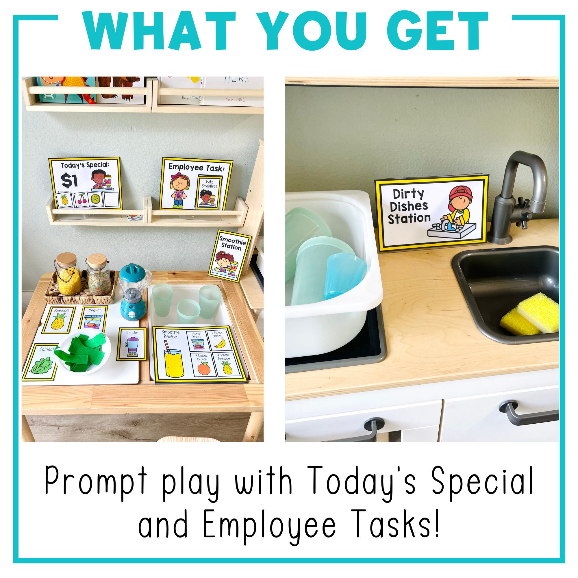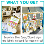 With everything you need included, from smoothie recipes to labels, signs, and banners, setting up a smoothie shop dramatic play center has never been easier.
